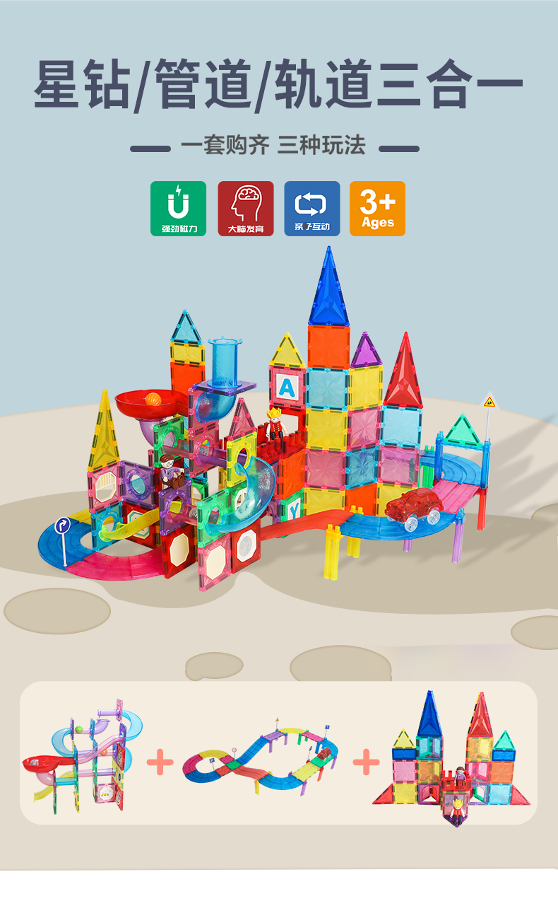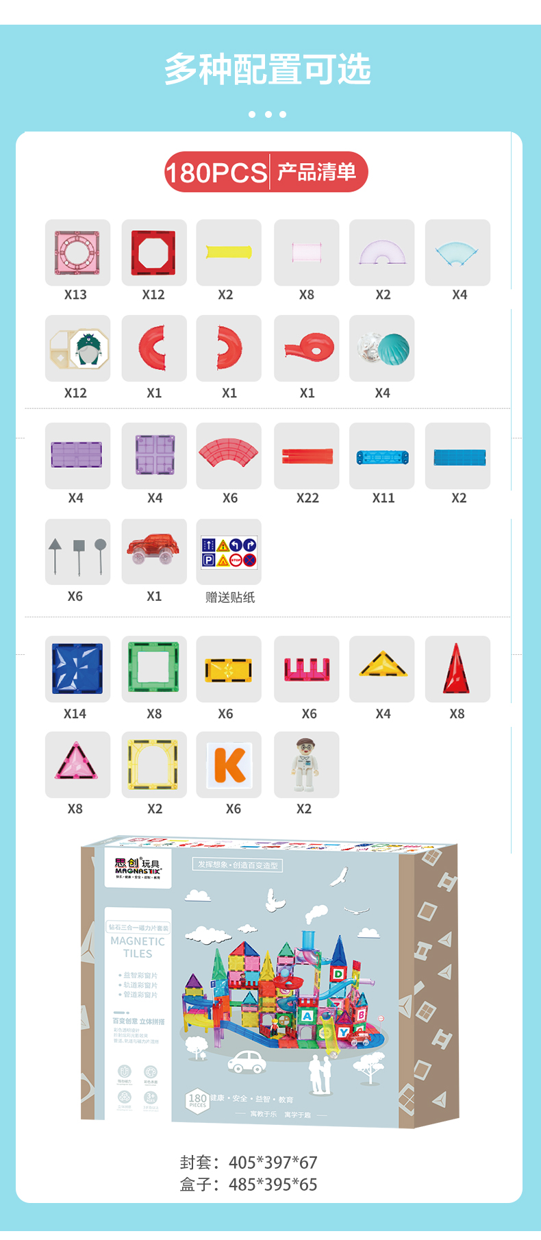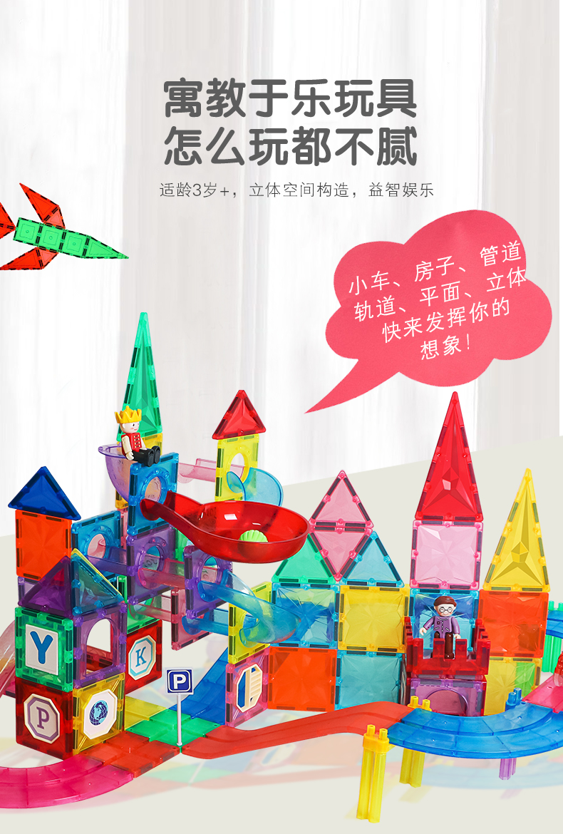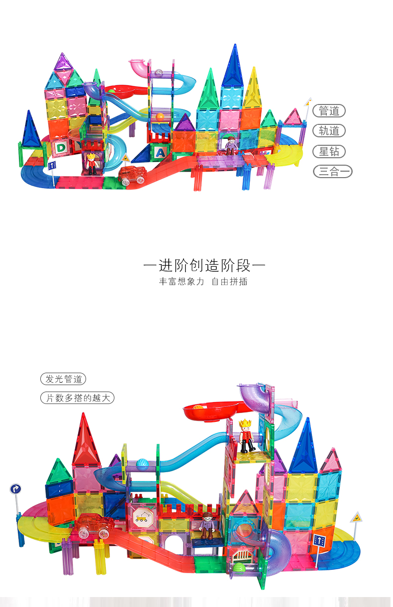 彩窗磁力片三合一 管道磁力片/轨道磁力片 180片礼盒