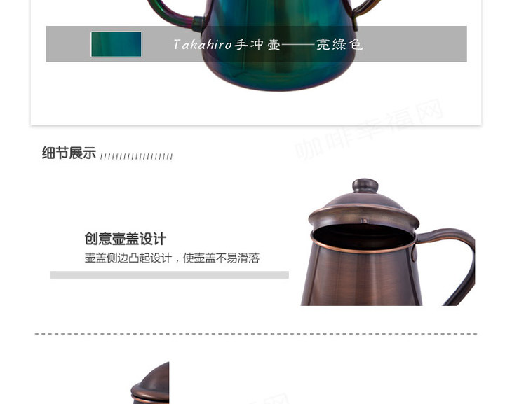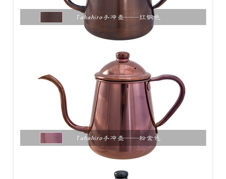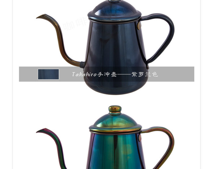 【器具】TAKAHIRO 精品咖啡手冲壶电镀不锈钢四色长嘴细口 日本进口