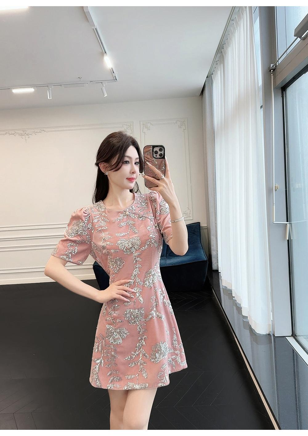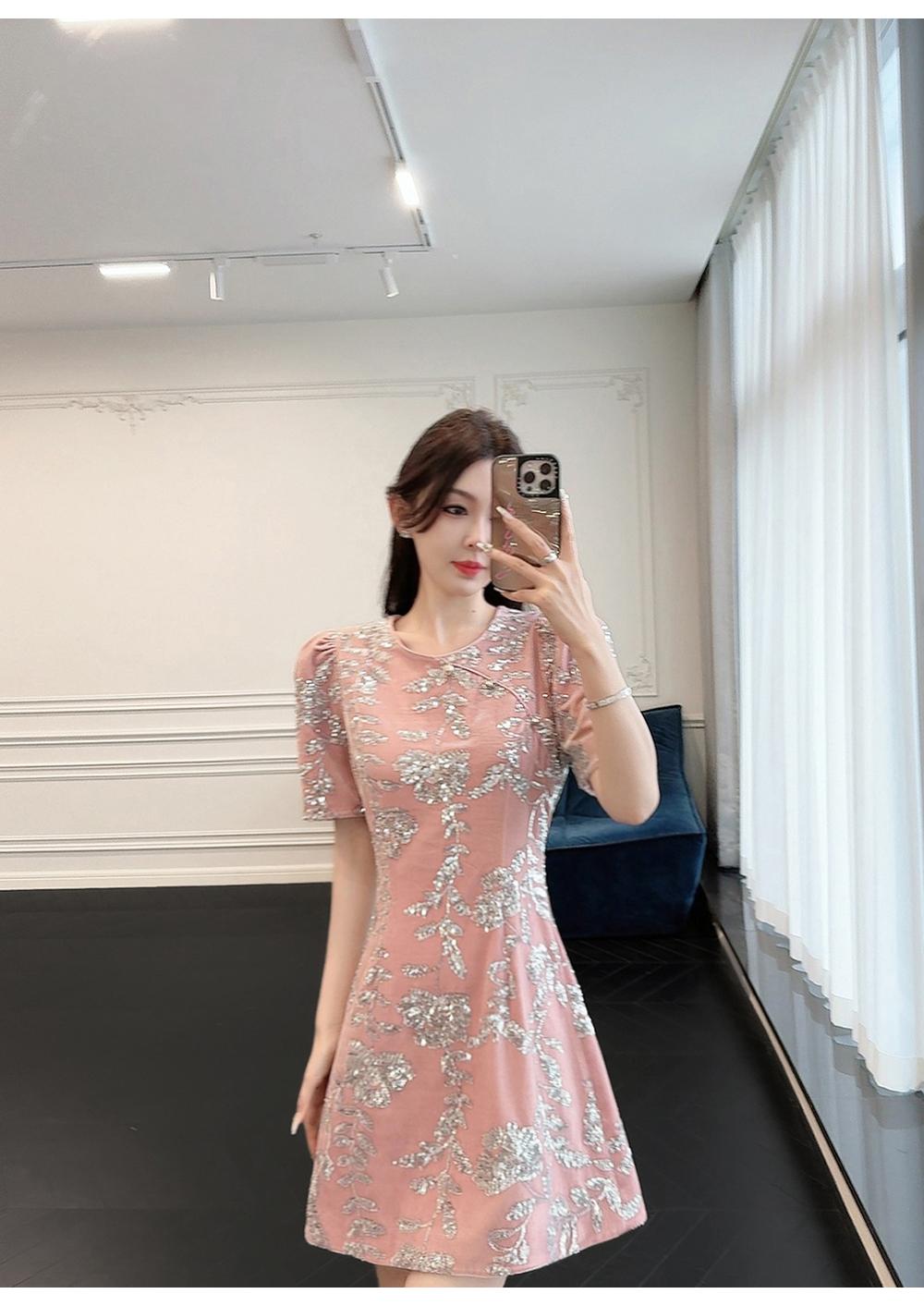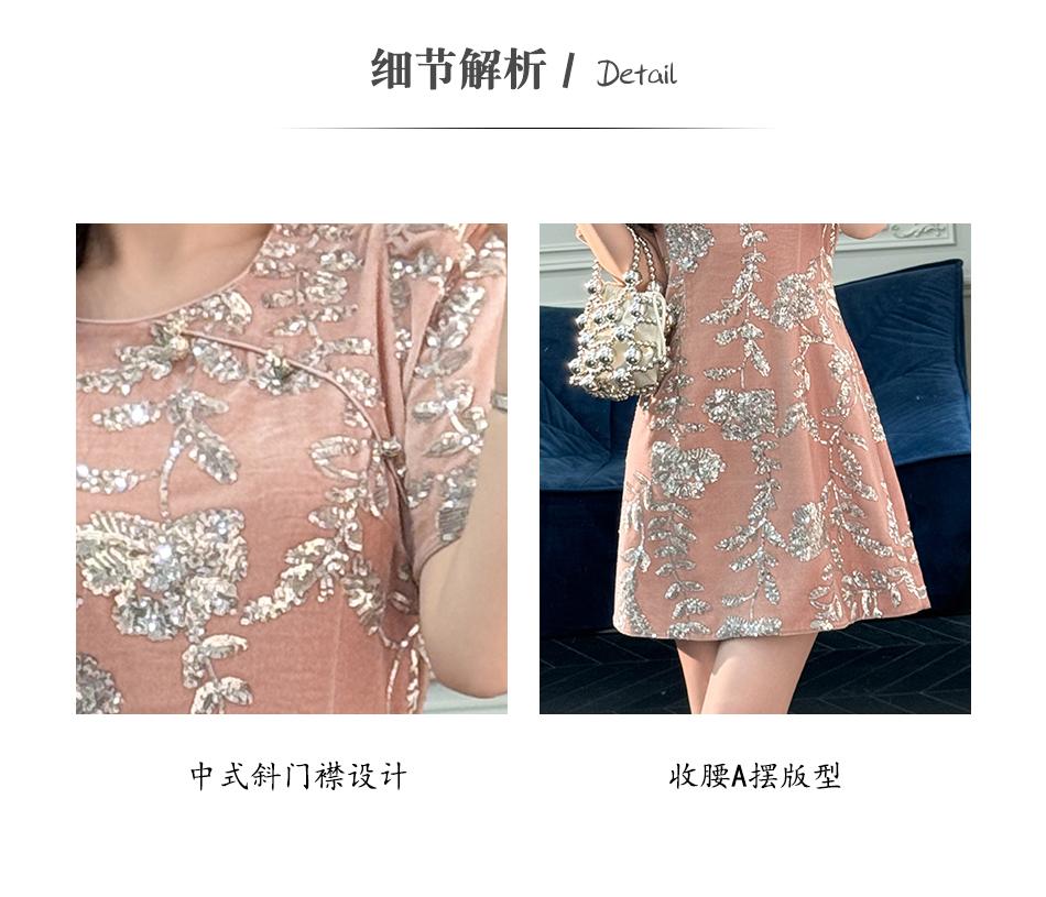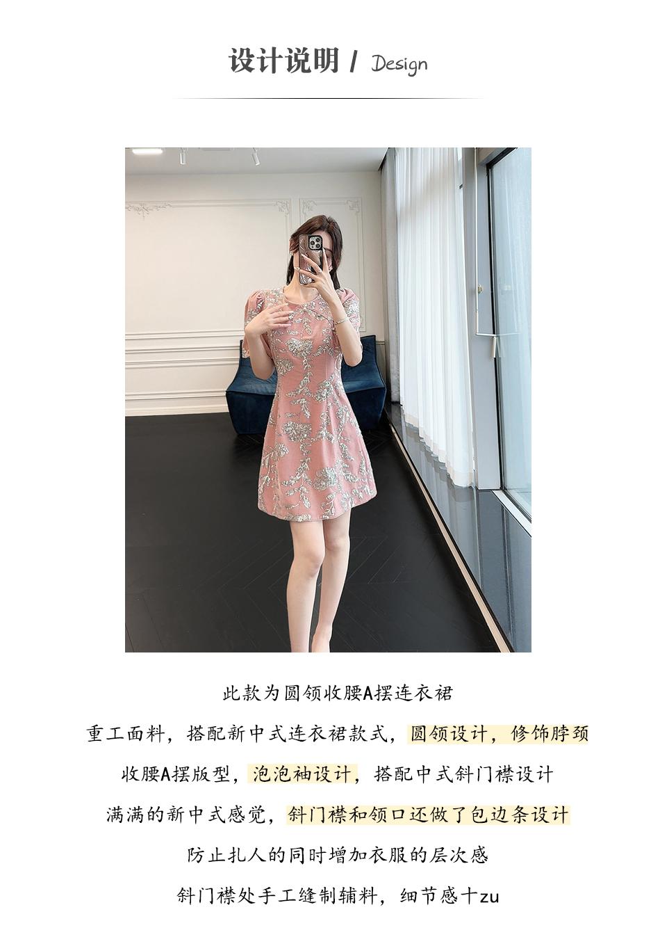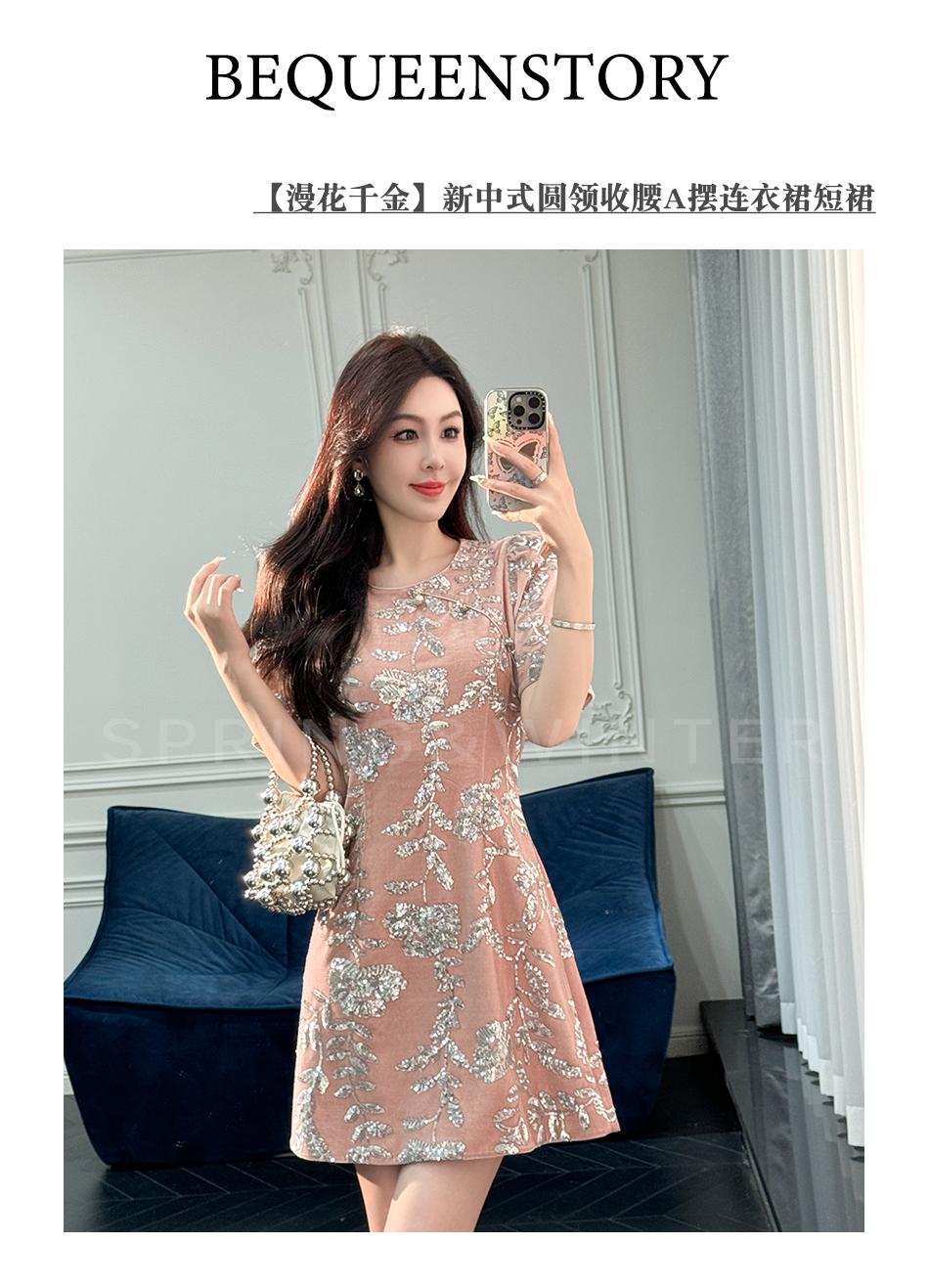 BeQueenStory【漫花千金】重工设计感新中式圆领收腰A摆连衣裙短裙