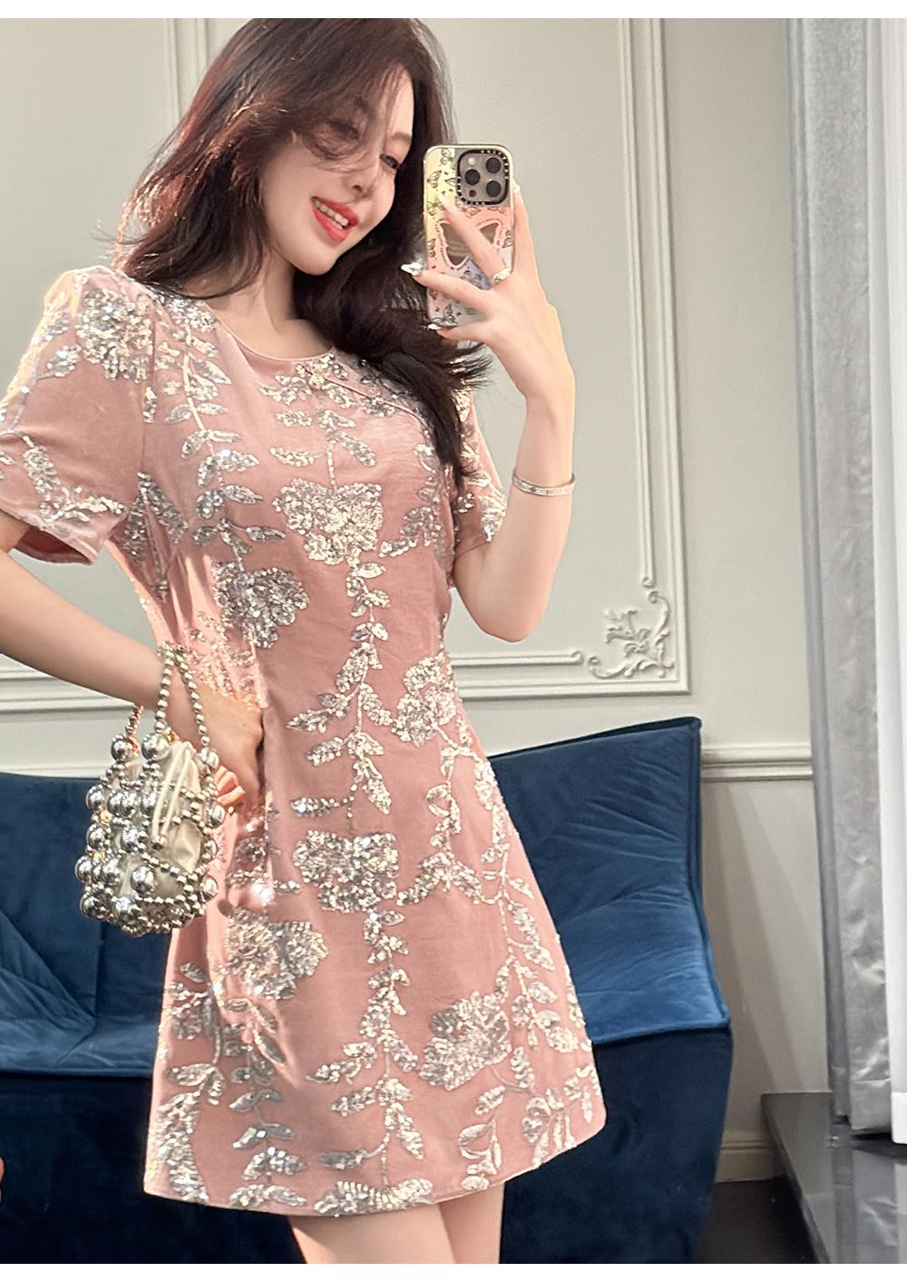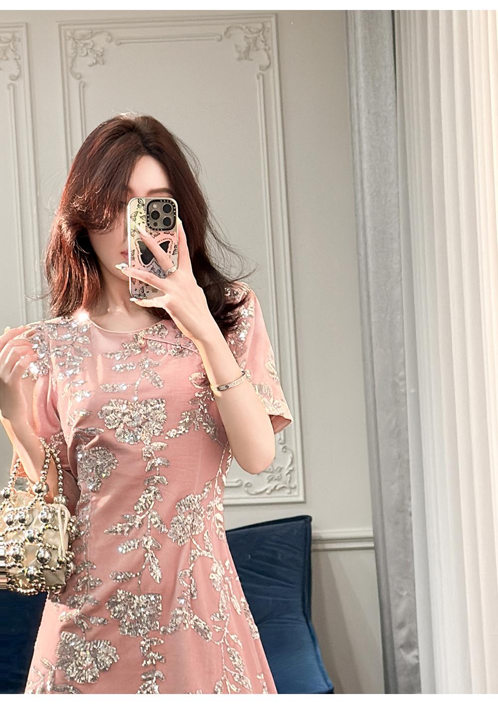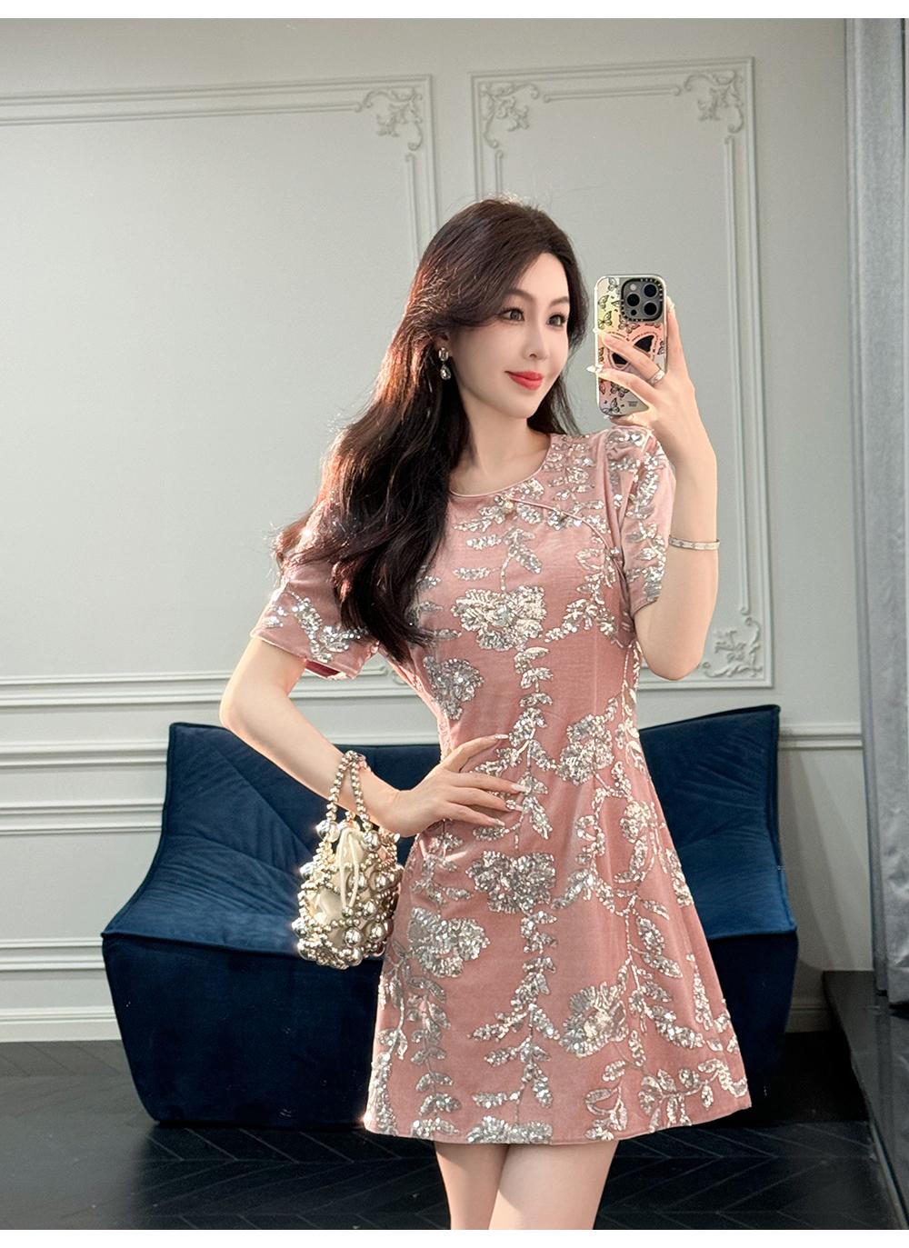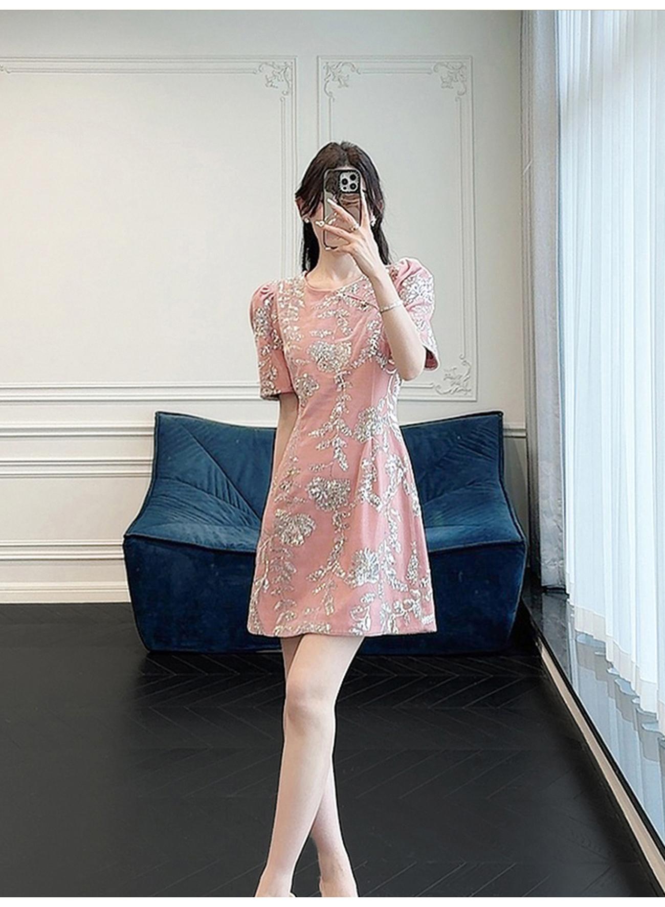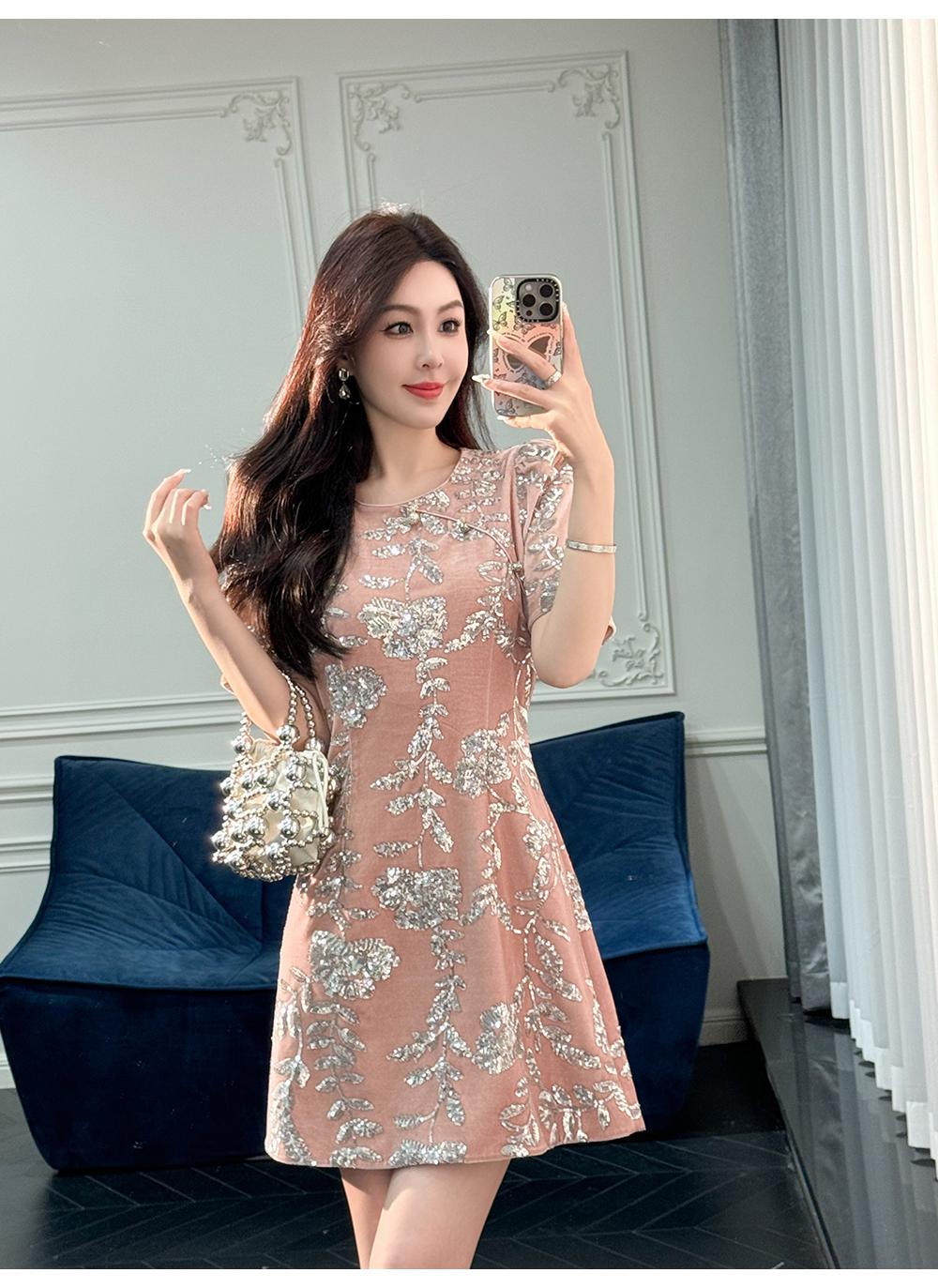 BeQueenStory【漫花千金】重工设计感新中式圆领收腰A摆连衣裙短裙