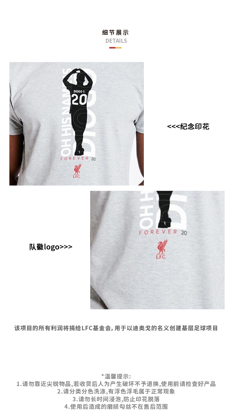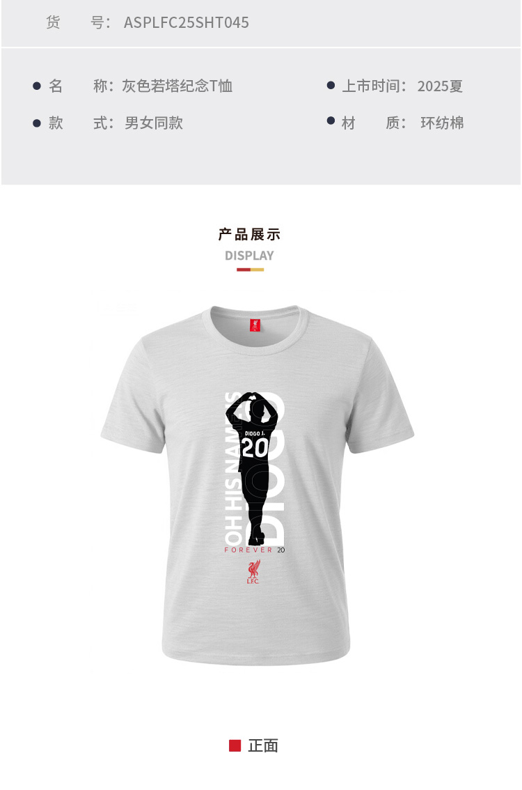 【官网同款】利物浦俱乐部 | 若塔灰色纪念T恤慈善款圆领短袖
