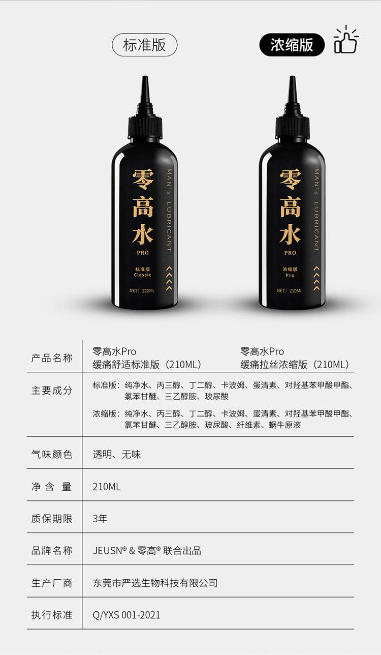 久兴零高水PRO玻尿酸后庭润滑油润滑剂 210ml