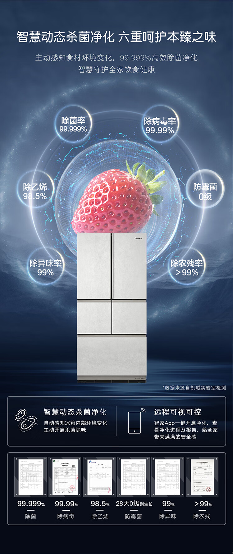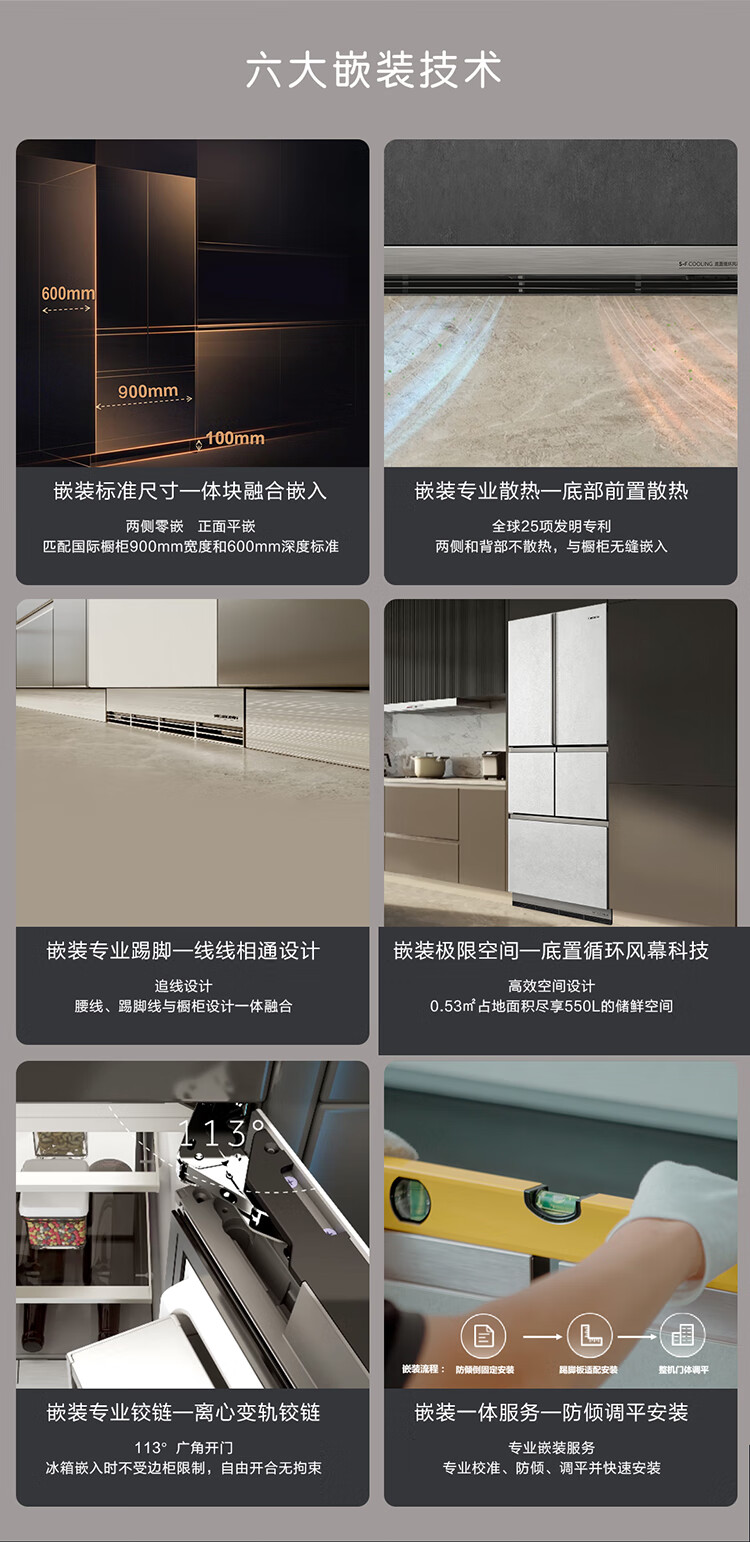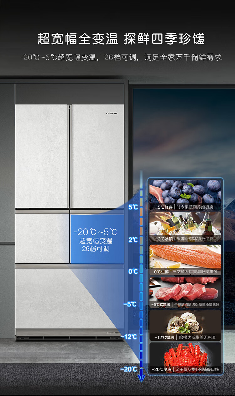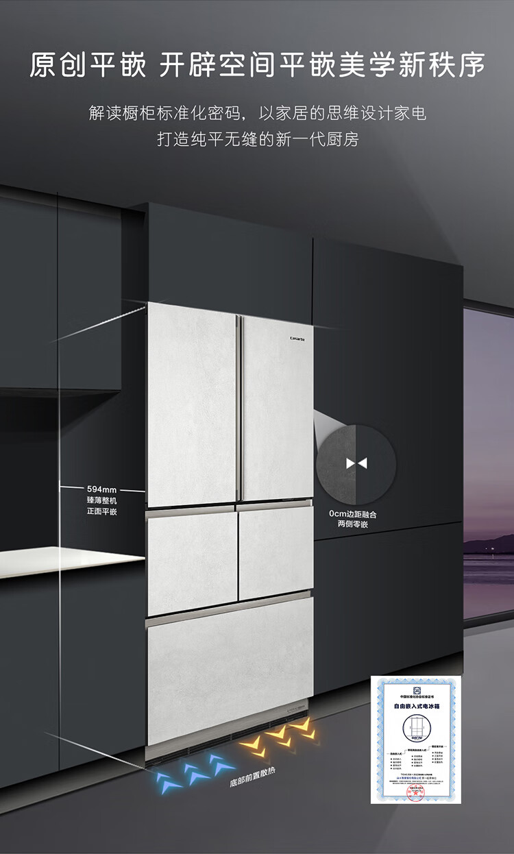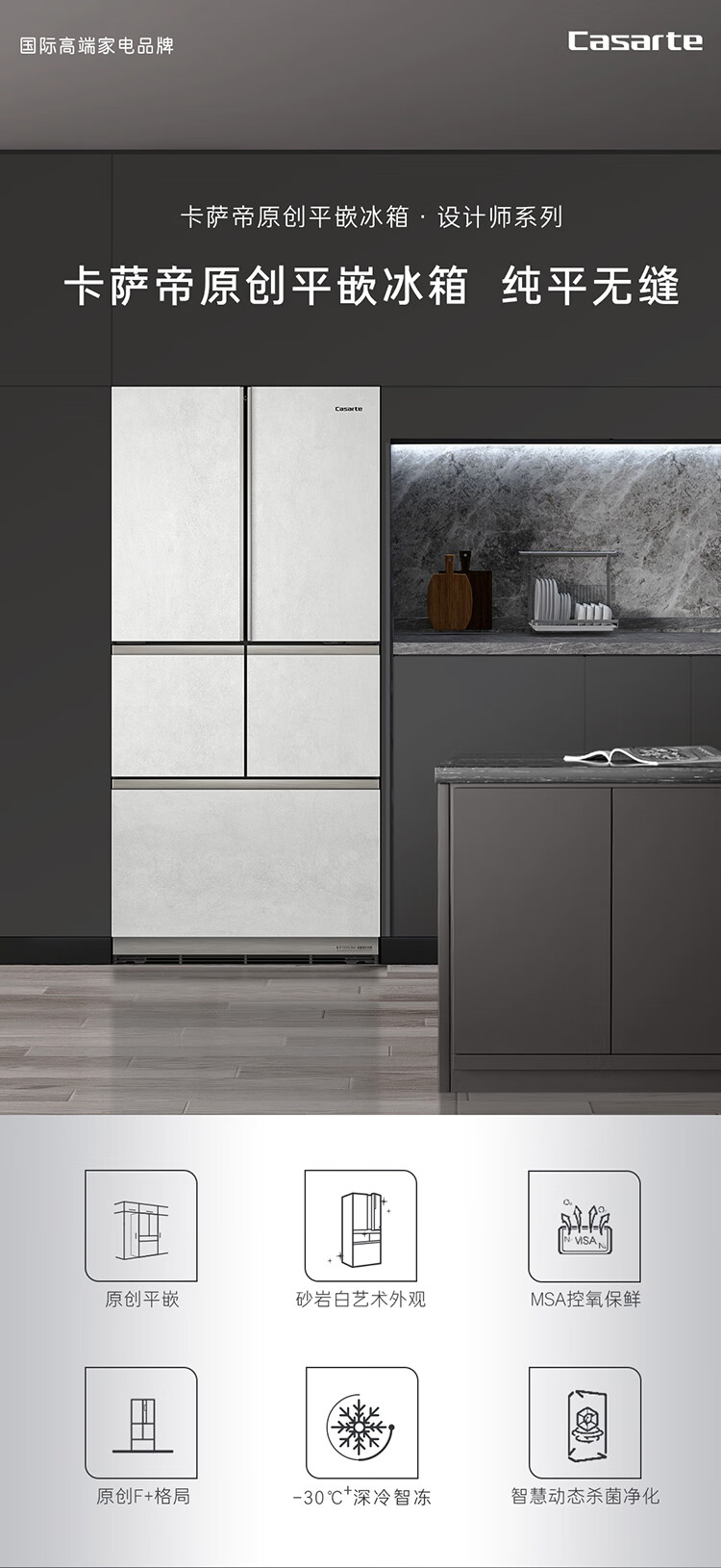 卡萨帝原创平嵌F+冰箱·设计师系列纯平无缝550升冰箱 自动制冰 -30°深冷制冻 智慧动态杀菌 MASPro控氧保鲜 超宽幅变温区 专业嵌入踢脚线BCD-550WLCFPA4W5U1