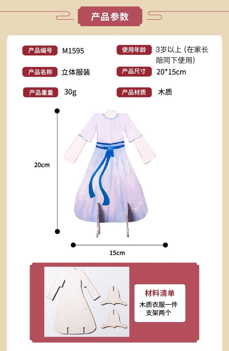 木质立体手工服装 美可diy材料包自制木质涂色中国风儿童益智彩绘服饰