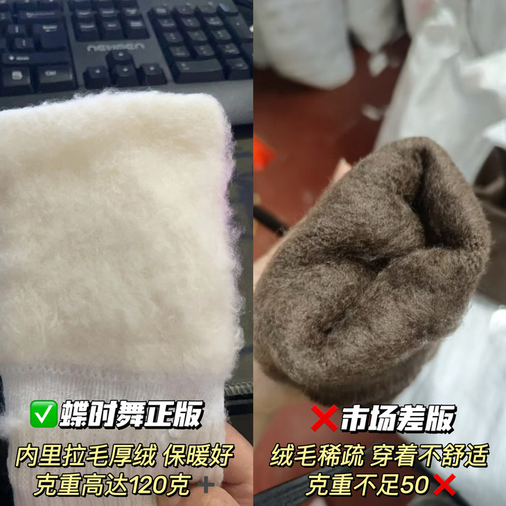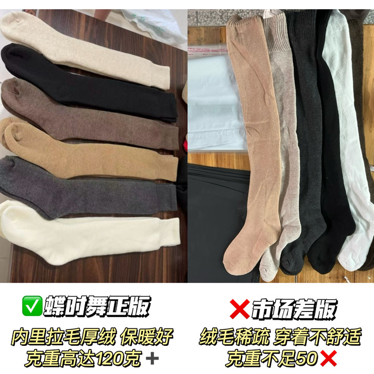 认准品质120度超高克重 老寒腿有救啦,来给怕冷星人推荐过膝袜 谁能想到我牛仔裤里 还有加绒加厚的过膝袜 这个袜子真的很保暖 而且不会掉 还能保护膝盖不受凉 请人手几双备起来好吗!