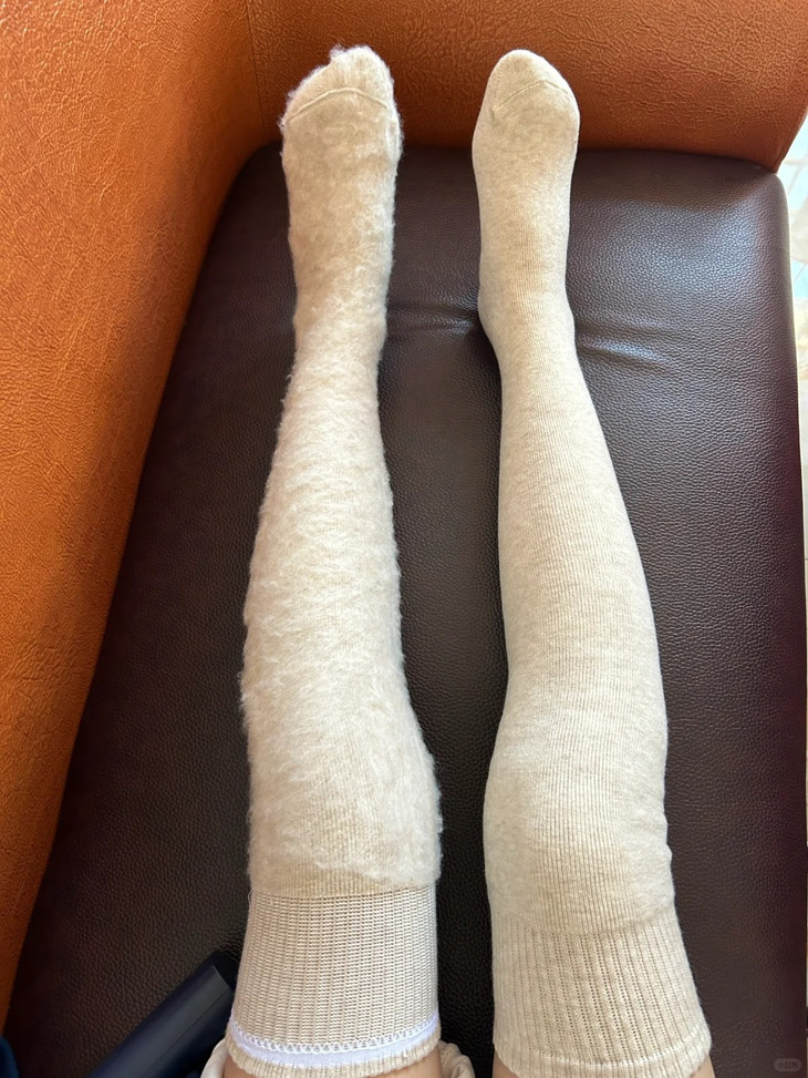 加厚绒毛设计,弹力超大✔︎ 护膝×显瘦×保暖三合一‼️ 轻松拿捏纯欲美拉德风,秋冬百搭惨了 过膝袜护关节又保暖,必入必入