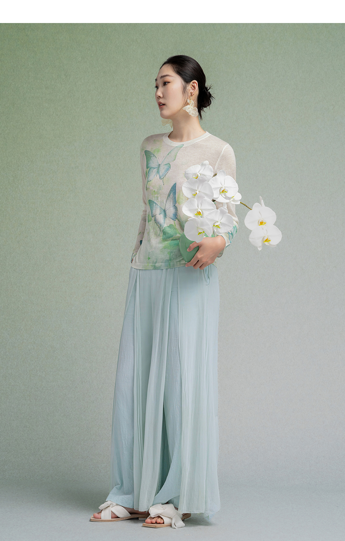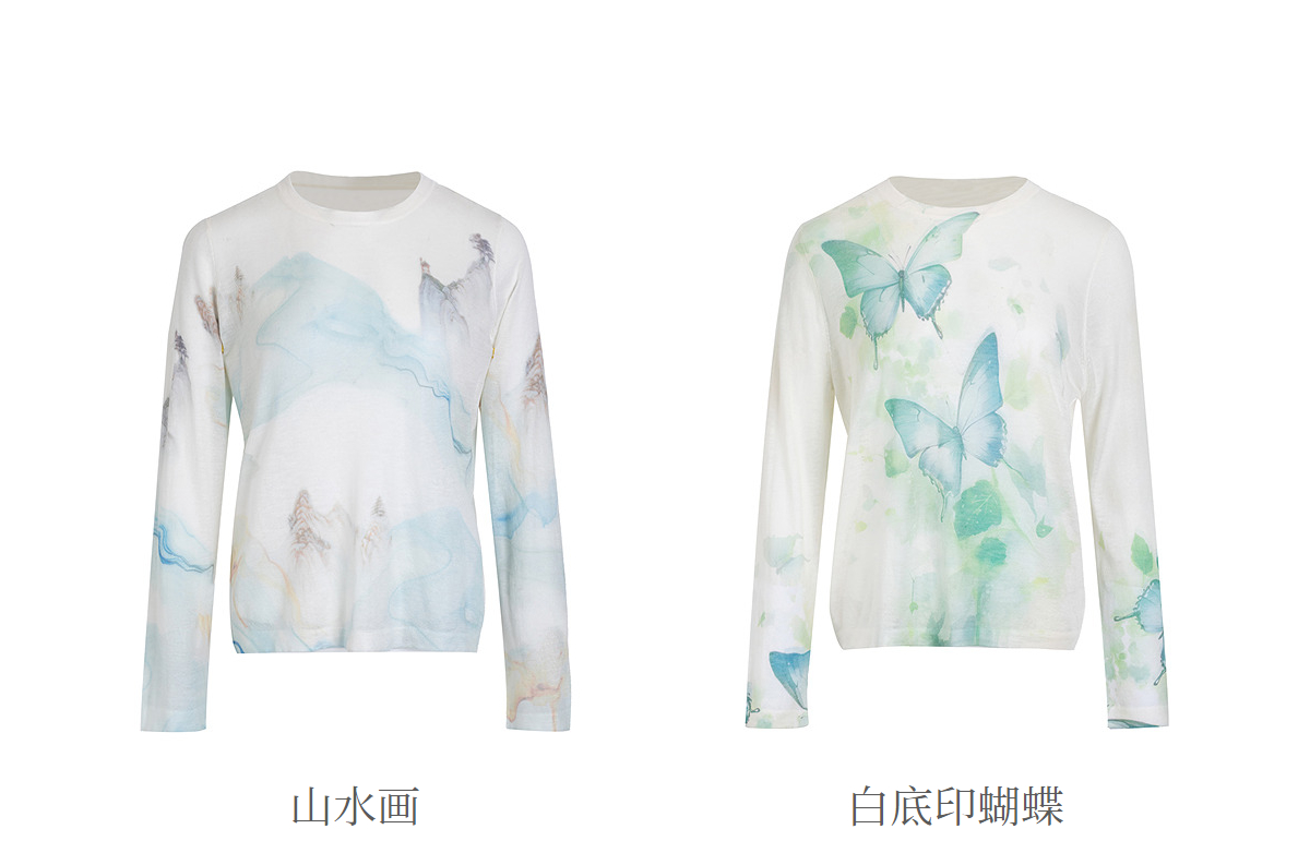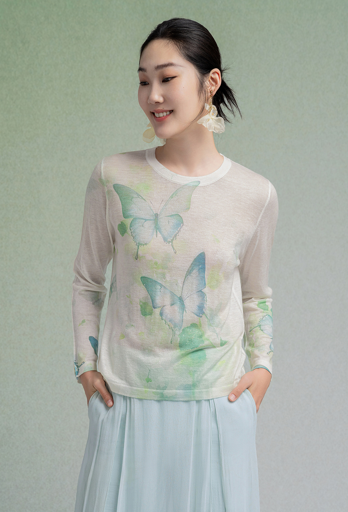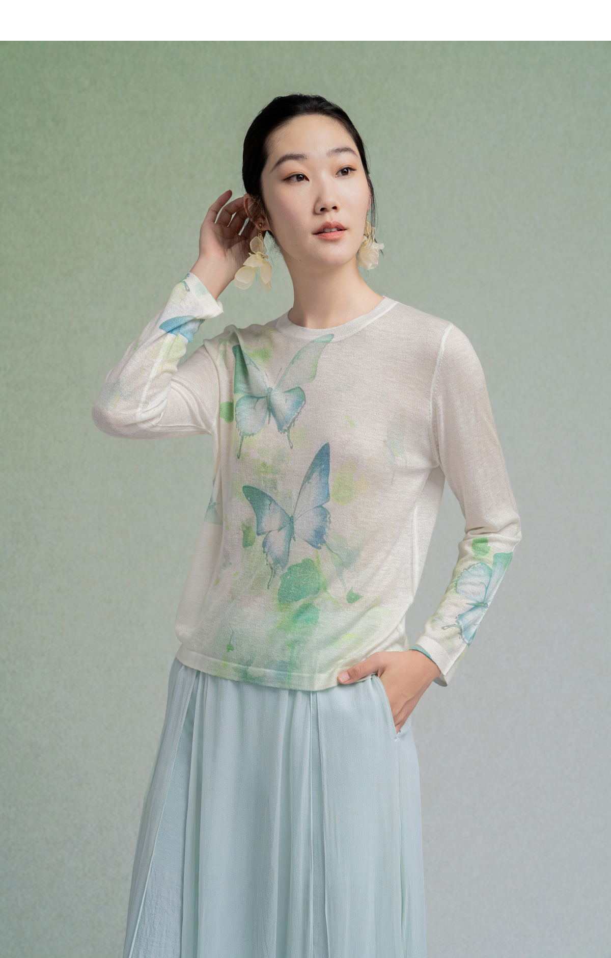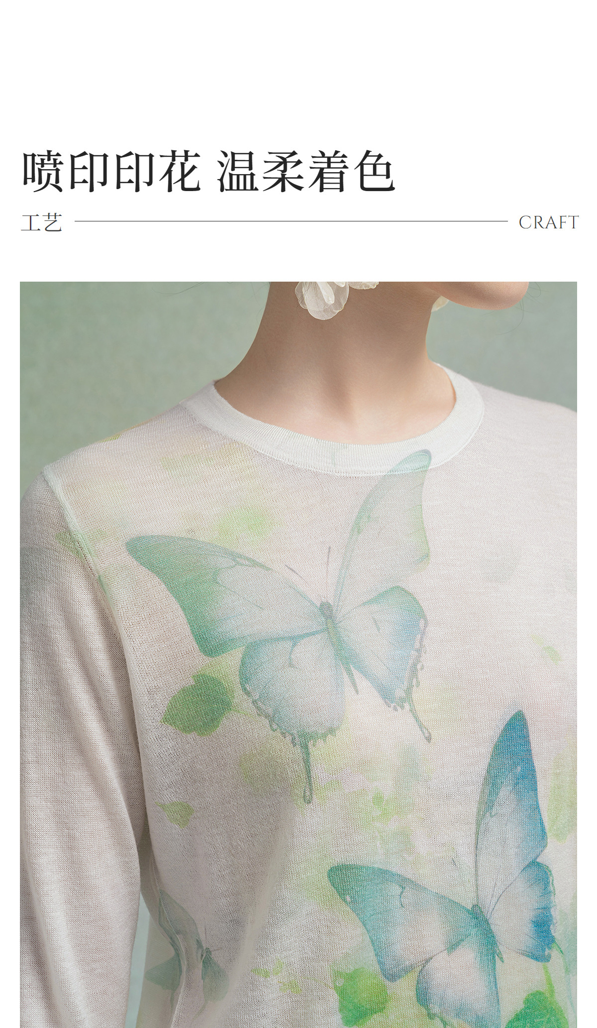 【林栖设计小店】蝴蝶水墨油画羊毛衣印花油画衫套头透气2025秋冬新款T恤短袖打底女G1954108
