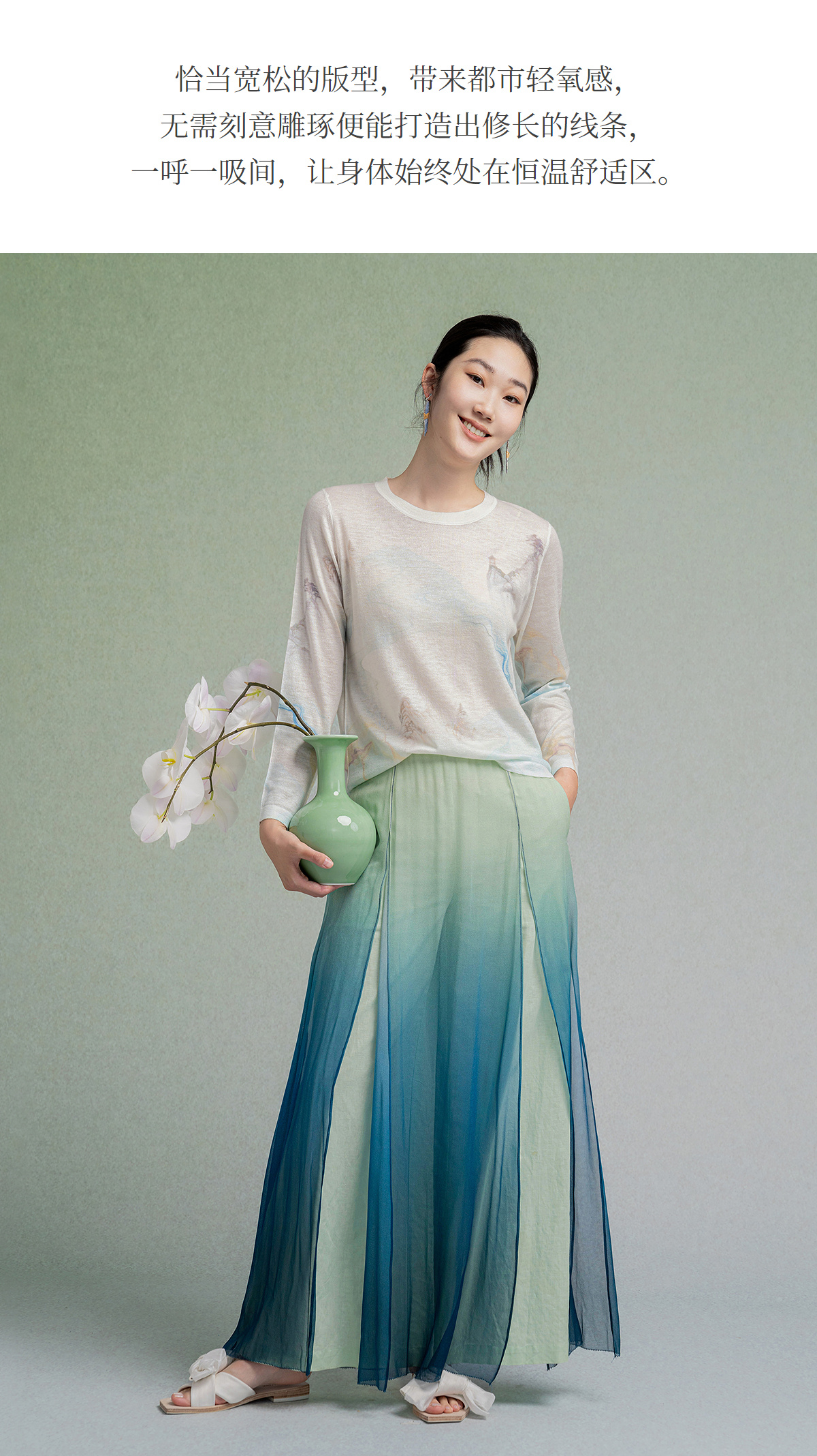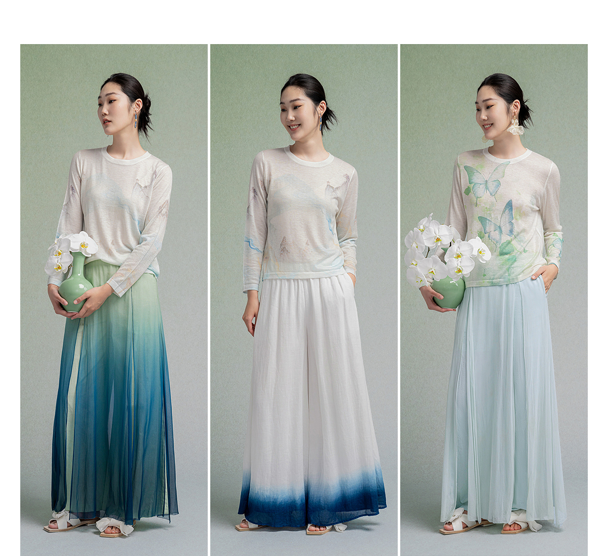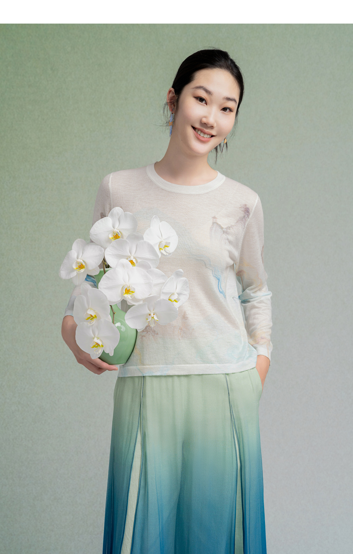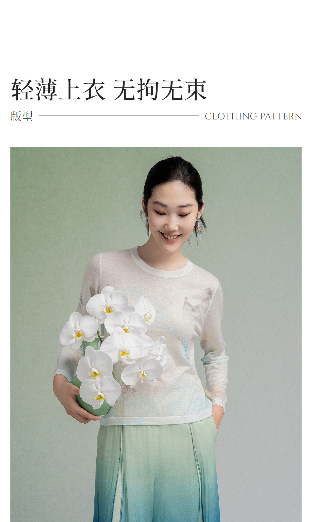 【林栖设计小店】蝴蝶水墨油画羊毛衣印花油画衫套头透气2025秋冬新款T恤短袖打底女G1954108