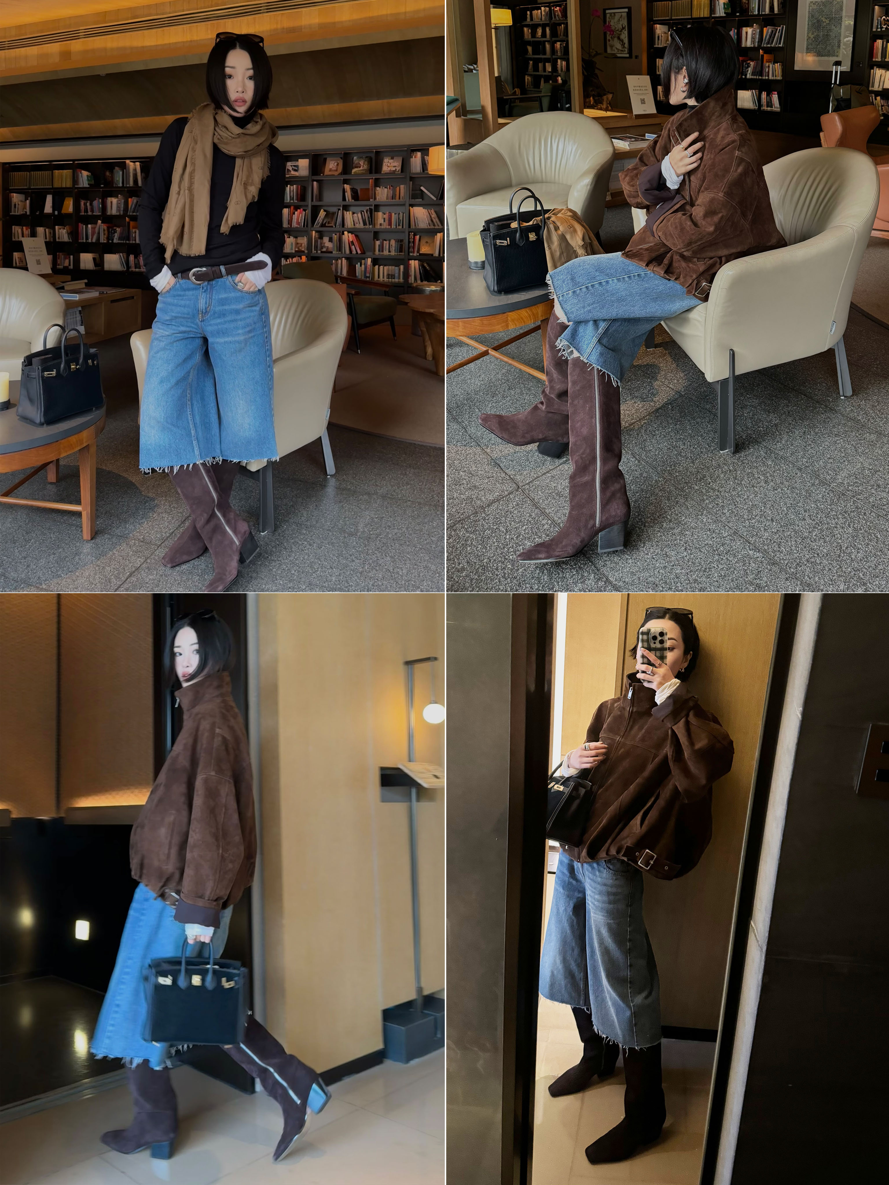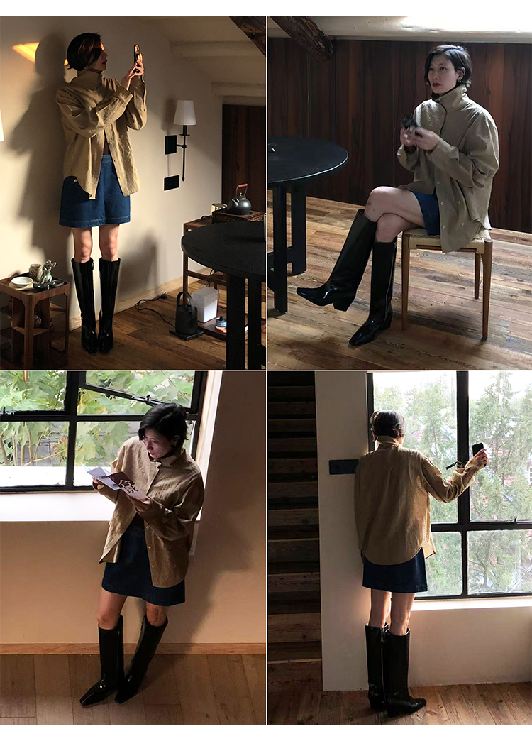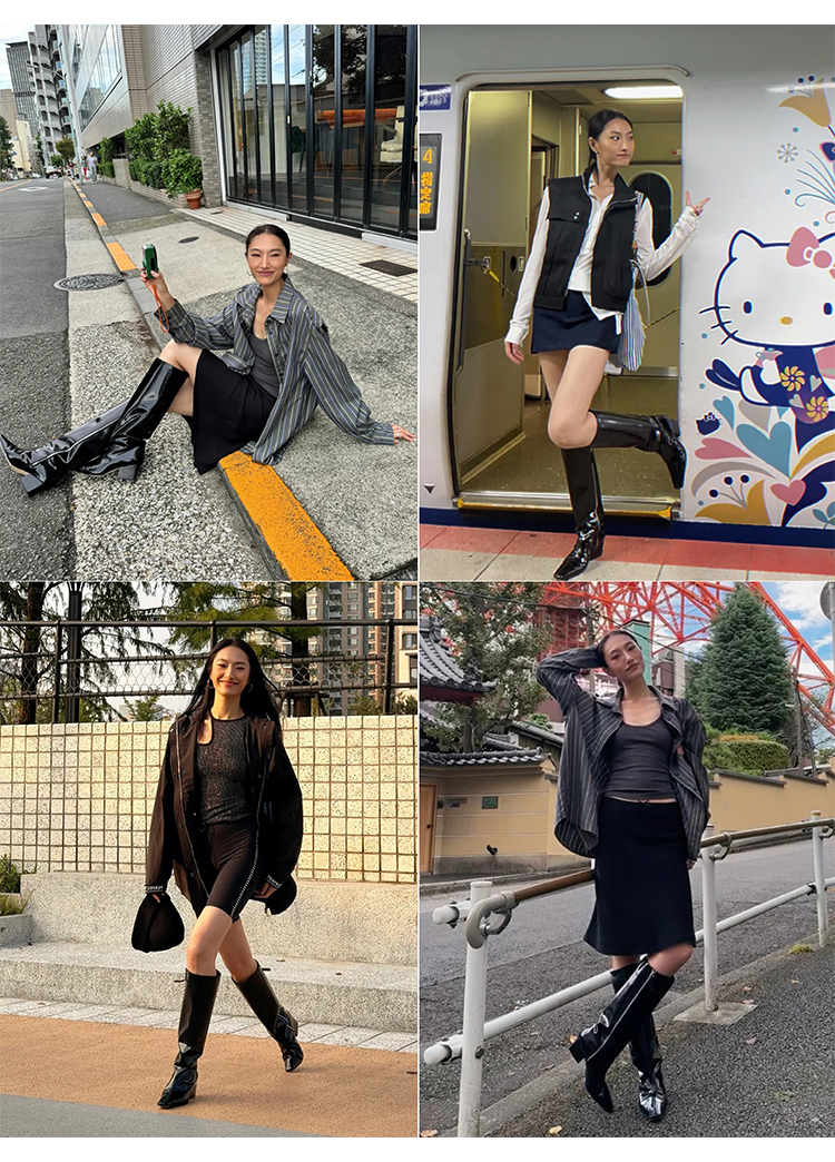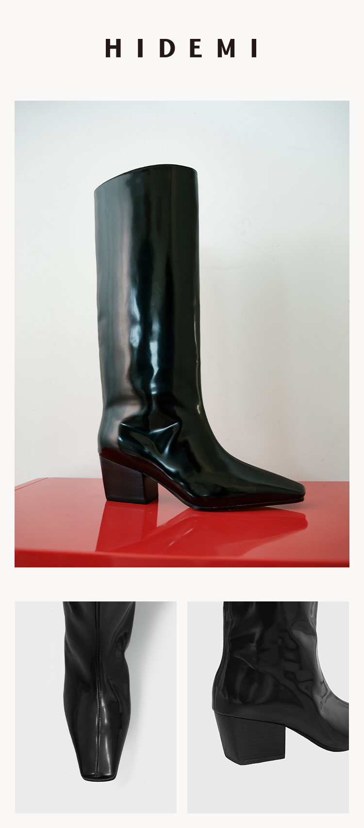 HIDEMI 【董生活同款】经典方尖头系列切尔西厚底方跟长靴马靴
