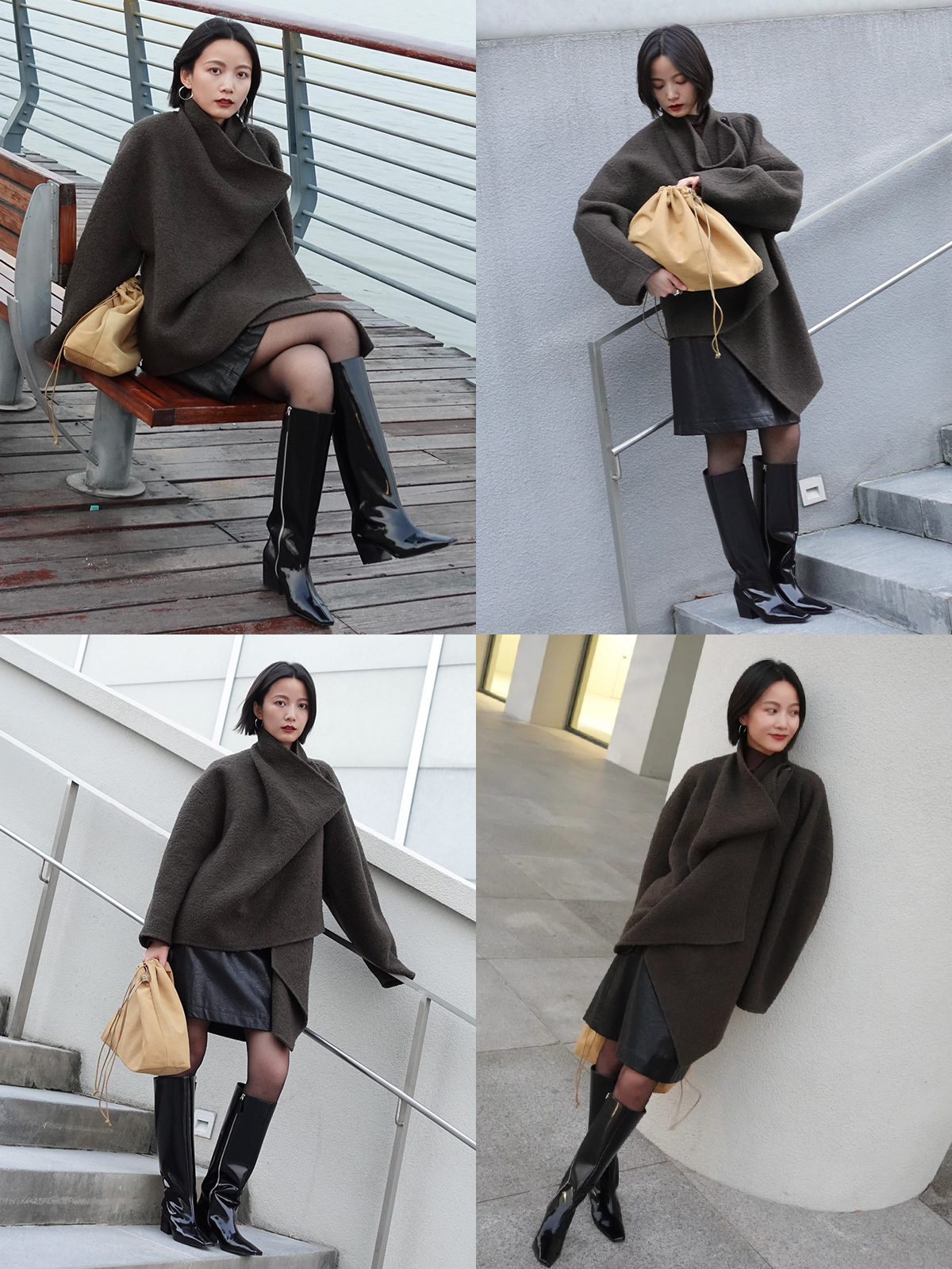 HIDEMI 到店必入A字型设计感简约户外显瘦修身气质半身短裙 黑色/卡其色/薰衣草紫/奶油白/马尔斯绿/摩卡棕