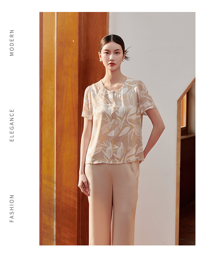 佐尔美夏季新款 新中式国风气质桑蚕丝衬衣女M42CS60