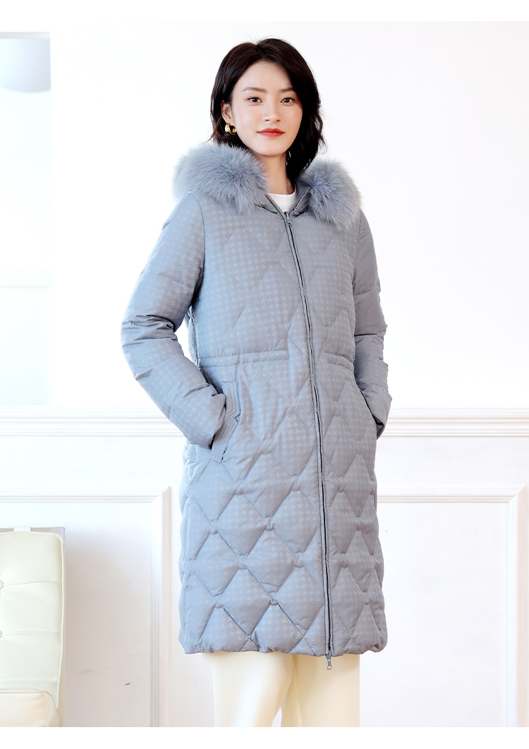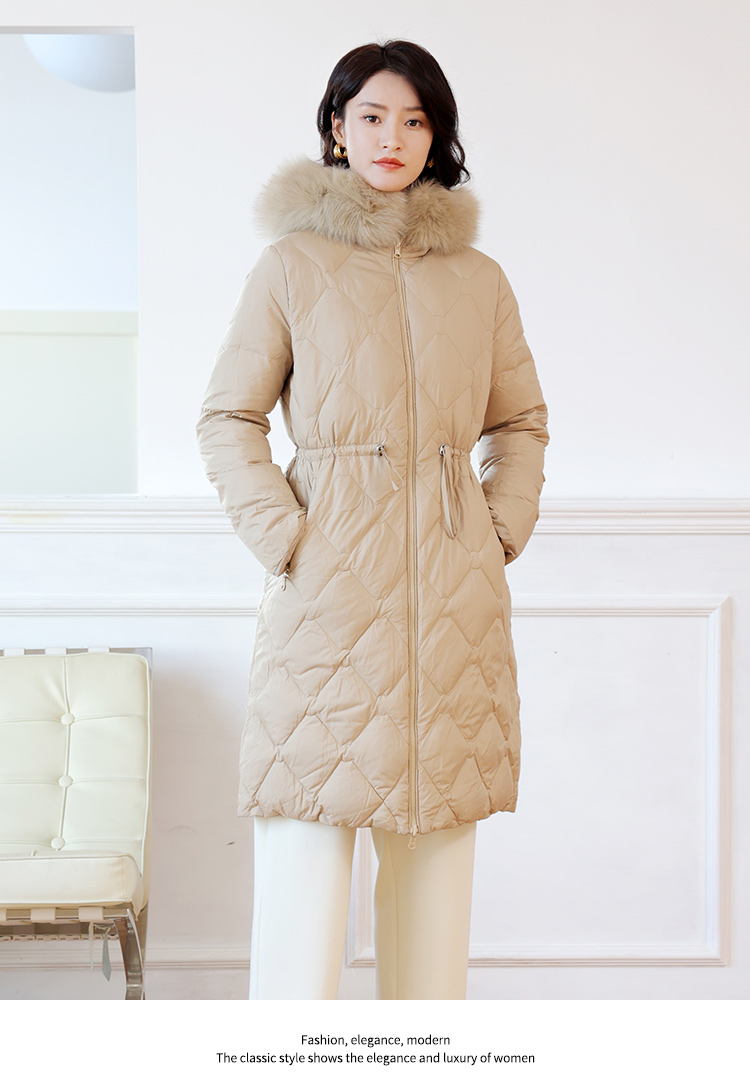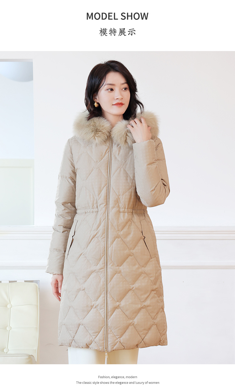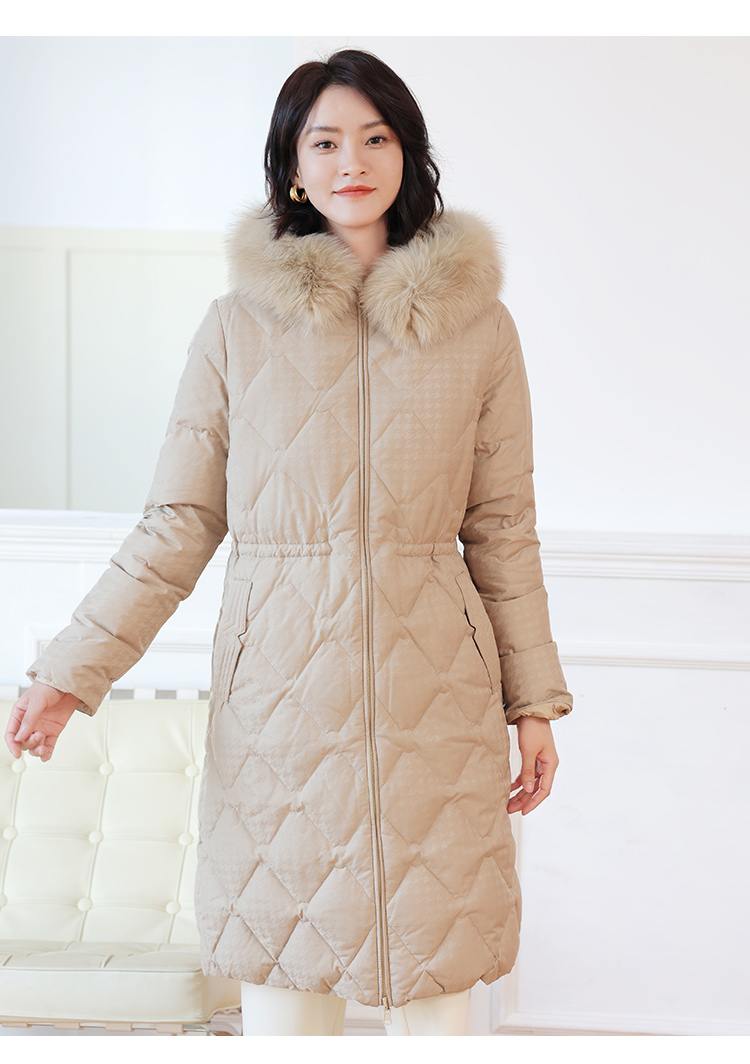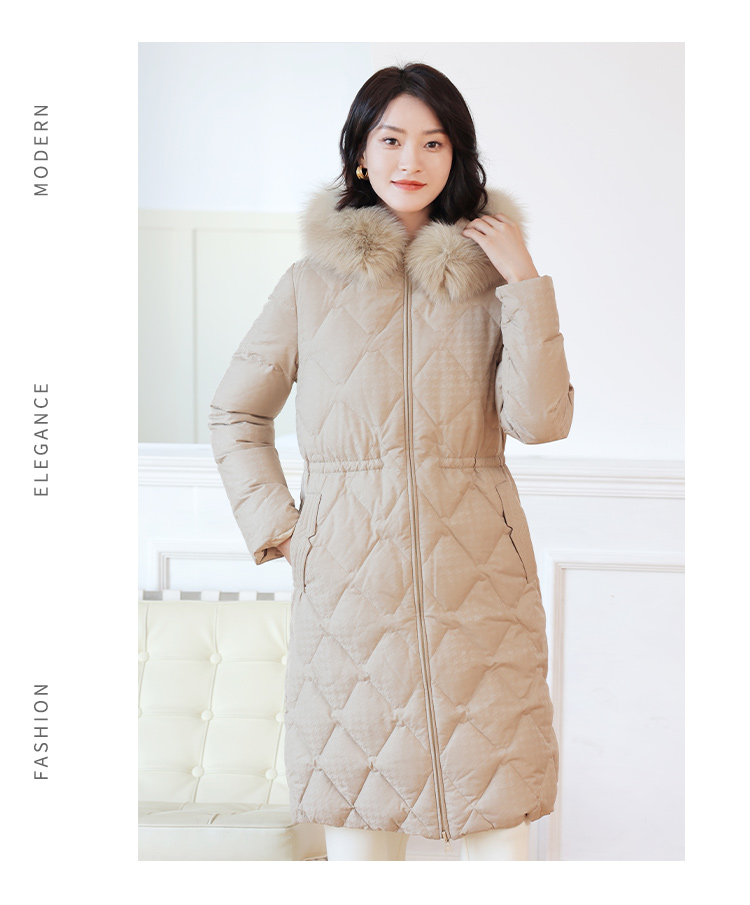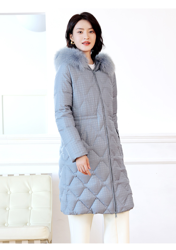佐尔美冬季新款 简约时尚双面穿菱形格可拆狐毛领羽绒服女E14YH16