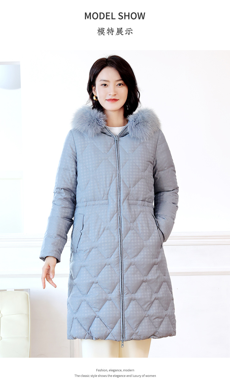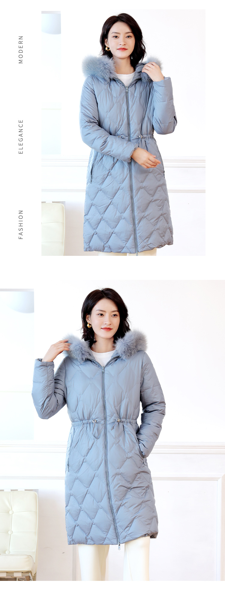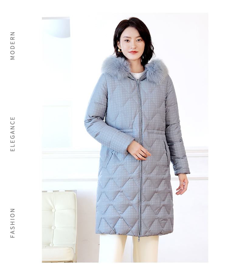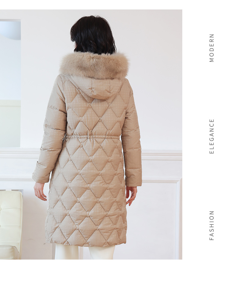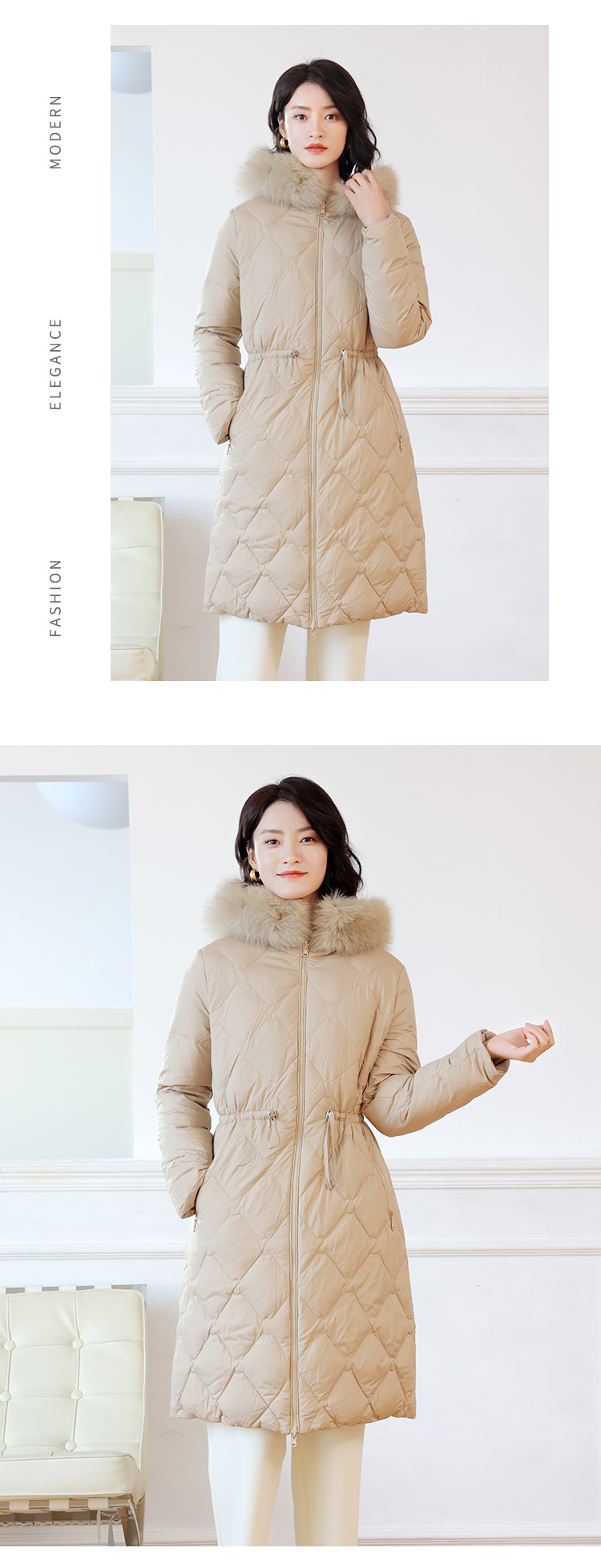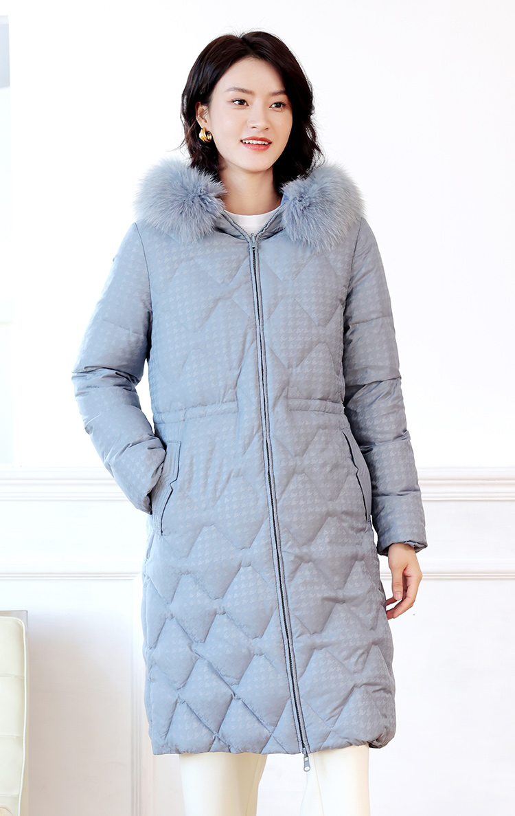 佐尔美冬季新款 简约时尚双面穿菱形格可拆狐毛领羽绒服女E14YH16