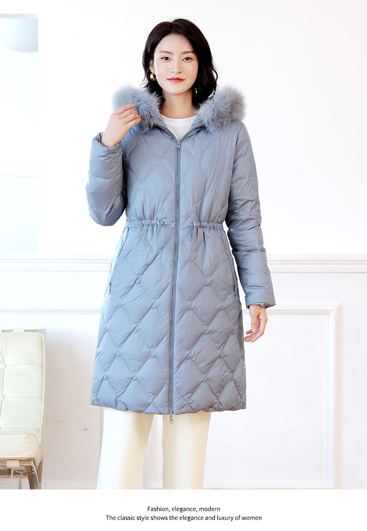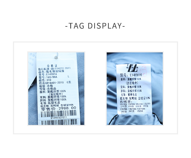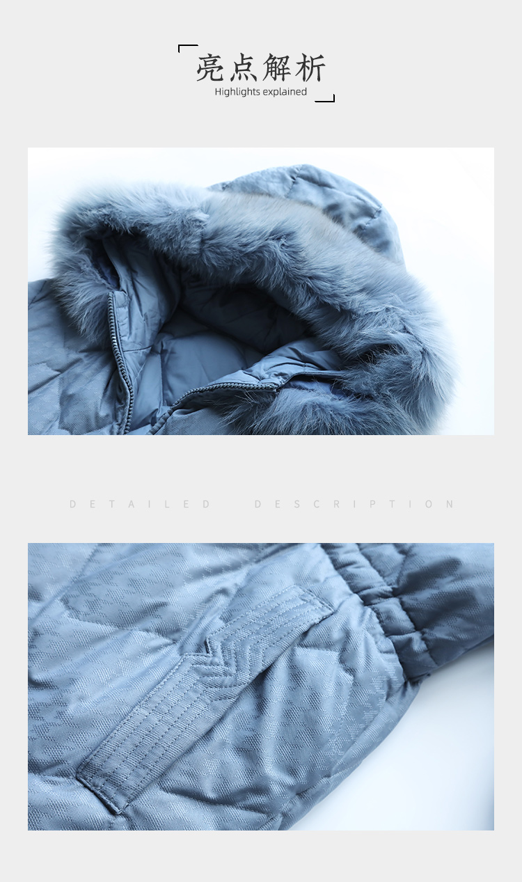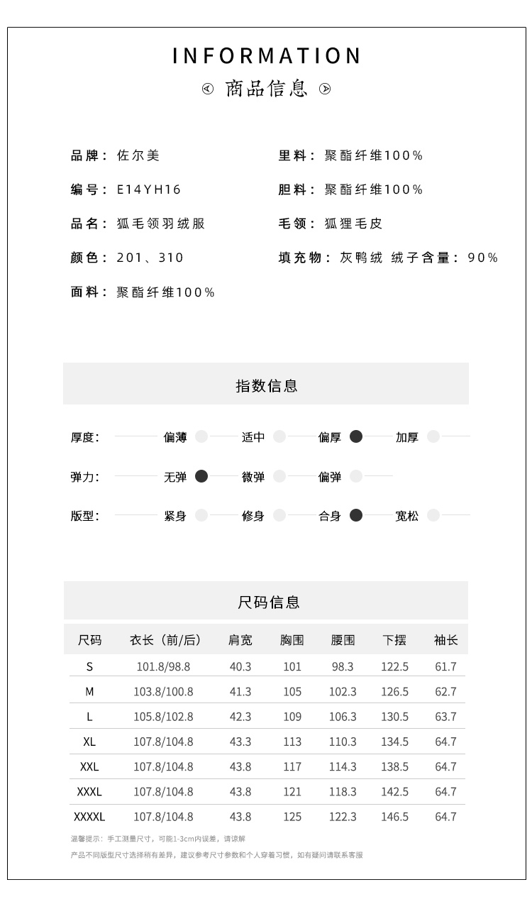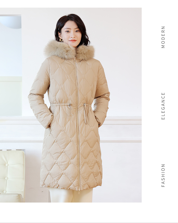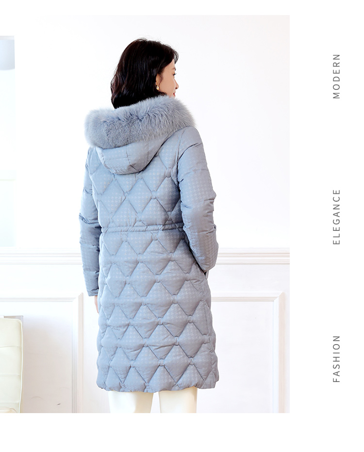 佐尔美冬季新款 简约时尚双面穿菱形格可拆狐毛领羽绒服女E14YH16