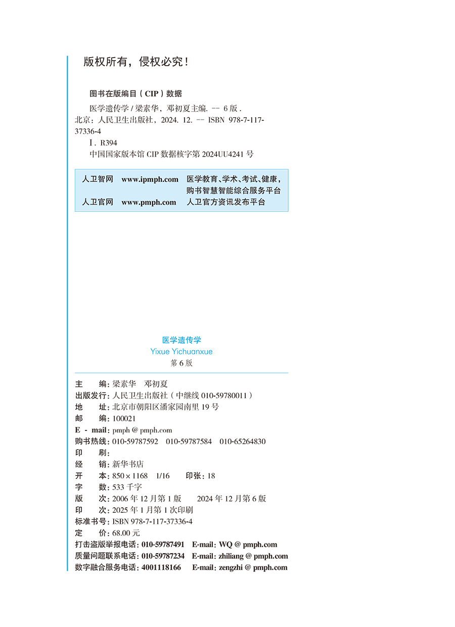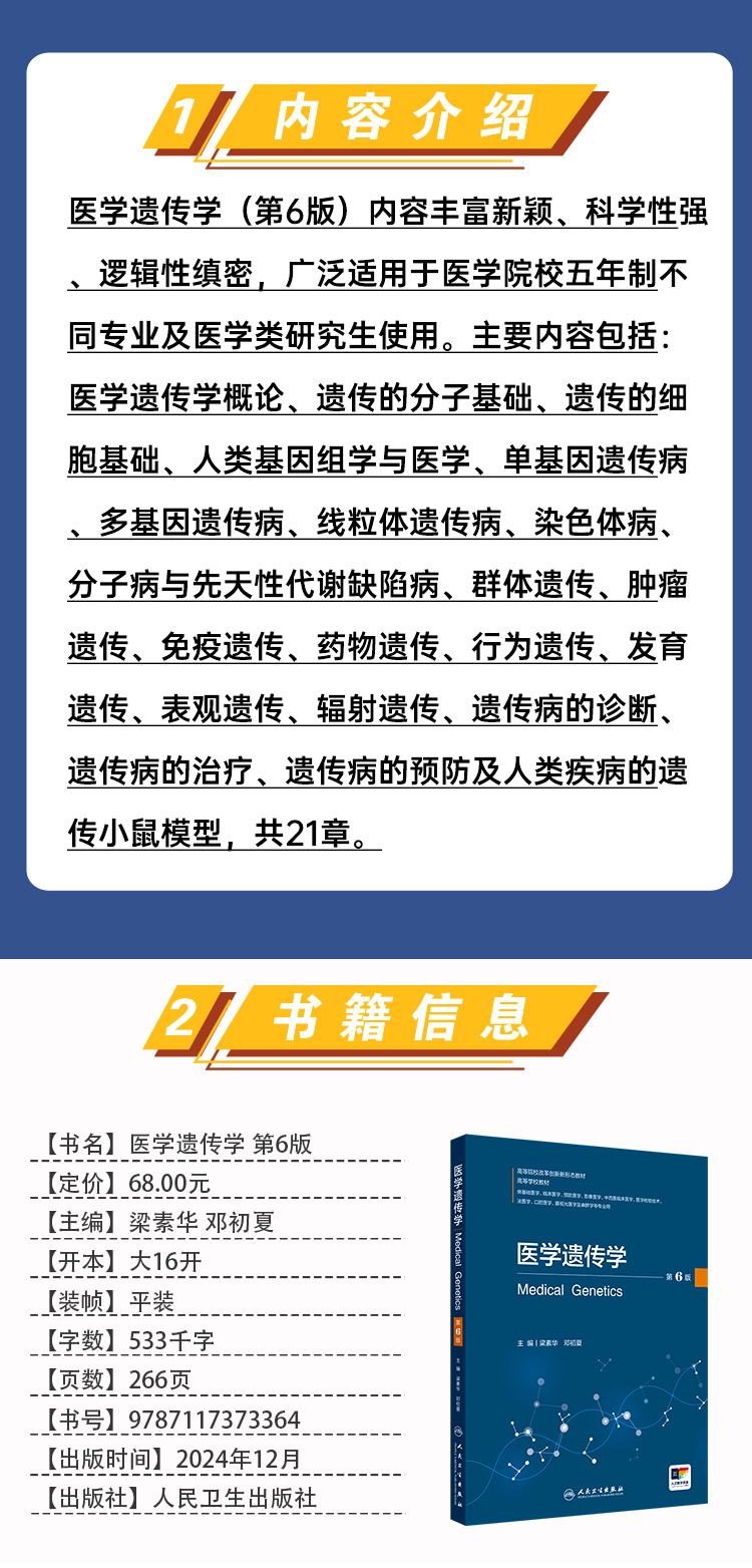 医学遗传学第6版 高等院校改革创新新形态教材 梁素华 邓初夏编 供基础医学临床医学预防医学影像医学等专业用 人民卫生出版社