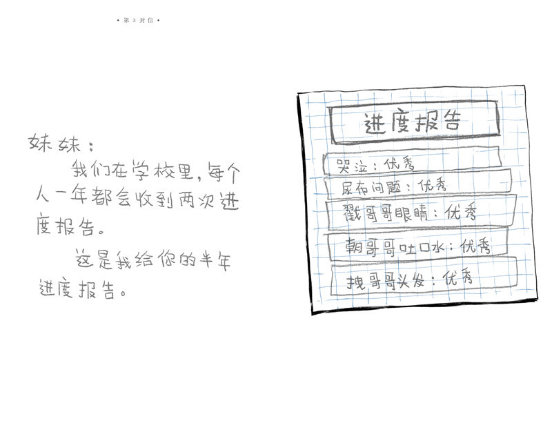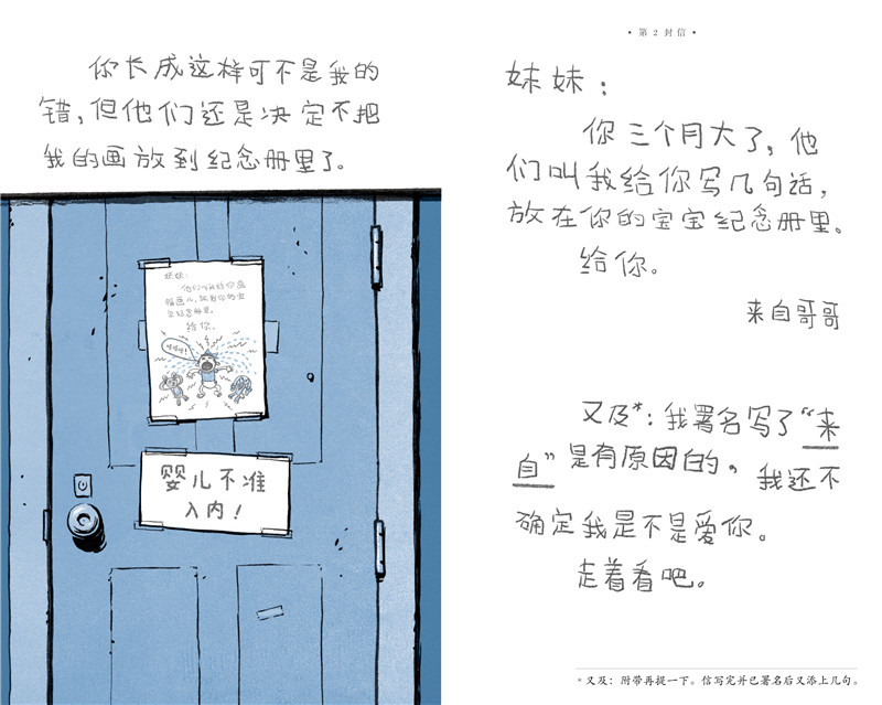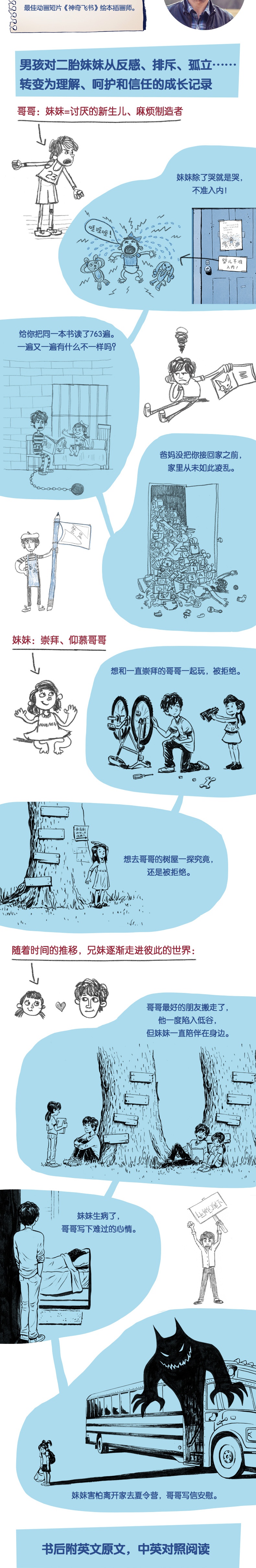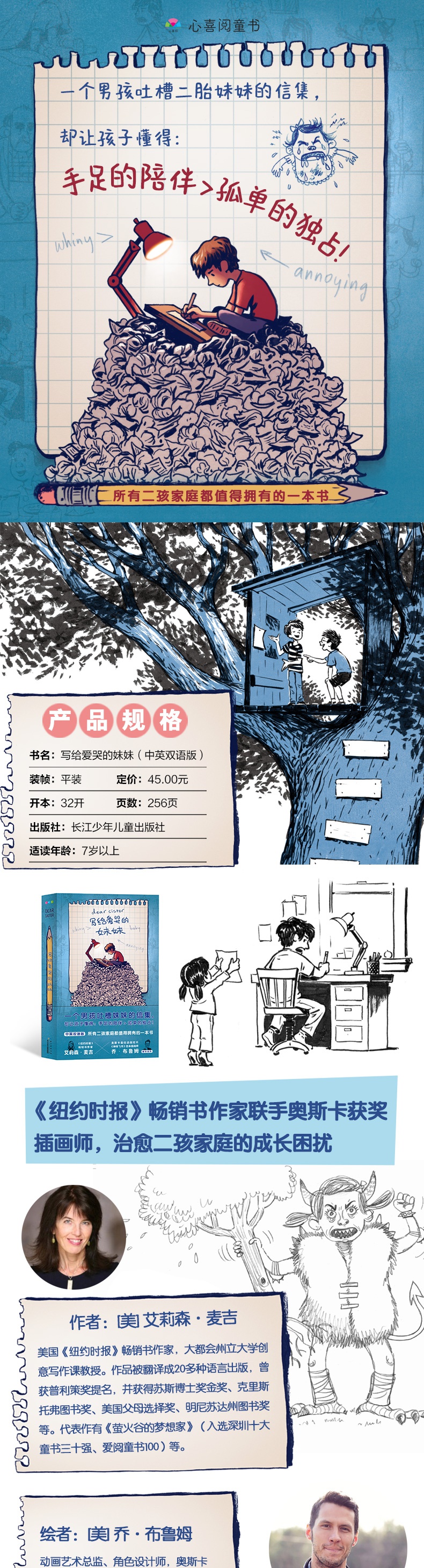 由《纽约时报》书作家艾莉森·麦吉与奥斯卡级插画师乔·布鲁姆联手创作,讲述了一个男孩用写信的方式记录了家里二胎妹妹从出生到十岁的成长过程,以及十年来自己内心的变化,他从一开始的讨厌、排斥、责难妹妹,到理解、信任和爱惜妹妹的心灵成长经历。