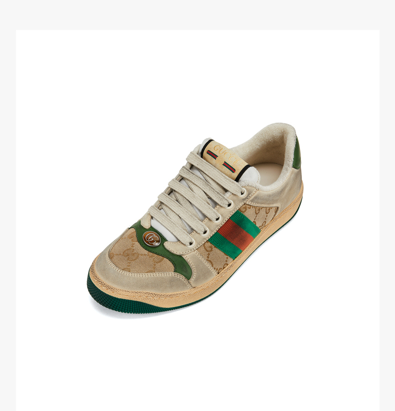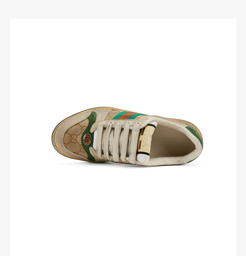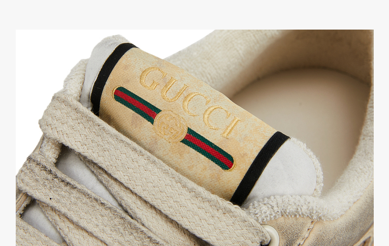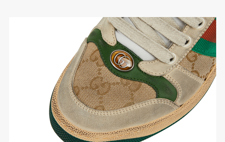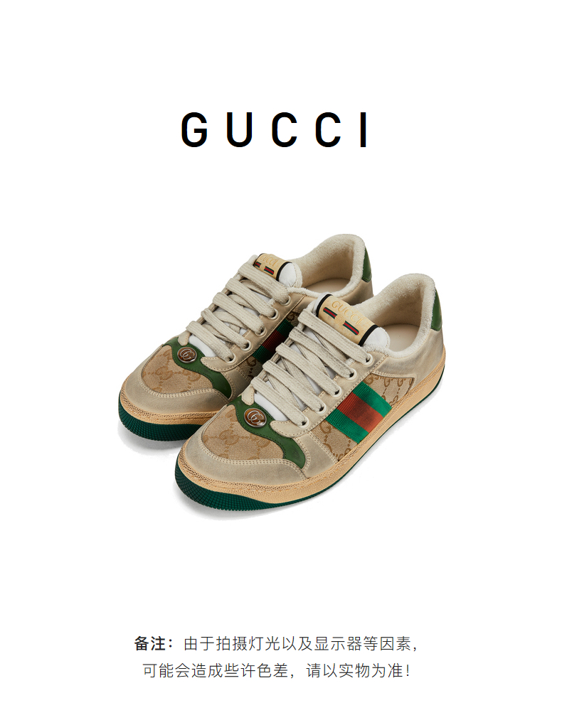 GUCCI 古驰 Gucci男鞋 男士Screene系列GG复古印花条纹小脏鞋运动鞋 白色卡其色 546551 9Y920