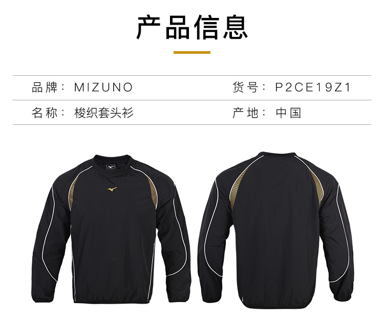 Mizuno/美津浓运动休闲梭织套头衫风雨衣训练长袖男P2CE19Z1