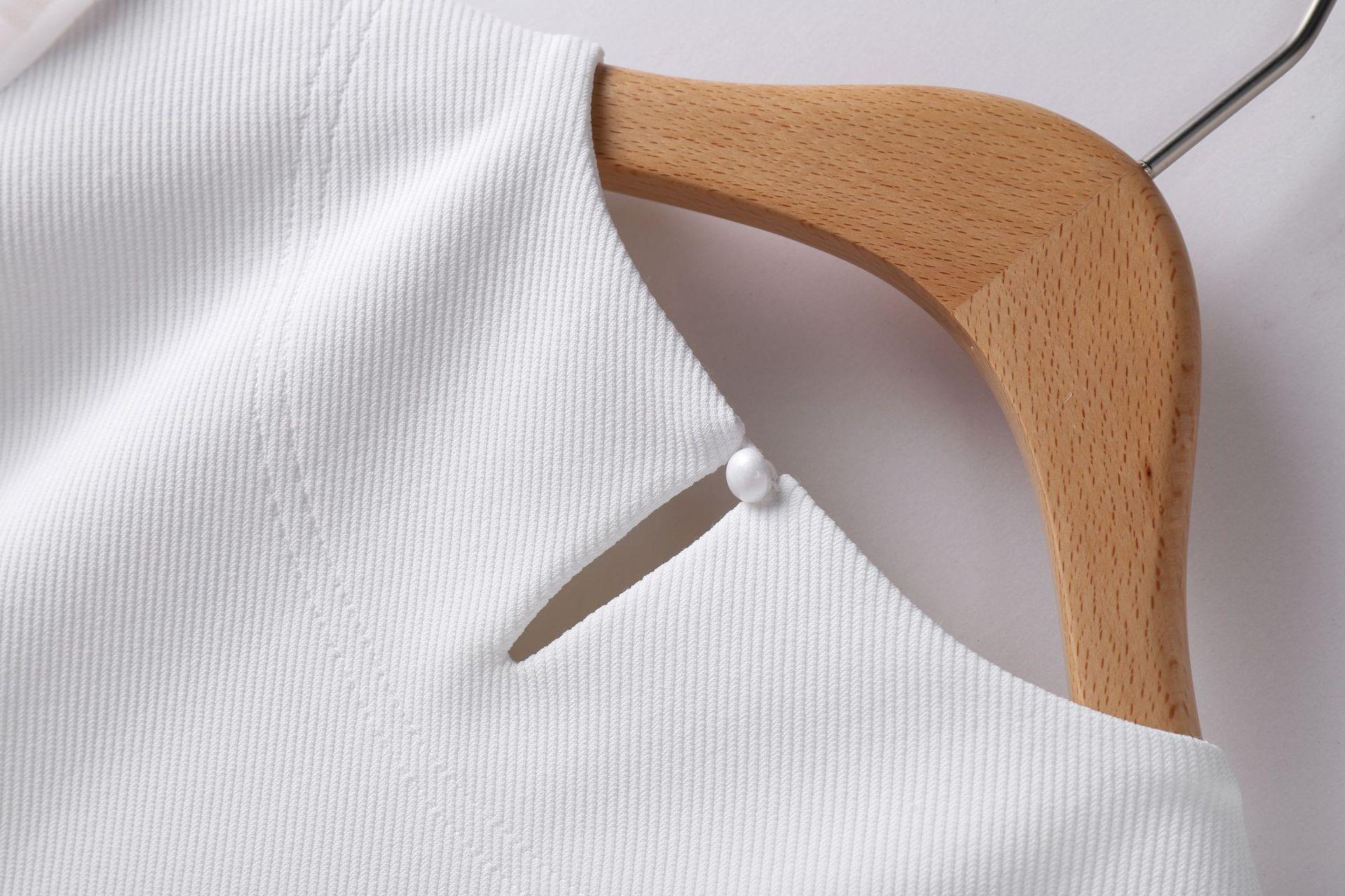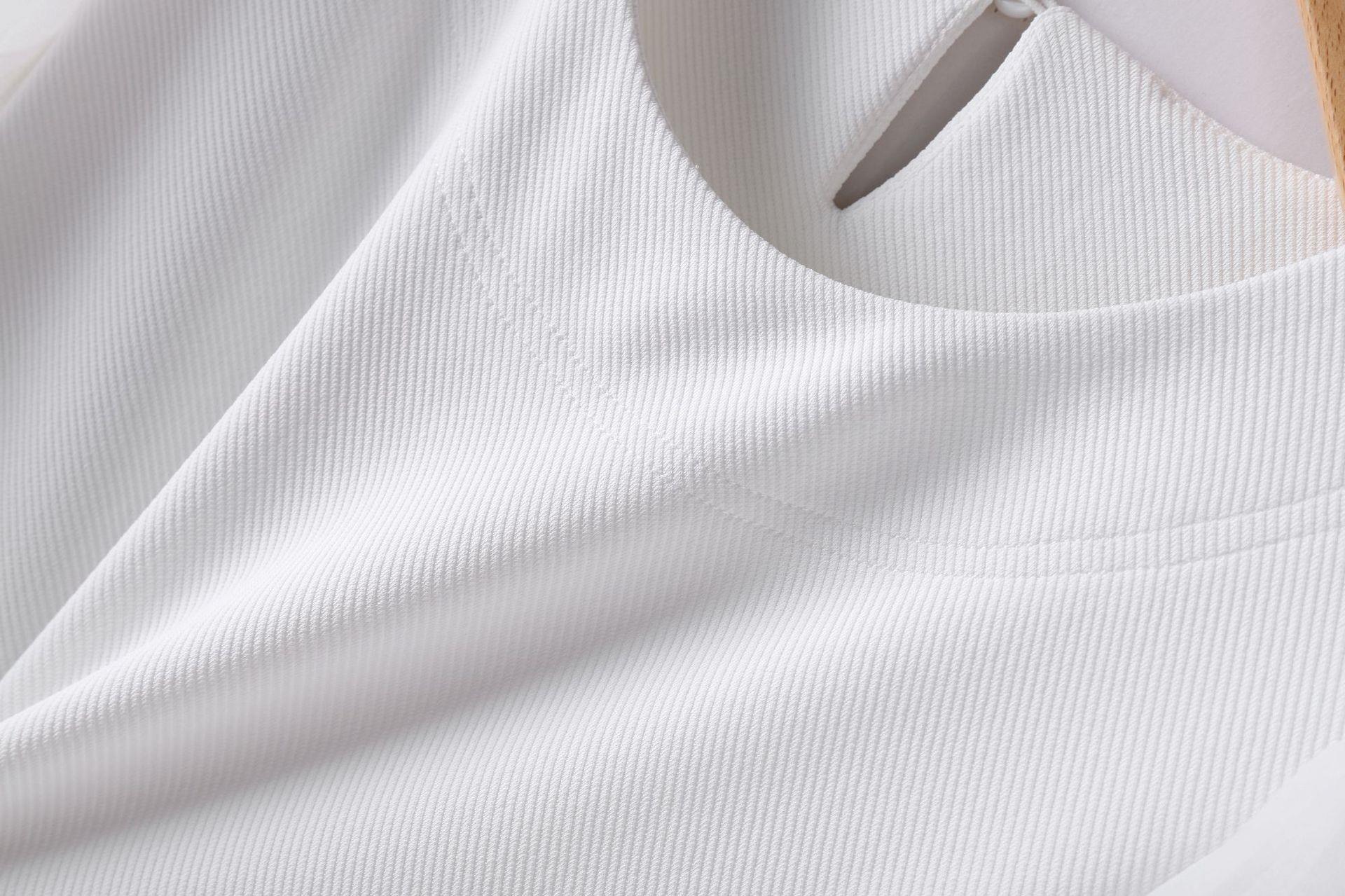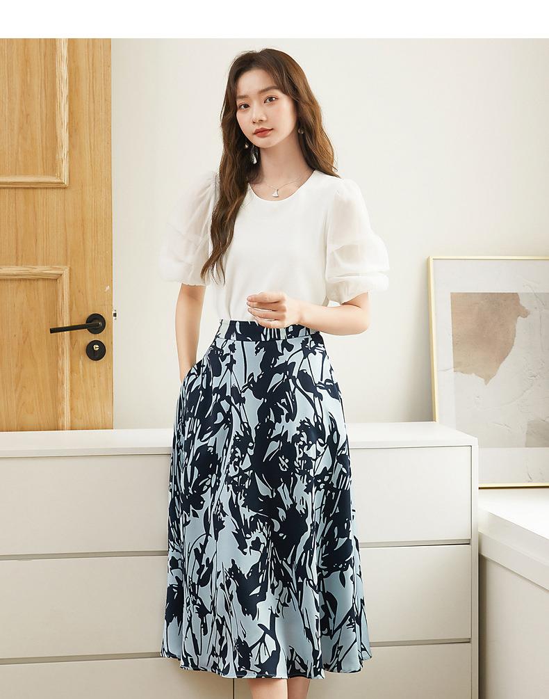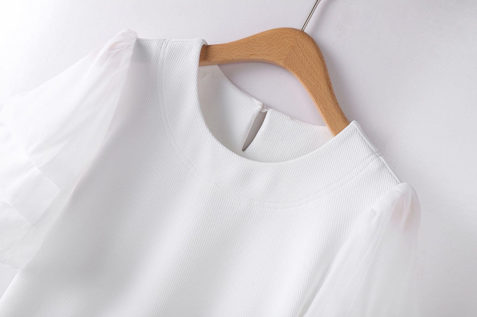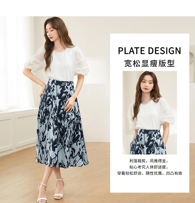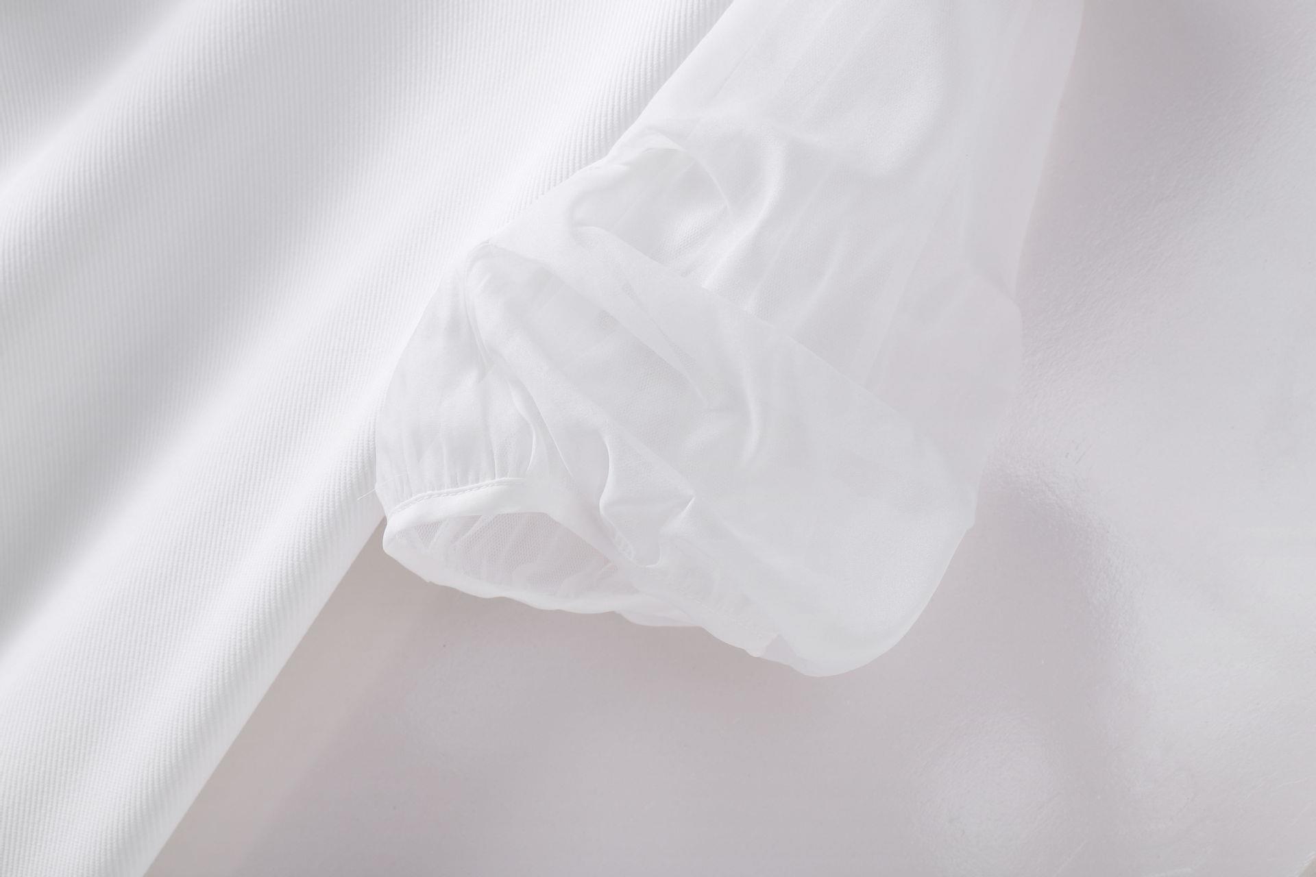 百姿 拼接雪纺短袖衬衫女2023夏季新款圆领简约气质棉小衫231173