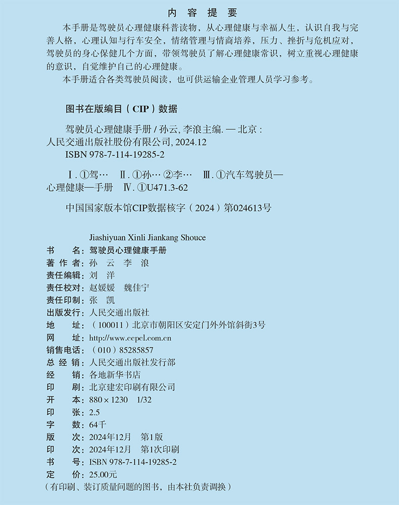 书名:驾驶员心理健康手册