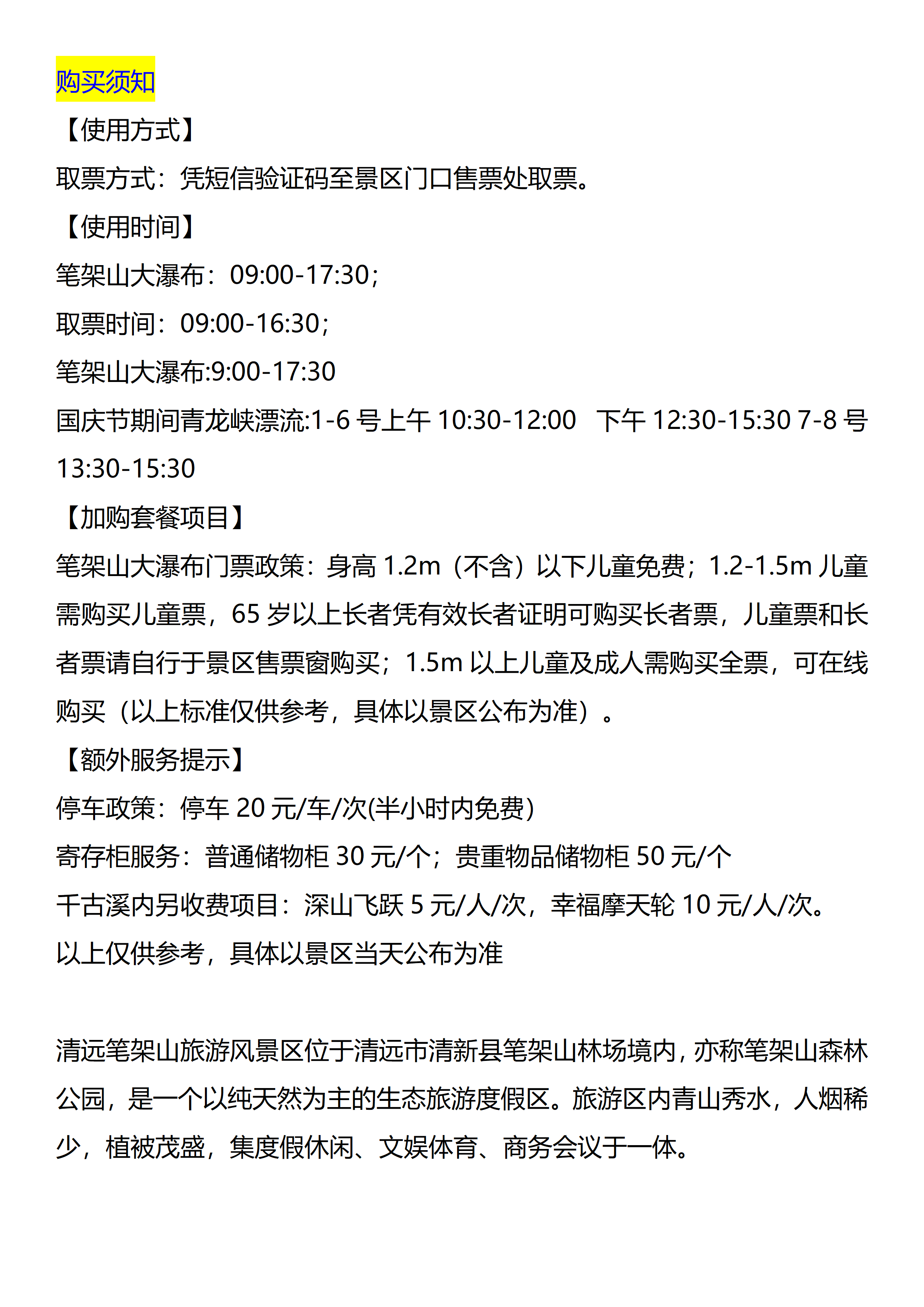 【清远笔架山旅游区】门票