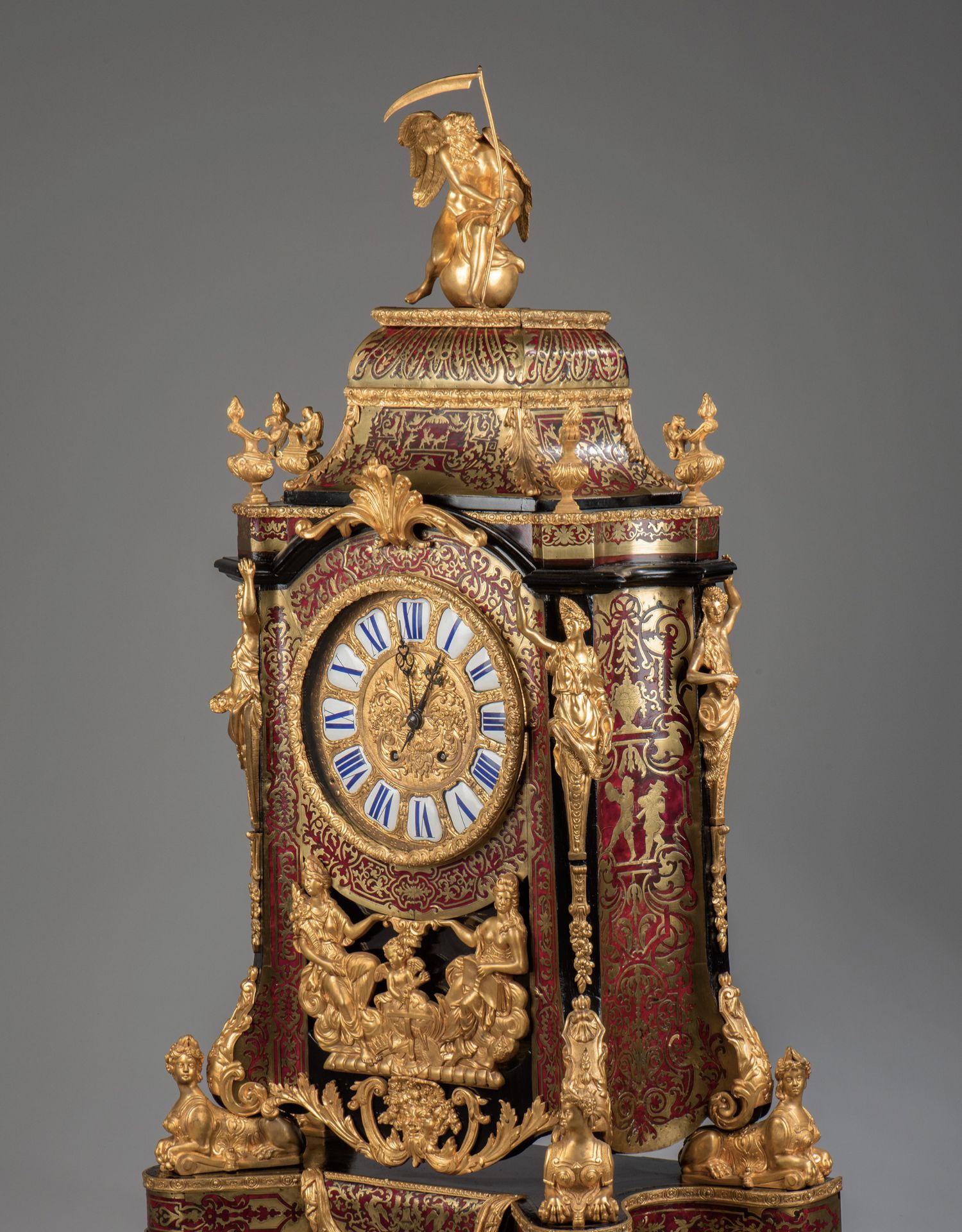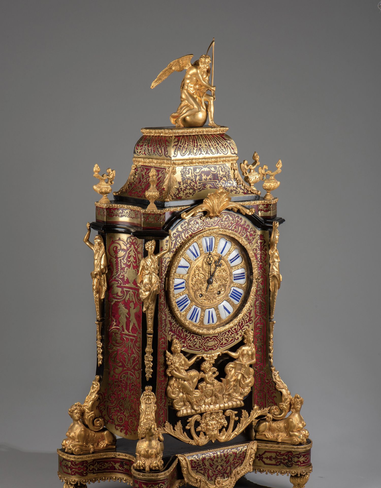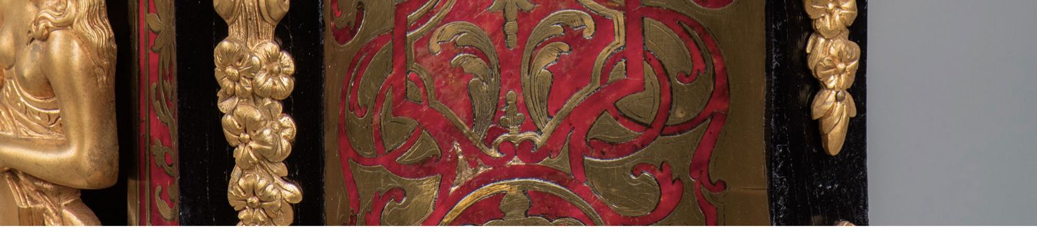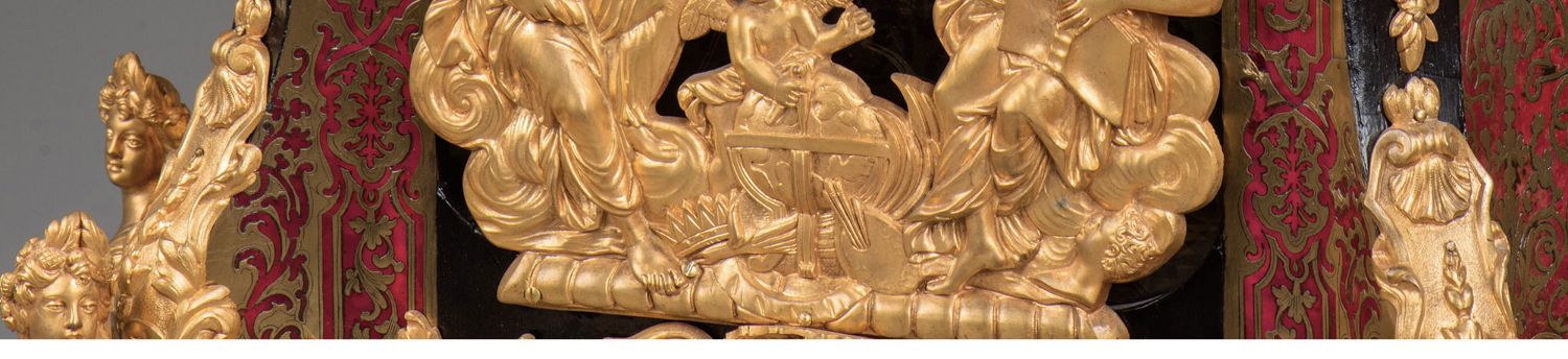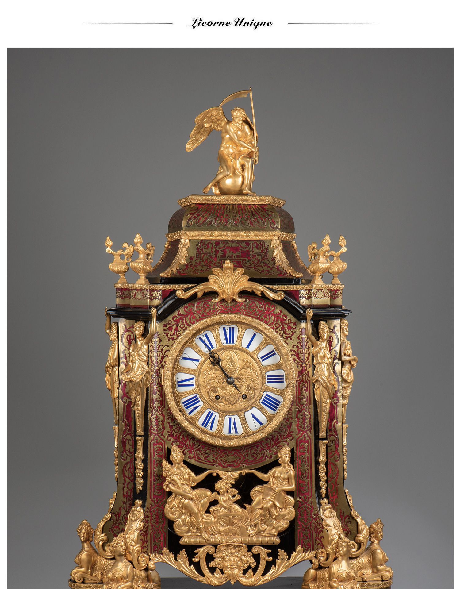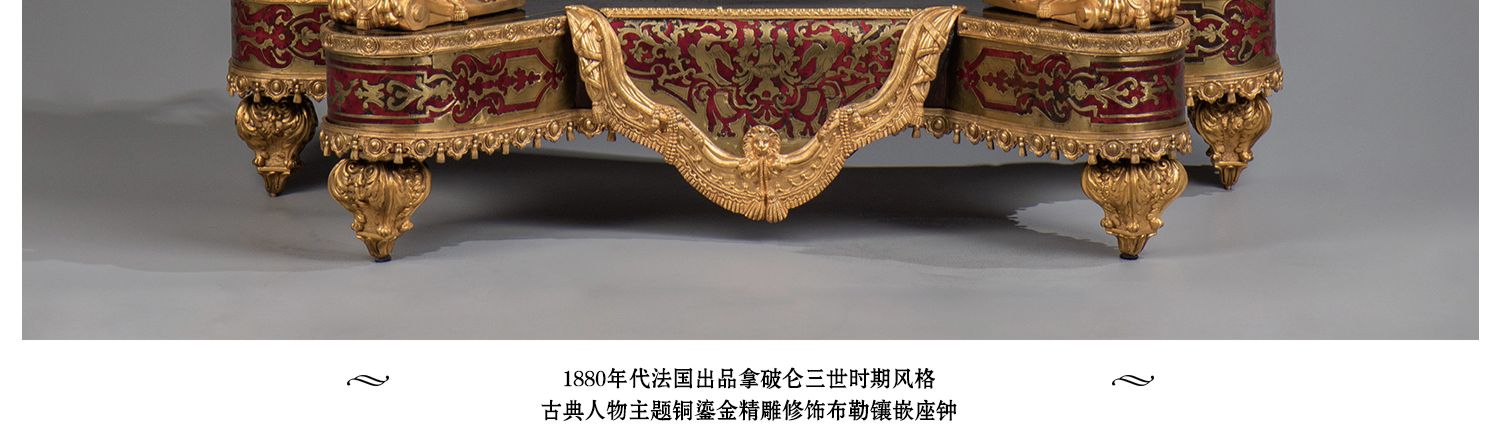 国内现货独角鹿西洋古董拿破仑三世古典人物铜鎏金布勒镶嵌座钟
