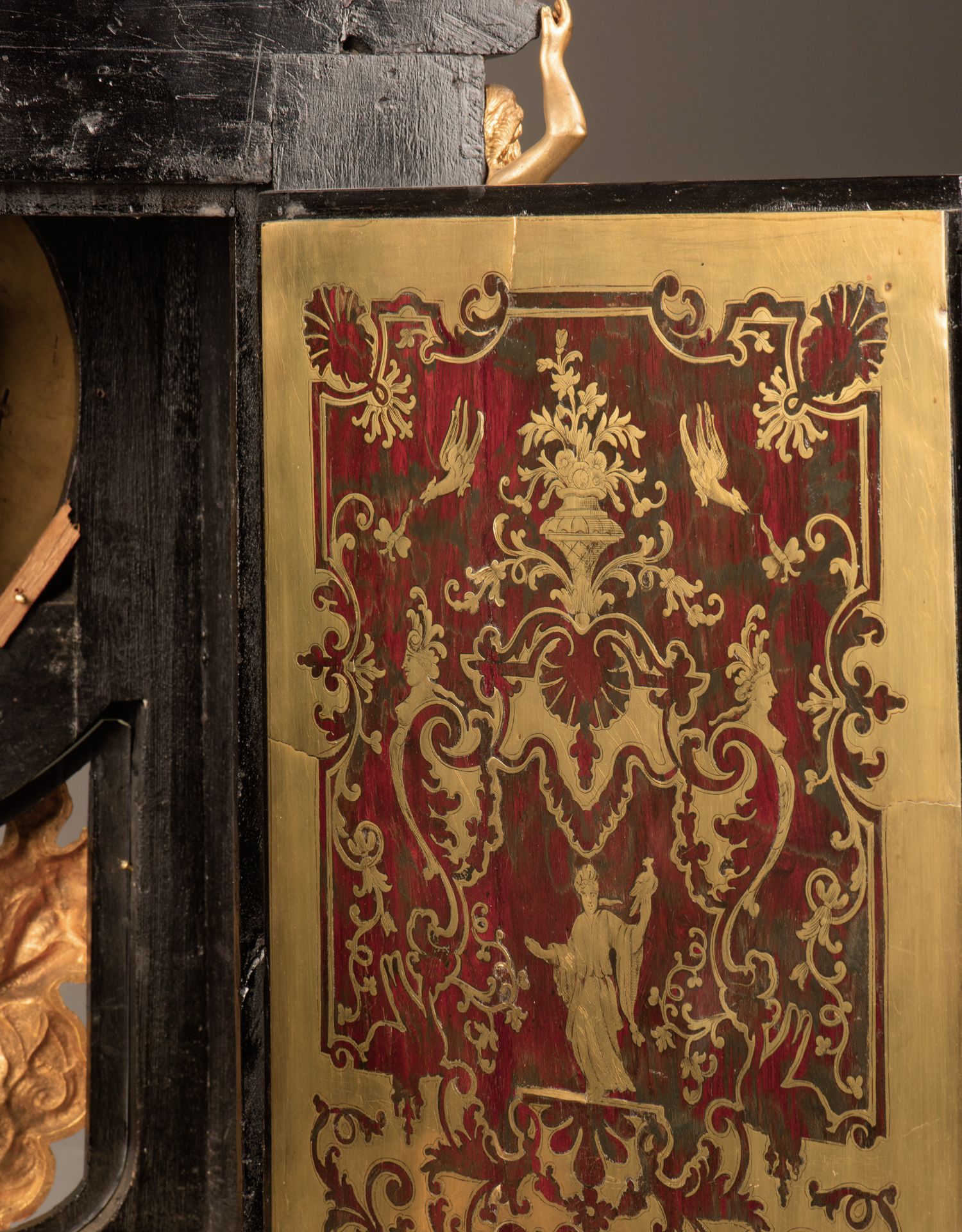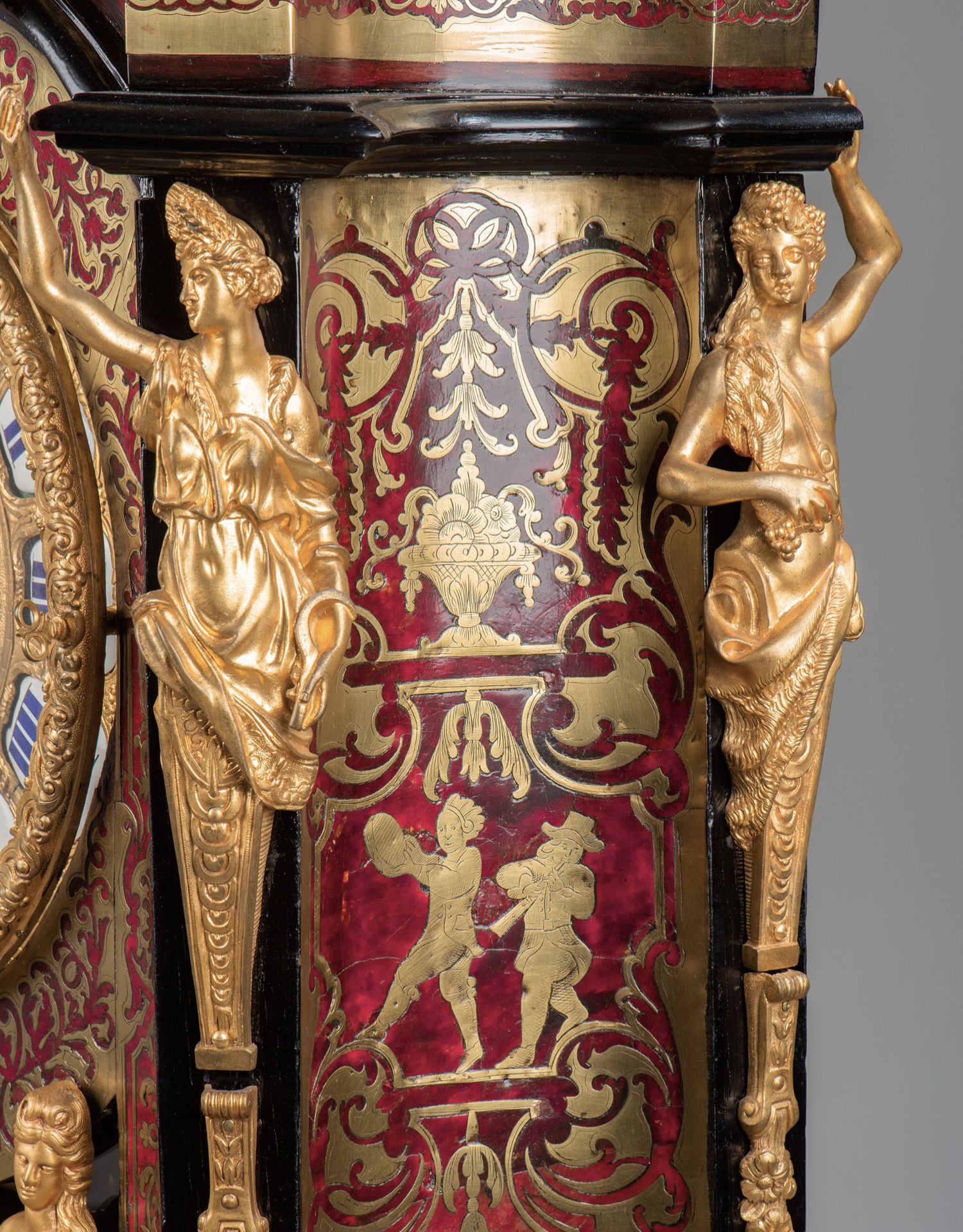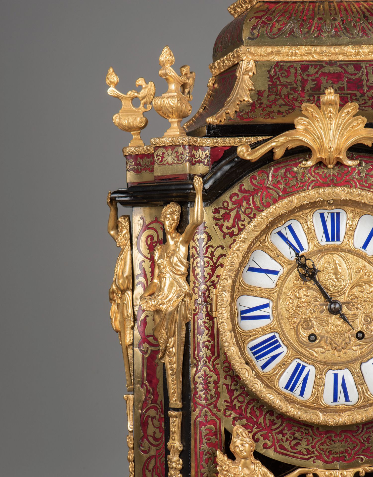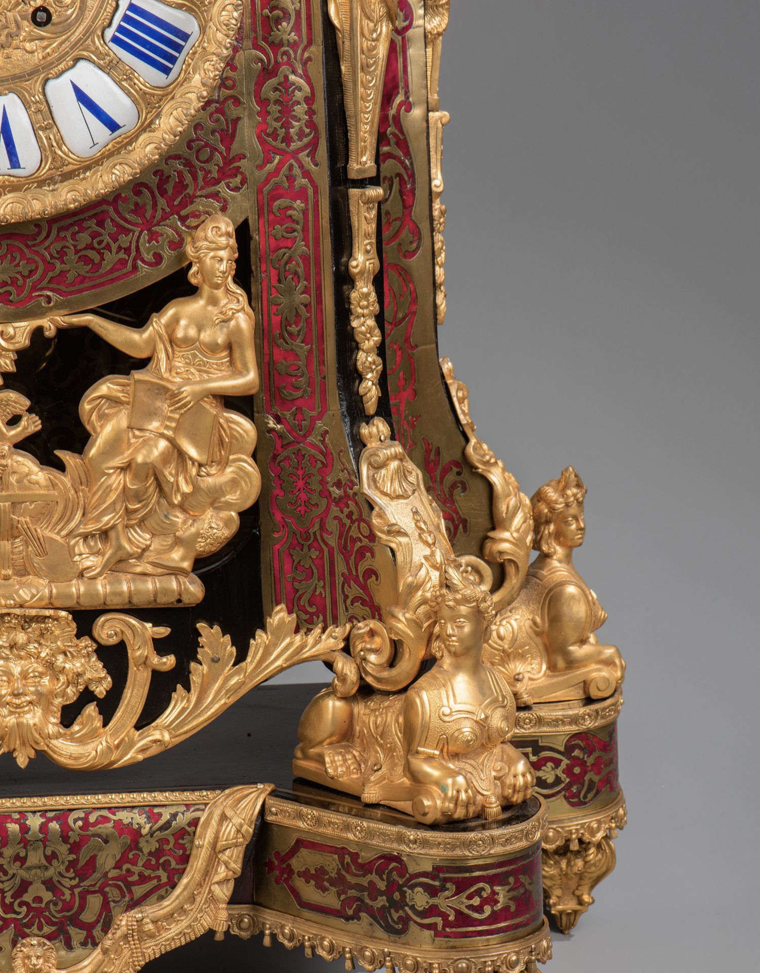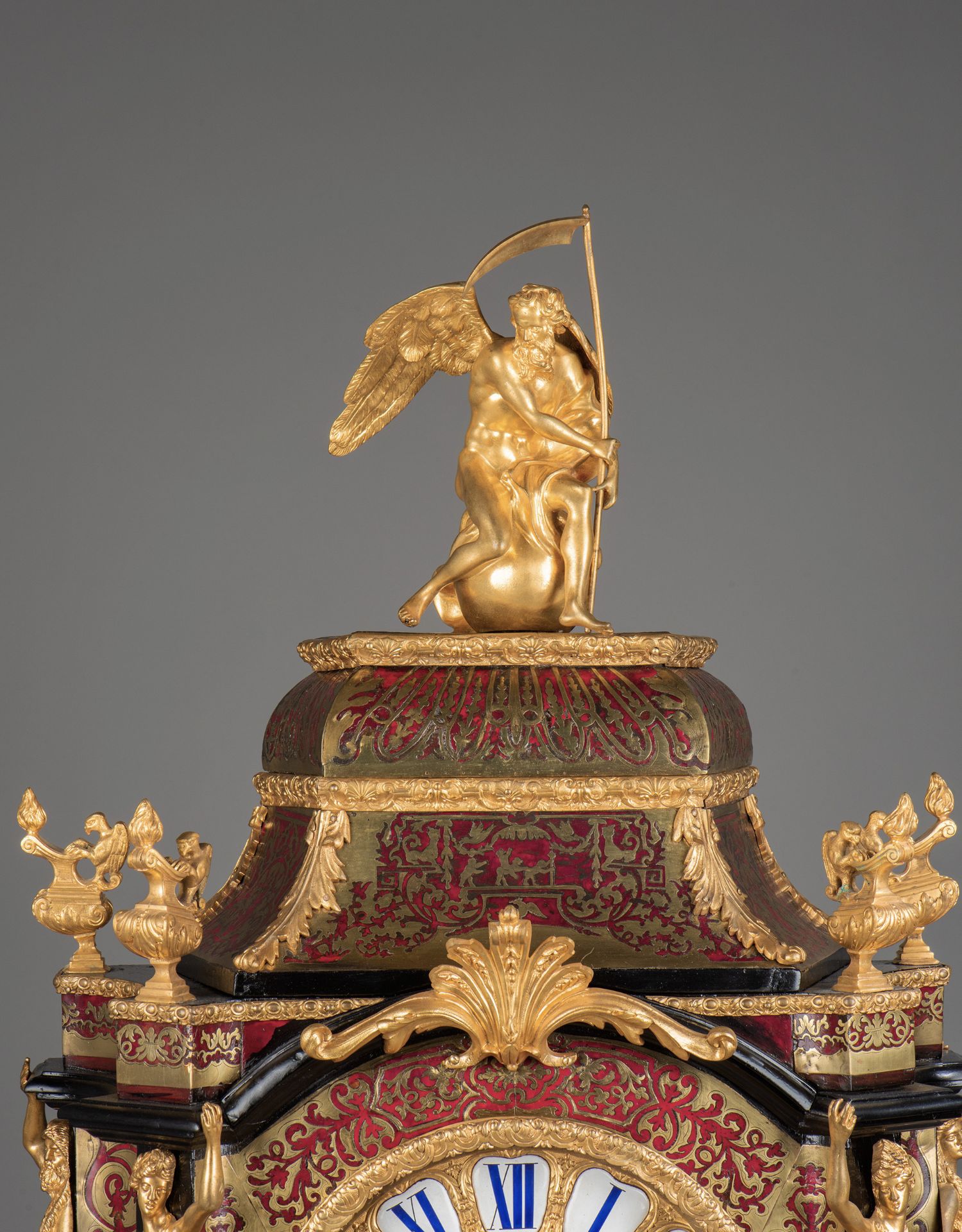 国内现货独角鹿西洋古董拿破仑三世古典人物铜鎏金布勒镶嵌座钟