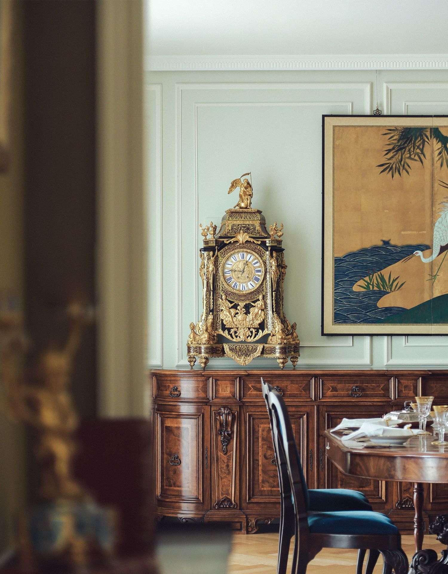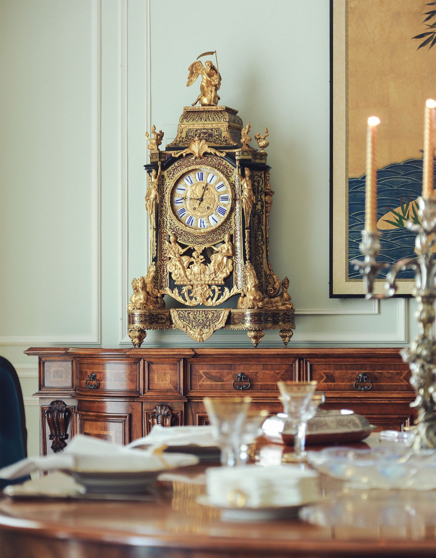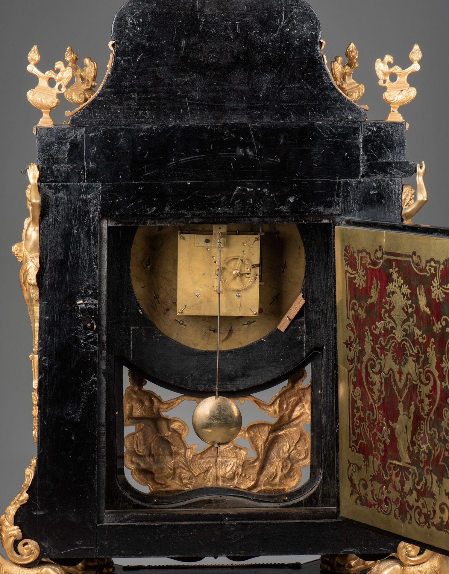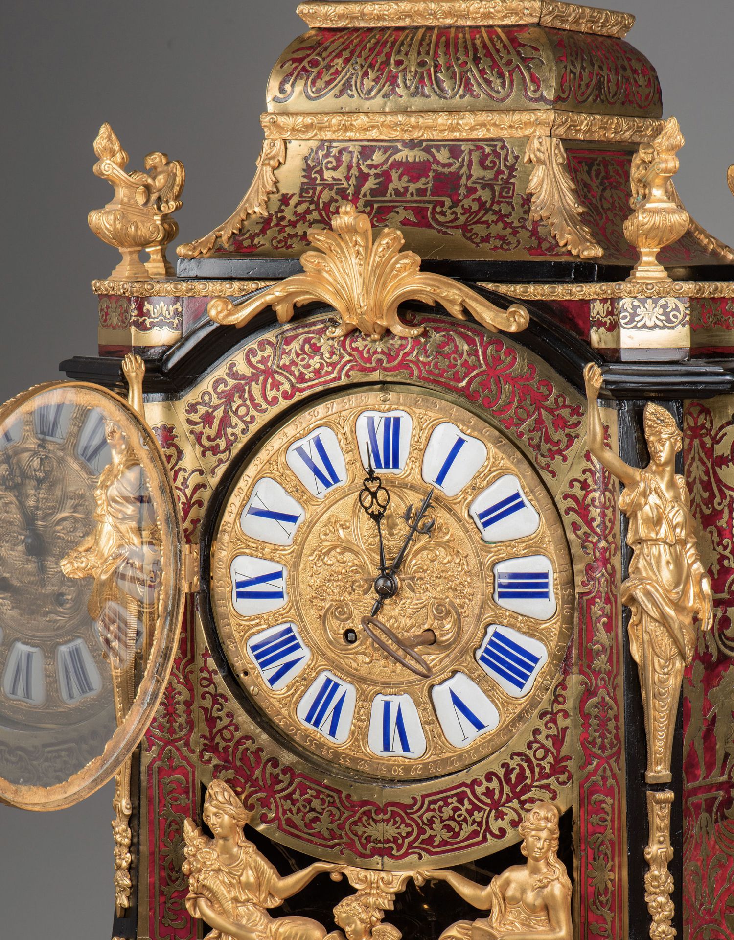 国内现货独角鹿西洋古董拿破仑三世古典人物铜鎏金布勒镶嵌座钟