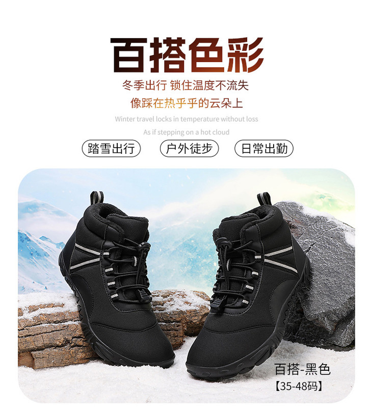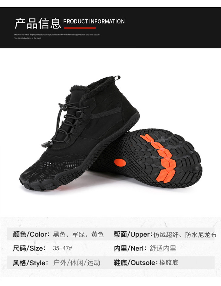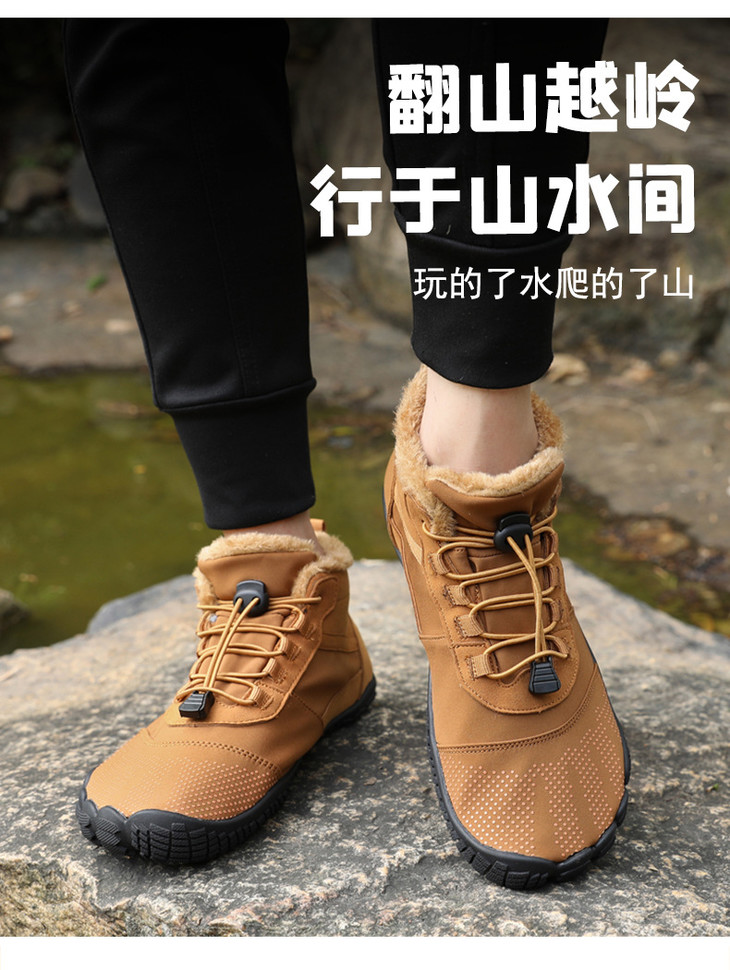 秋冬季五指登山鞋户外保暖防护雪地靴防泼水面料加绒耐穿休闲棉鞋