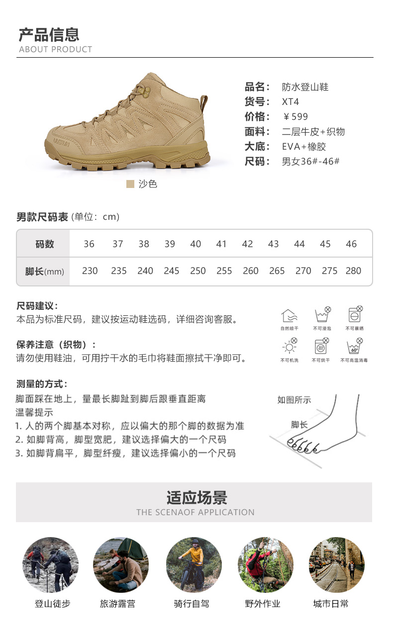 【又乐】户外登山鞋时尚轻量徒步鞋防水中帮减震防滑耐磨XT4
