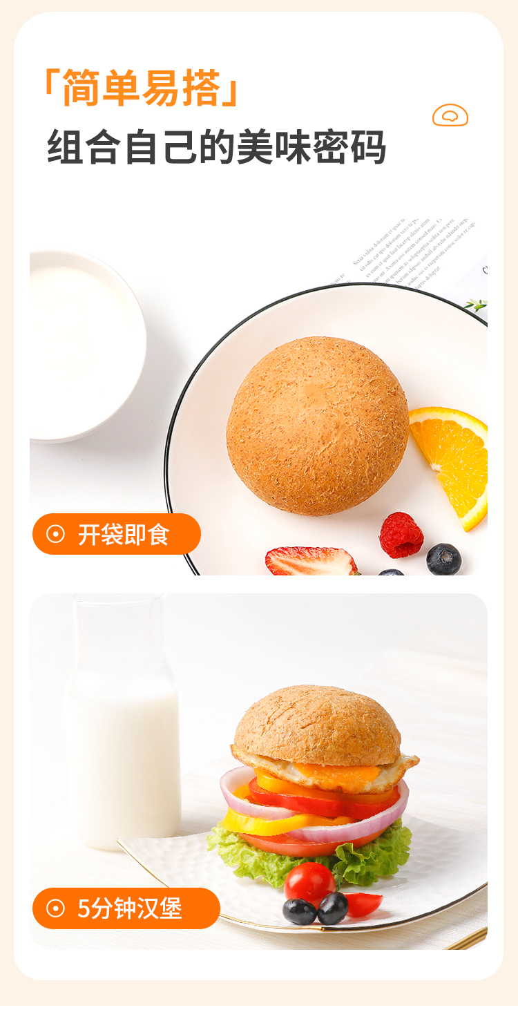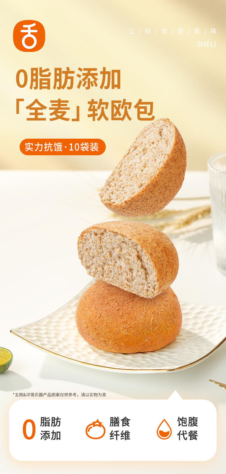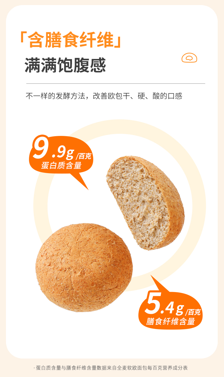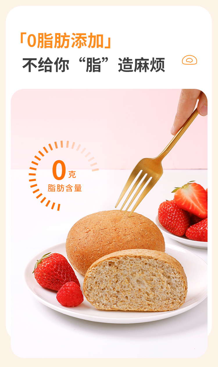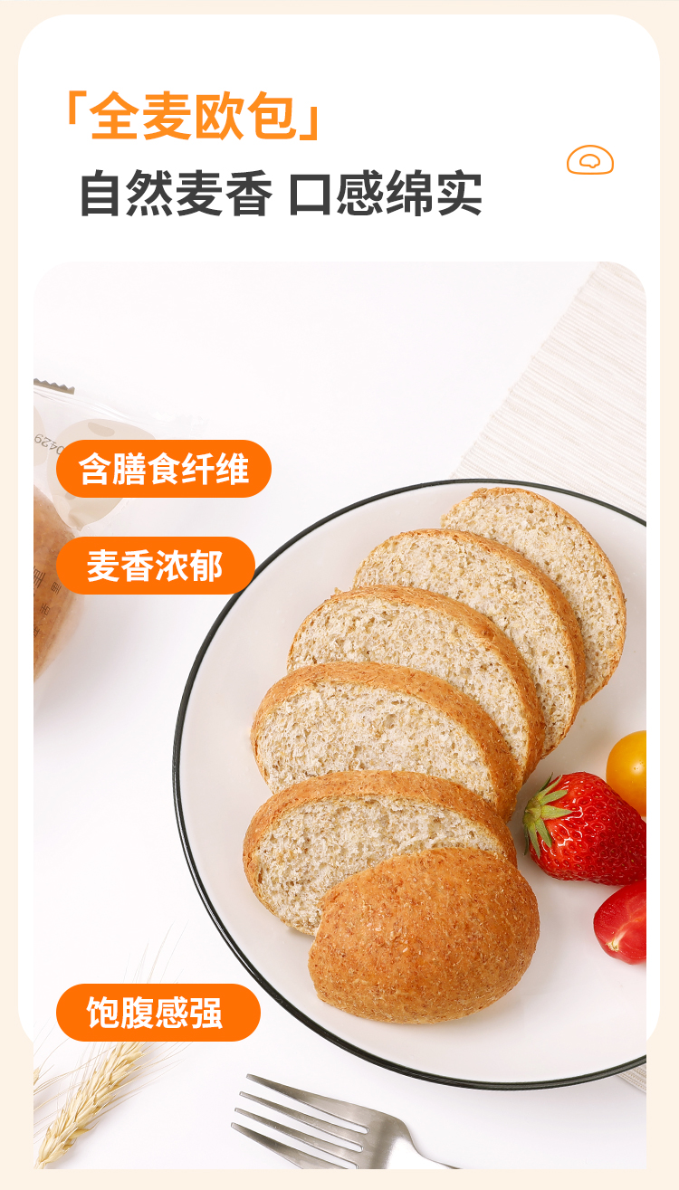 【舌里全麦软欧包800g】0脂肪全麦欧包早餐代餐速食粗粮面包