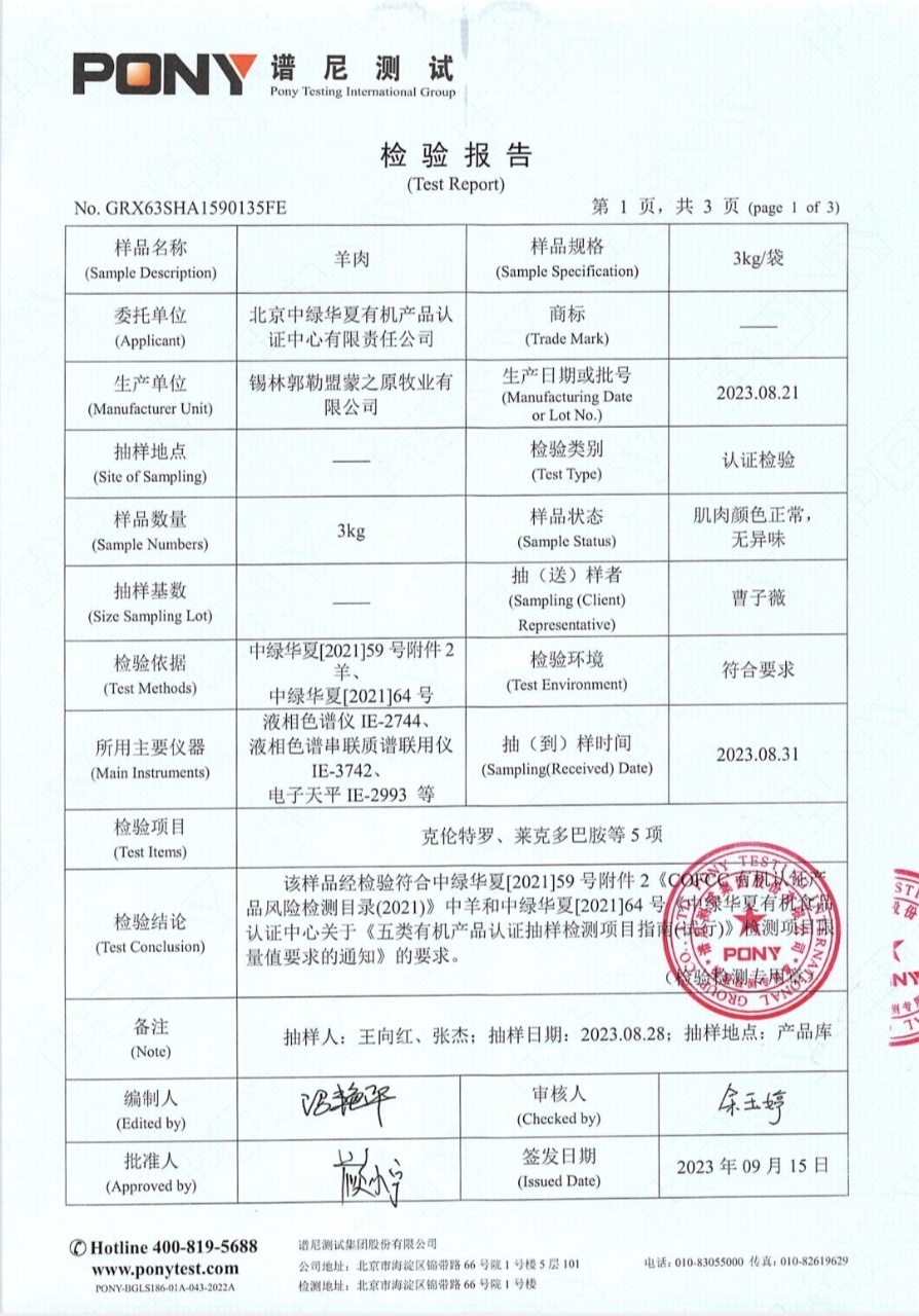 连续十年有机认证,对牧场牧草、家畜养殖、加工方式及羊肉产品四大环节进行了三重有机认证