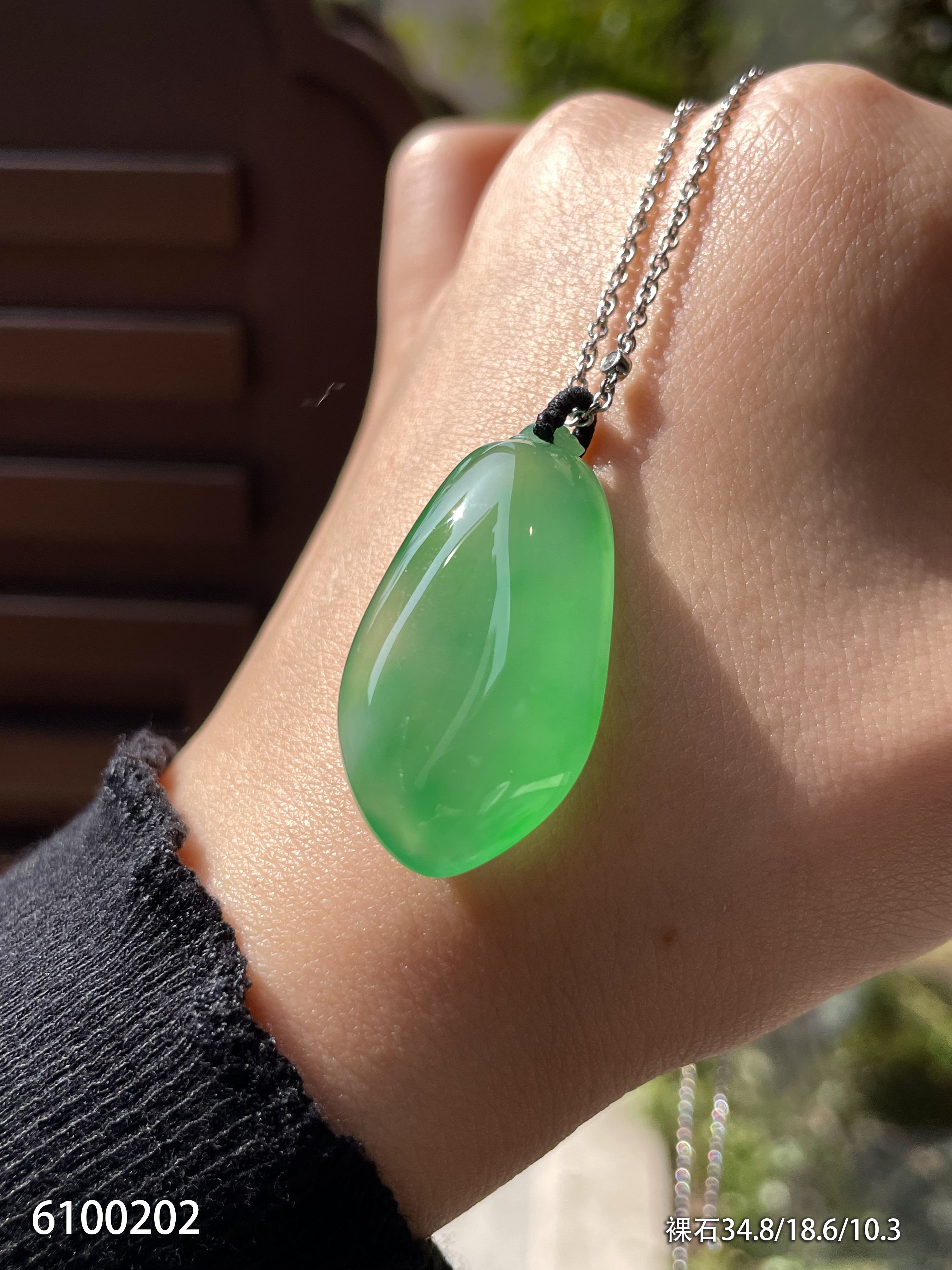 120-1232908,玻璃种木那艳绿蛋面戒指,具体价格微信咨询