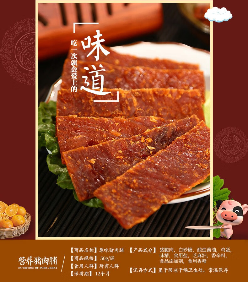唯新50g猪肉脯*5包 休闲家庭食品小吃零食