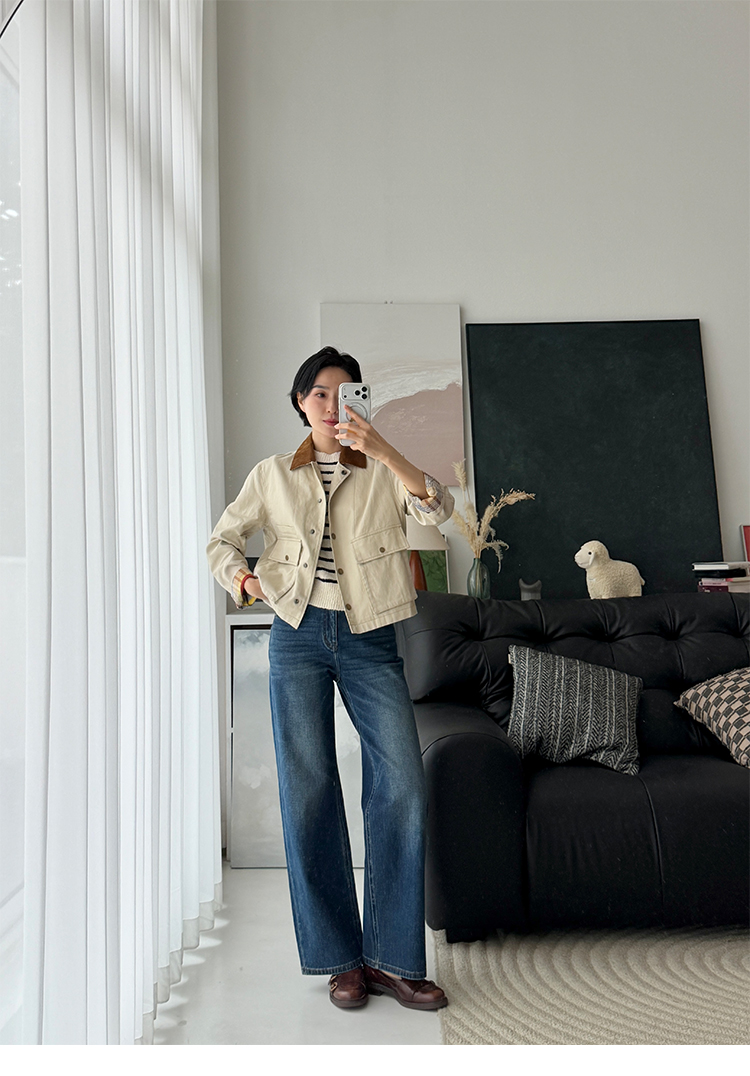「工厂团购上新」春款外套 拼接翻领复古工装夹克ZCJ24331