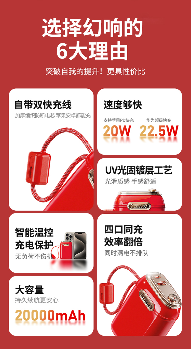幻响充电宝26年新品集合快充充电宝10000/20000mAh充电聚合物轻薄便携大容量【新春好物随行专场】