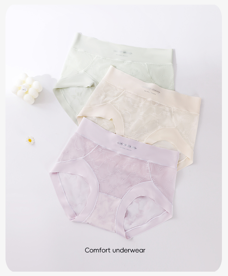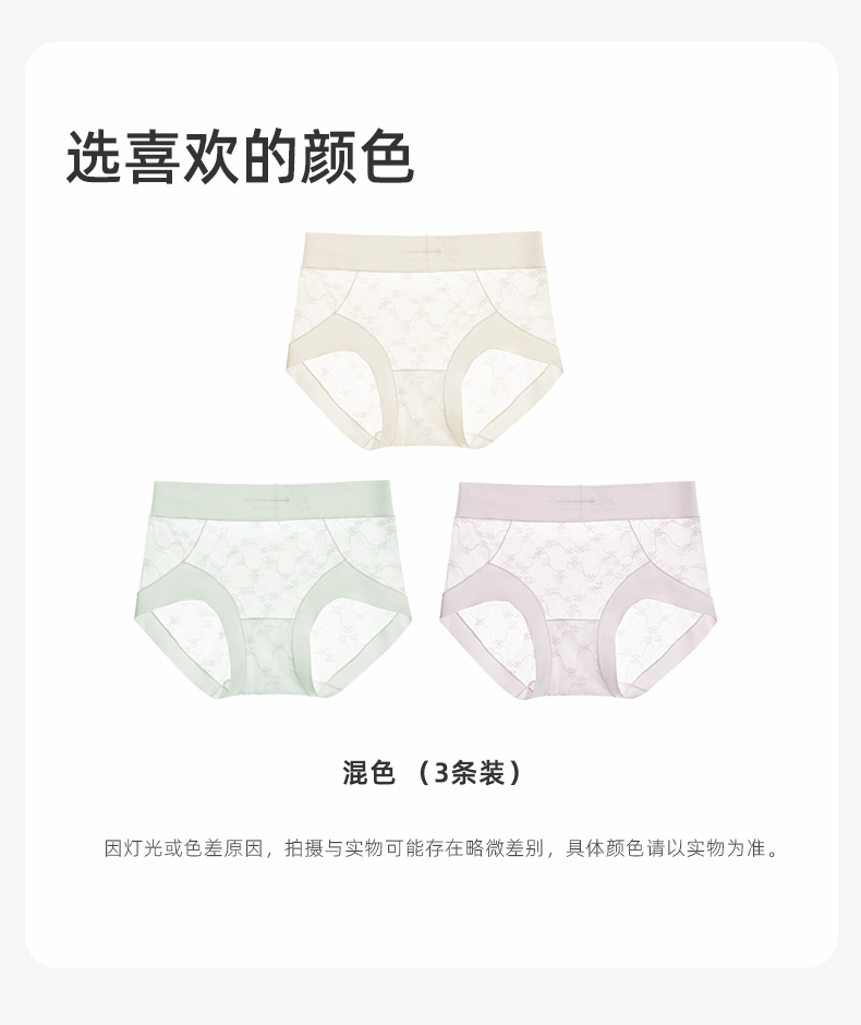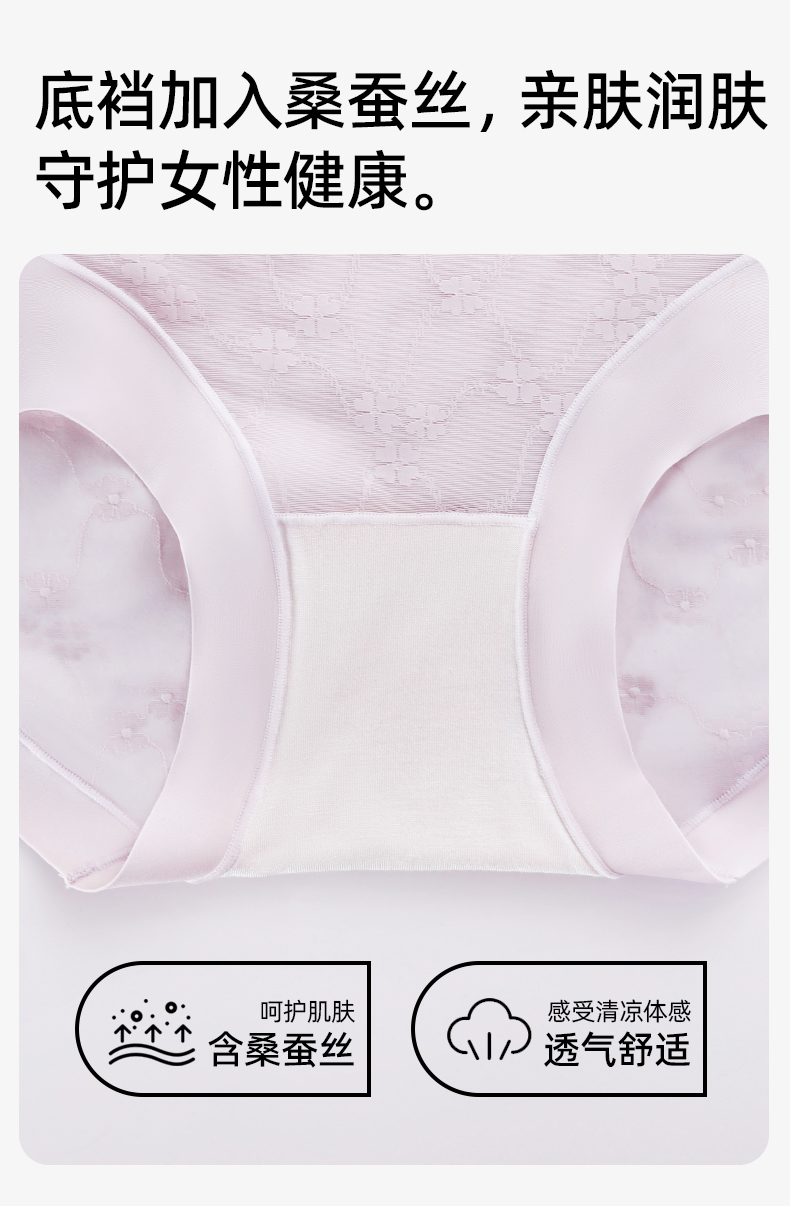 【3条装】熳洁儿 中腰女士内裤网纱清凉透气含桑蚕丝25262117