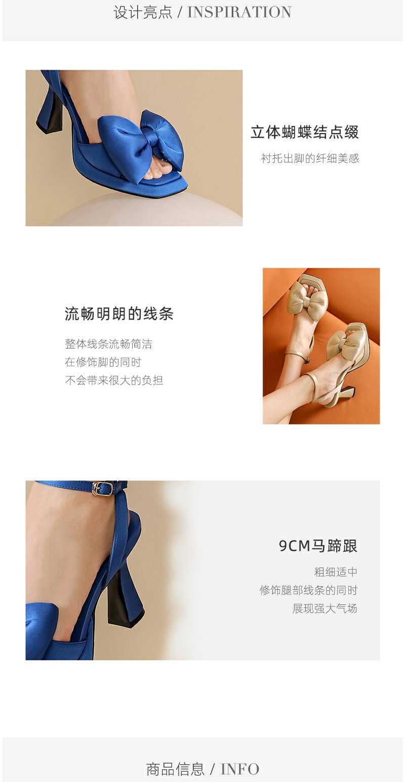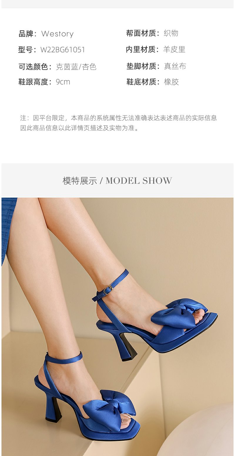 Westory2022年夏季新款填充感蝴蝶结复古高跟鞋W22BG61051