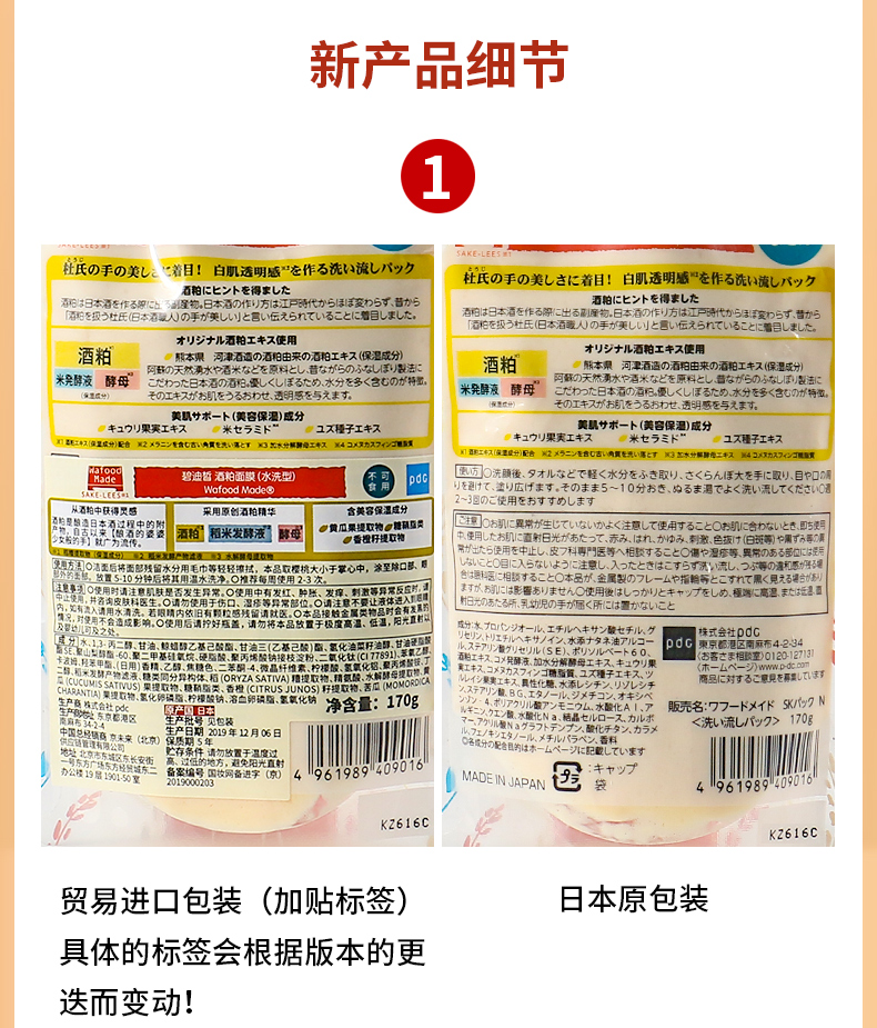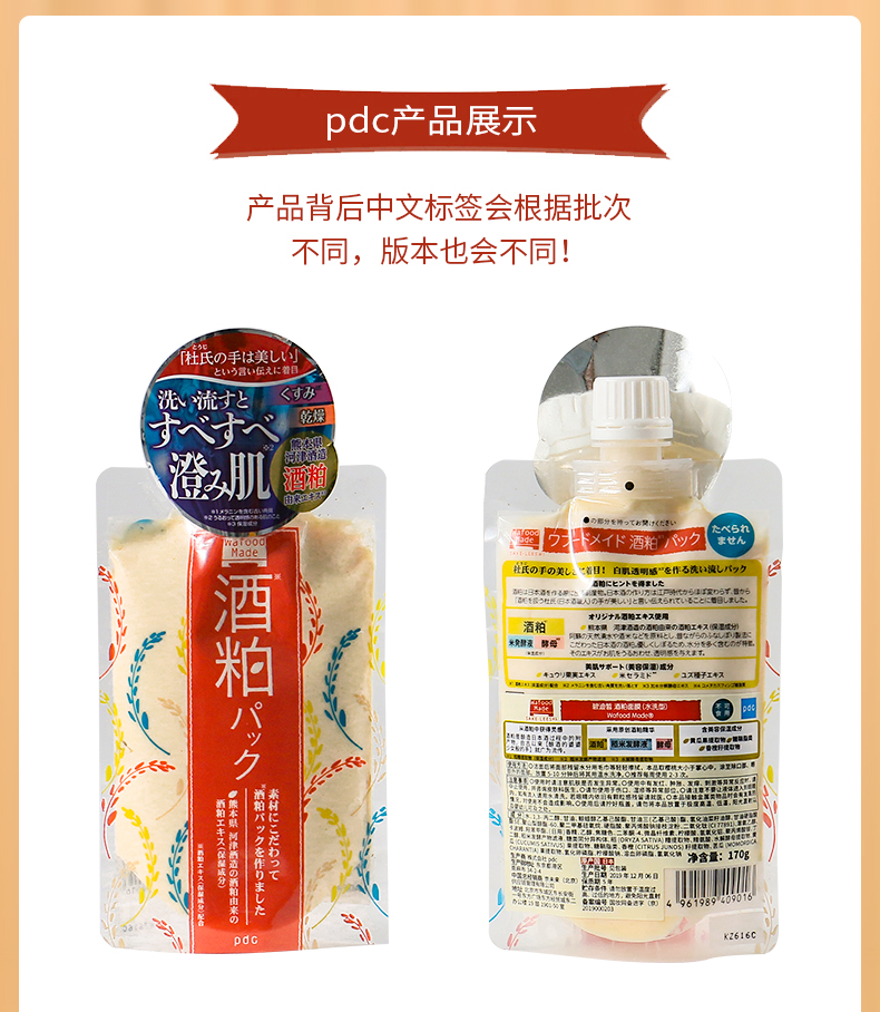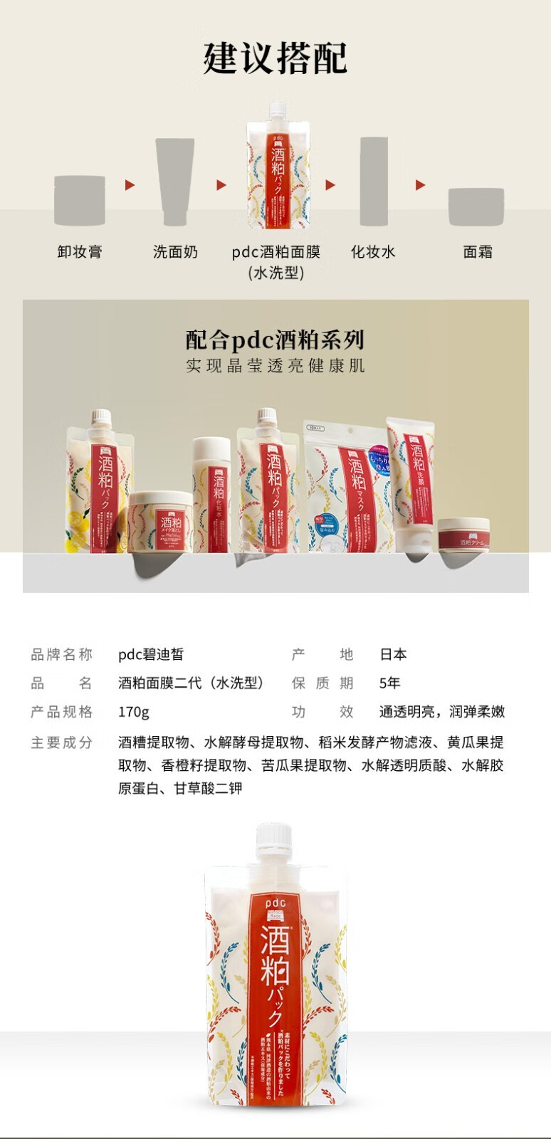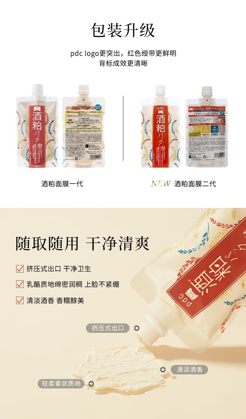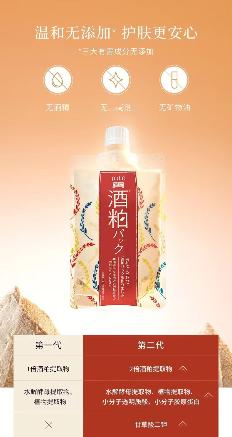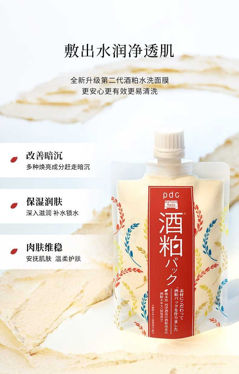 pdc碧迪皙酒粕面膜-水洗型170g 补水提亮肤改善暗沉清洁酒糟泥膜