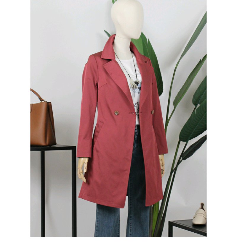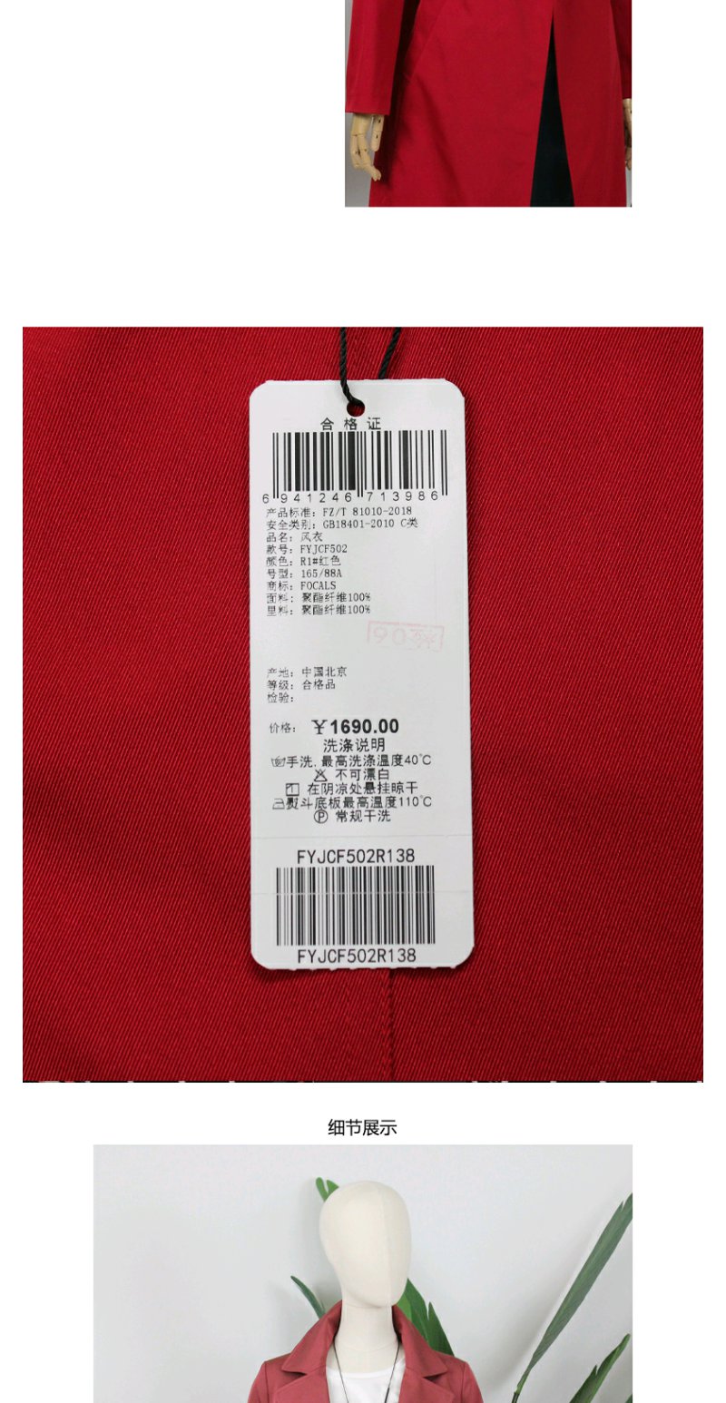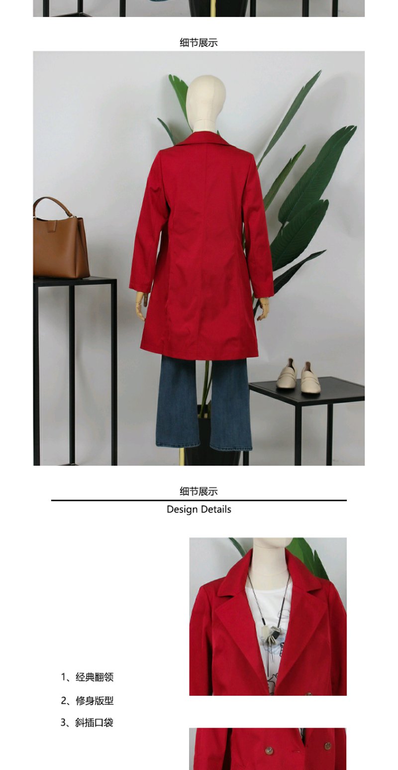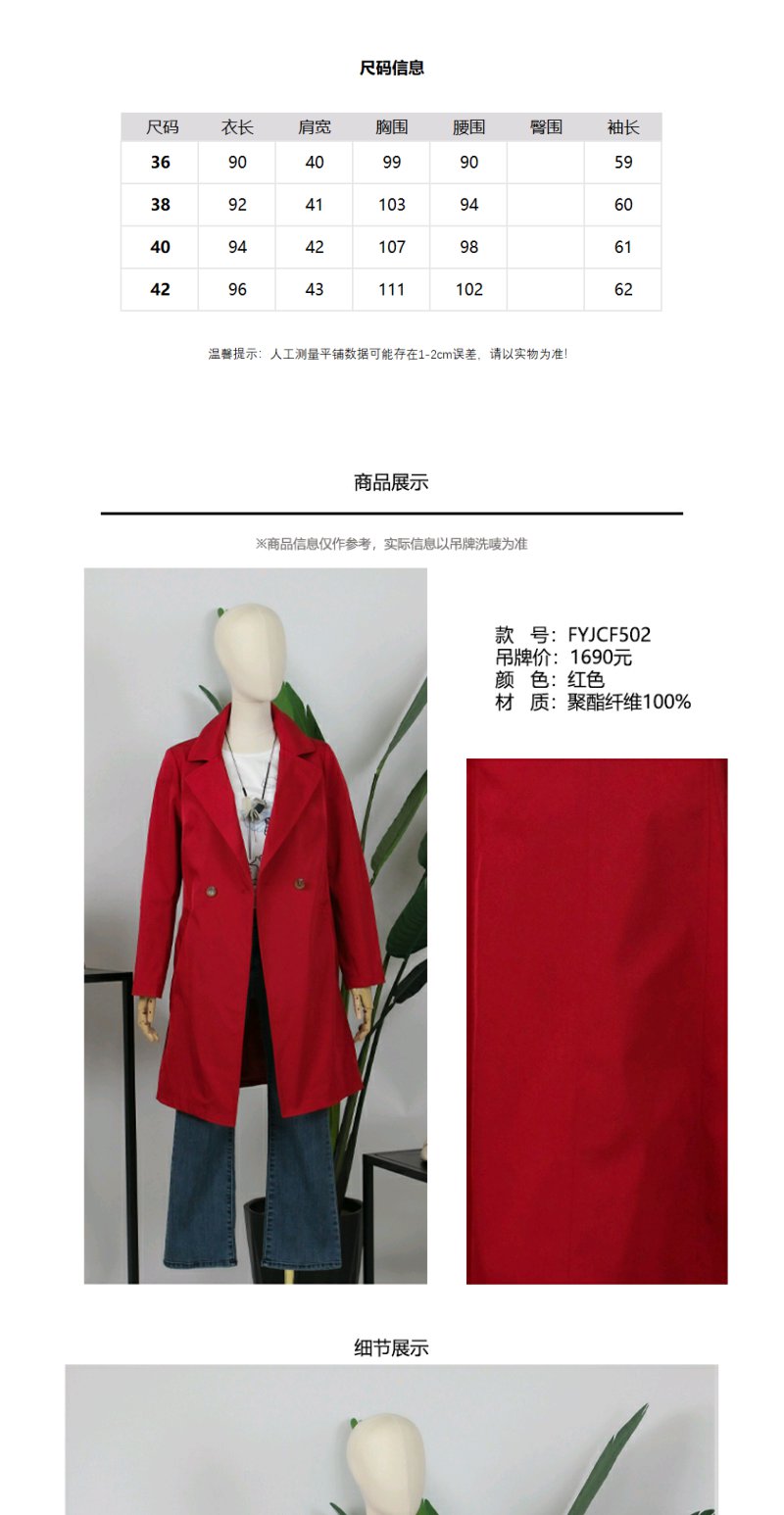 FOCALS福柯斯春秋新款长袖修身双排扣中长款外套风衣FYJCF502