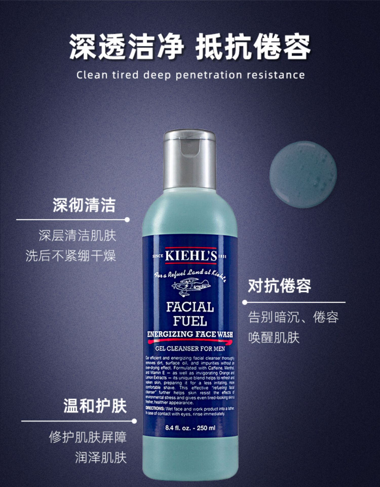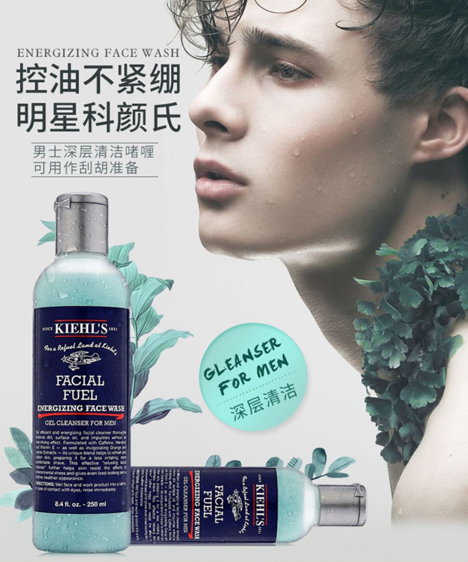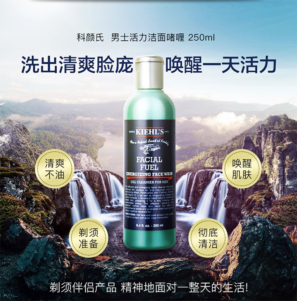 【臻选美妆】科颜氏男士活力洁面啫喱控油保湿补水清洁毛孔250ml 深层清洁