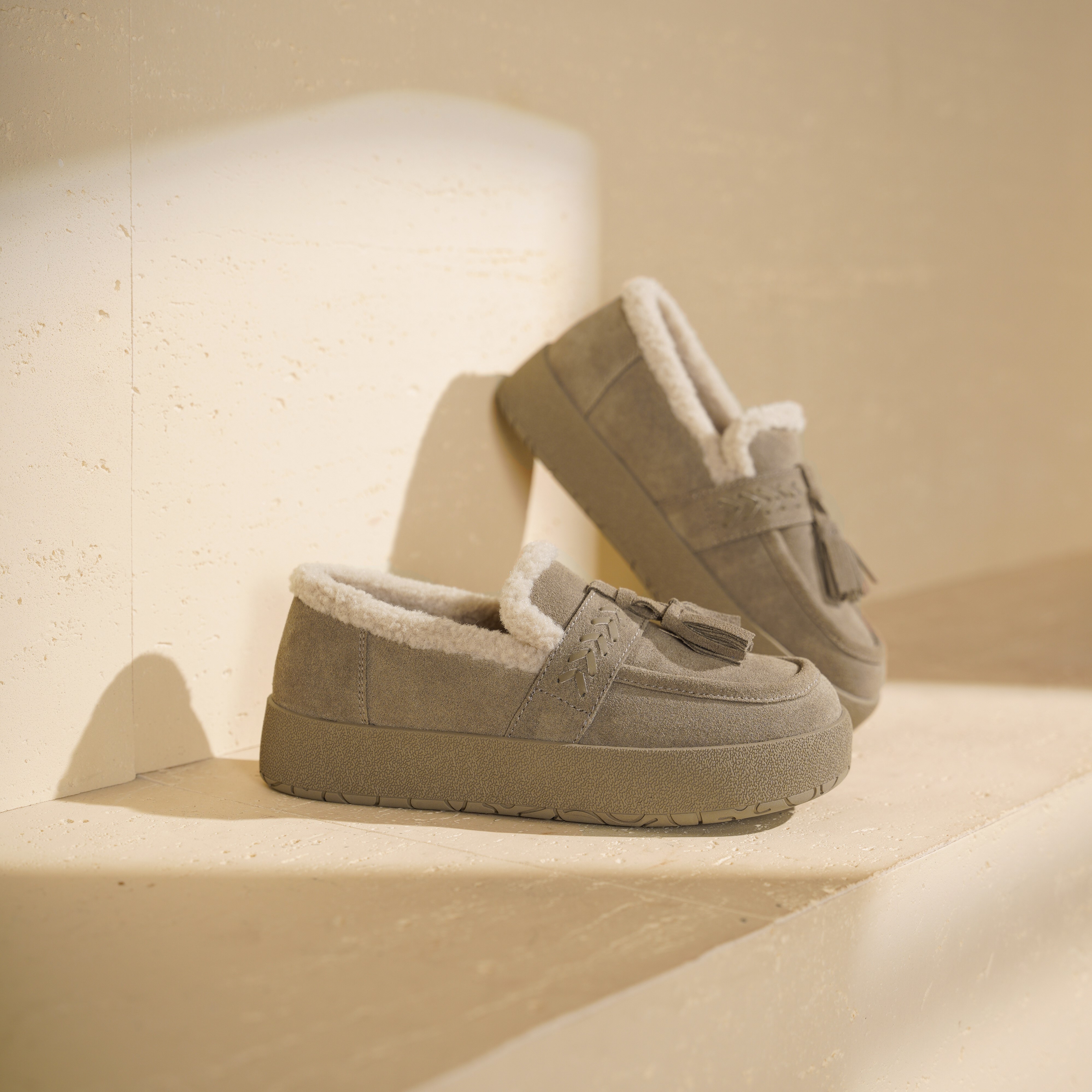 西村名物2025年冬季新款厚底加绒保暖流苏乐福毛毛鞋棉鞋雪地靴T25DM49391