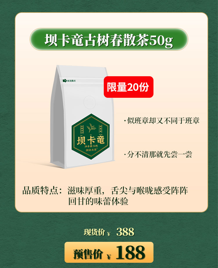 2022年澜沧古茶坝卡竜古树春散茶50g 商品缩略图0 2022年澜沧古茶坝卡竜古树春散茶50g 商品缩略图1 2022年澜沧古茶坝卡竜古树春散茶50g 商品缩略图2