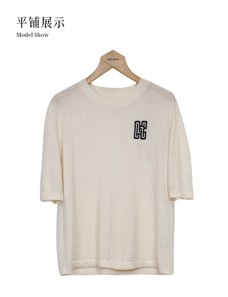 oldcolour纯色针织衫春季新款绵羊毛圆领短袖宽松上衣女P11052157