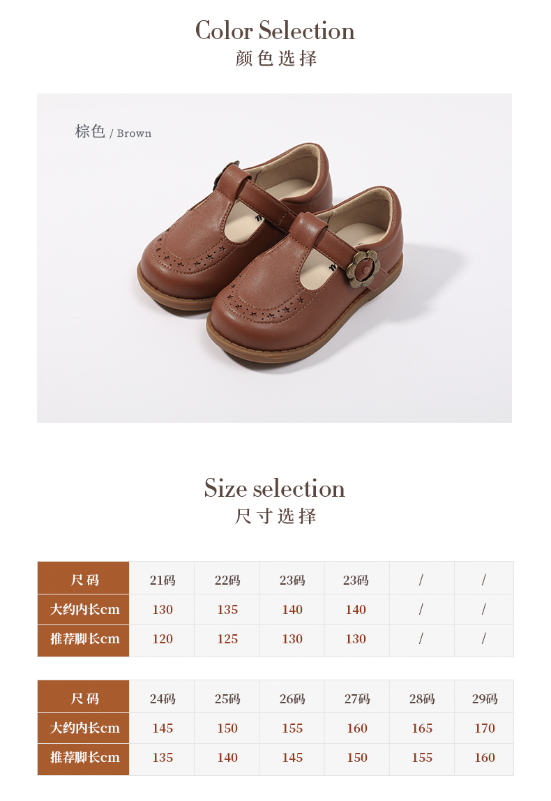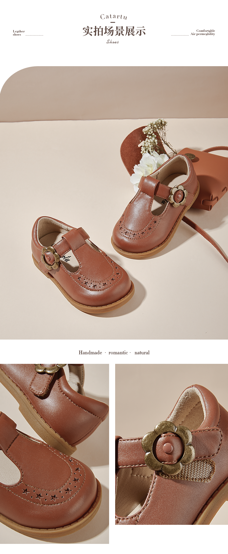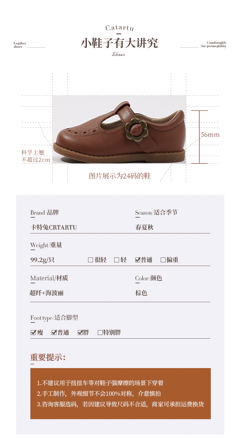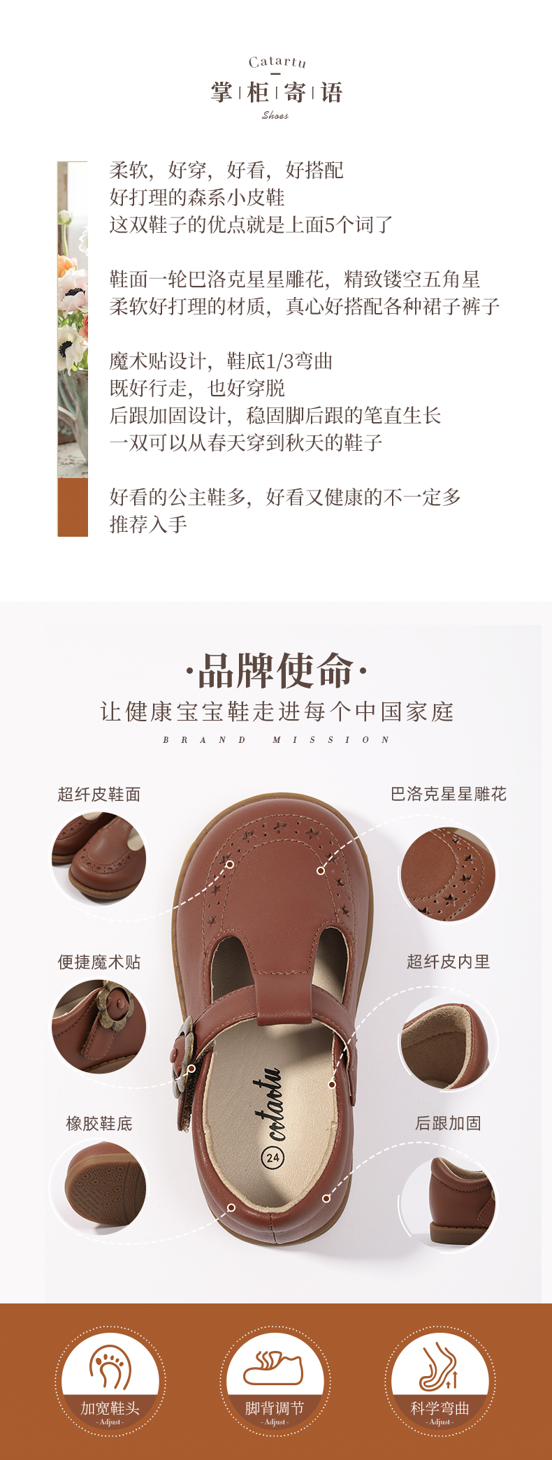 卡特兔春秋款宝宝复古公主鞋 棕色 一段/二段