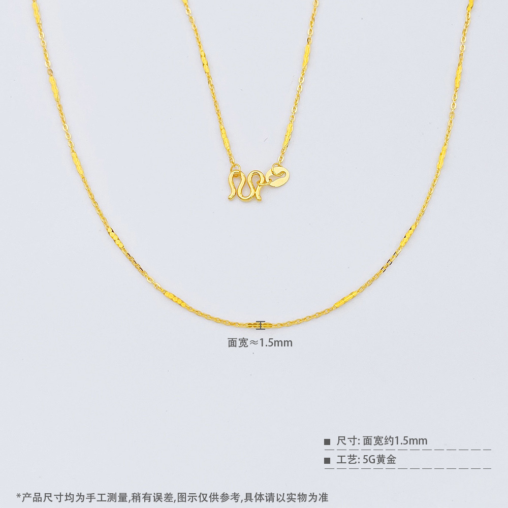 【限时克减150元】足金999 5G黄金实心葫芦间闪十字间款不可调节项链(面宽约1.3-1.7mm)(BJ5GXL00041)(预售产品下单后不退款不退货不换货不补差价)