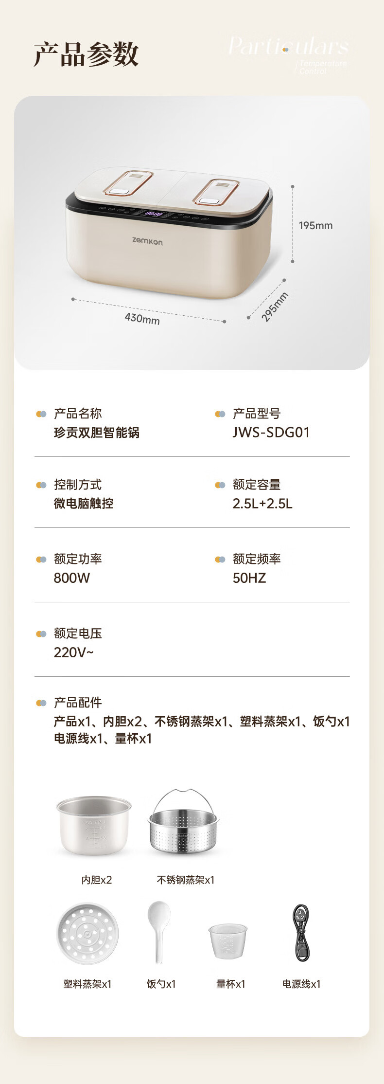 德国Zemkon低糖双胆电饭煲_JWS-SDG01