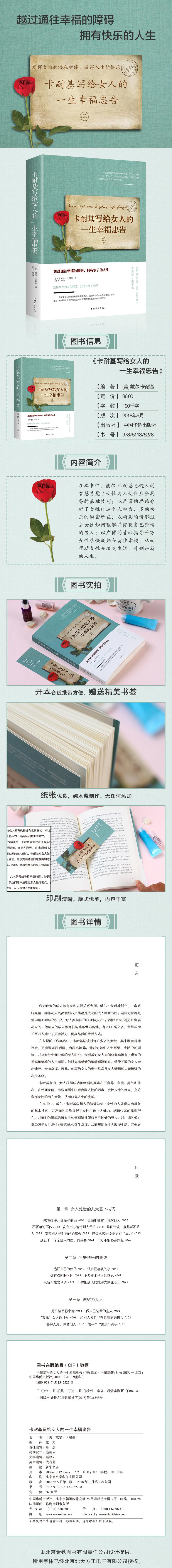 在《卡耐基写给女人的一生幸福忠告》中,戴尔·卡耐基以超人的智慧总结了女性为人处世应当具备的基本技巧;以严谨的思维分析了女性打造个人魅力、活得快乐的秘密所在;以精彩的讲解告诉女性如何理解并俘获自己钟情的男人;以广博的爱心指导万千女性尽快成熟和留住幸福,从而帮助女性去改变生活,开创崭新的人生。