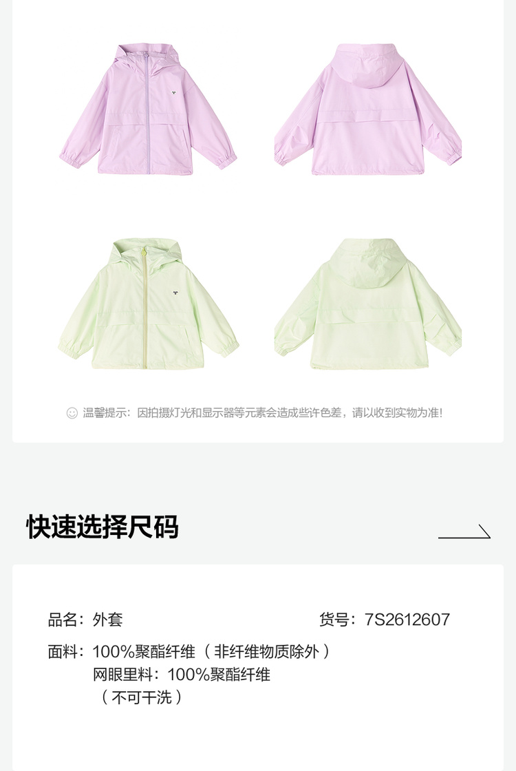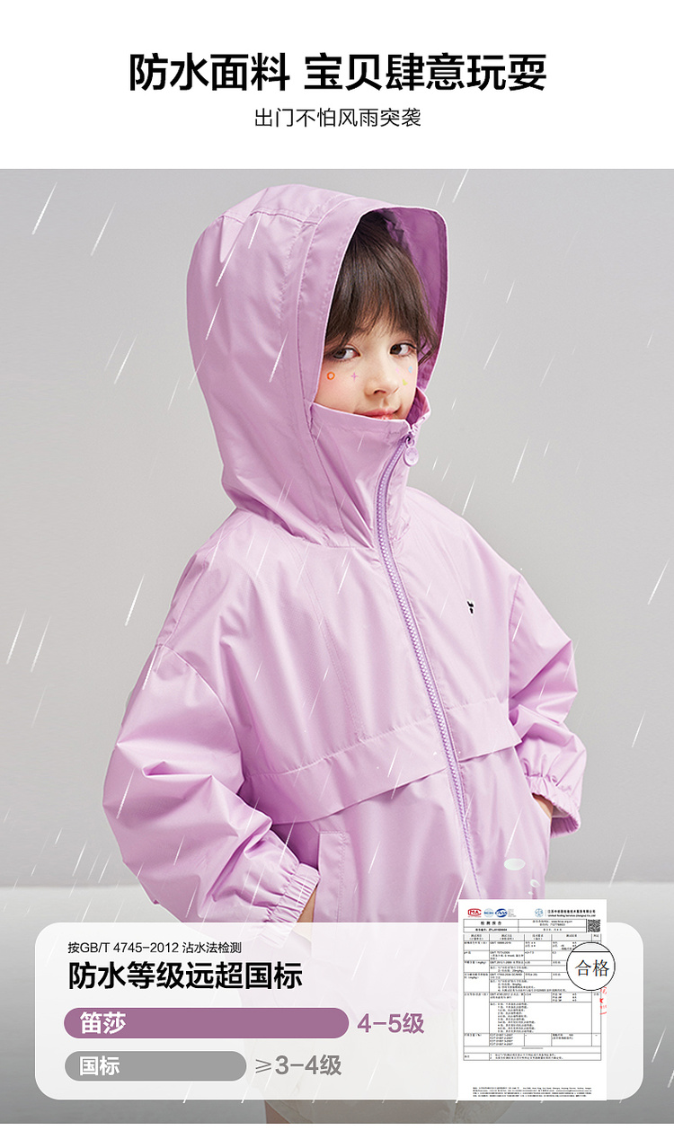 笛莎Deesha 2026春季女童时尚户外休闲防水连帽外套