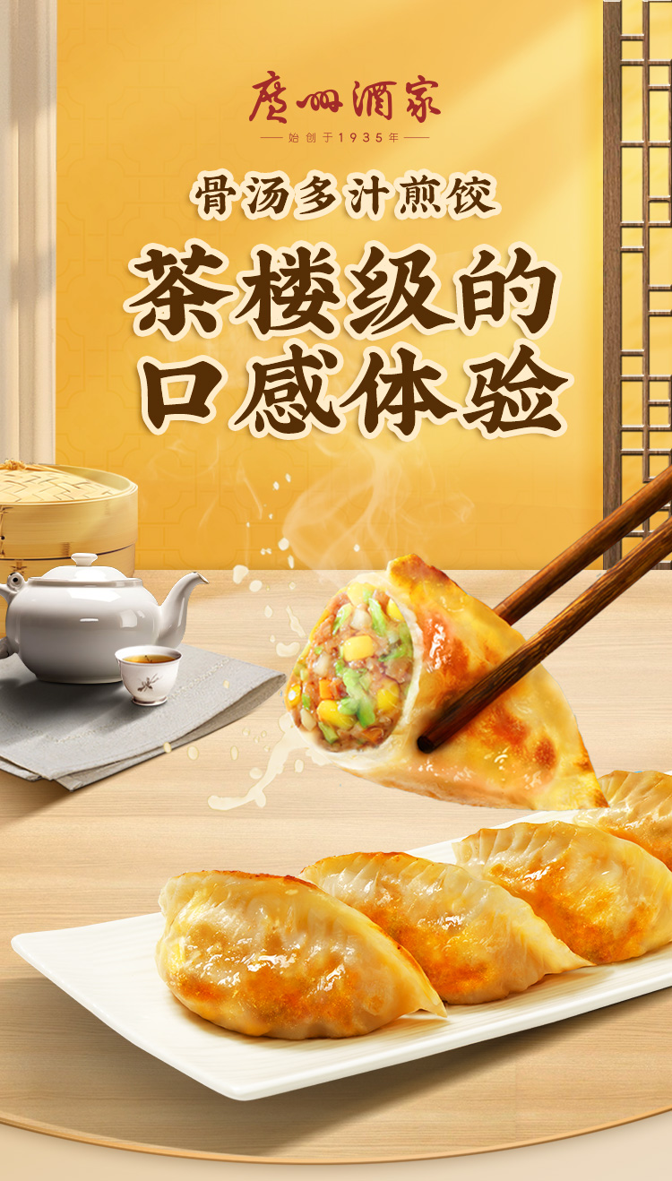 广州酒家 骨汤多汁煎饺2袋装多口味加热即食懒人早餐方便速食